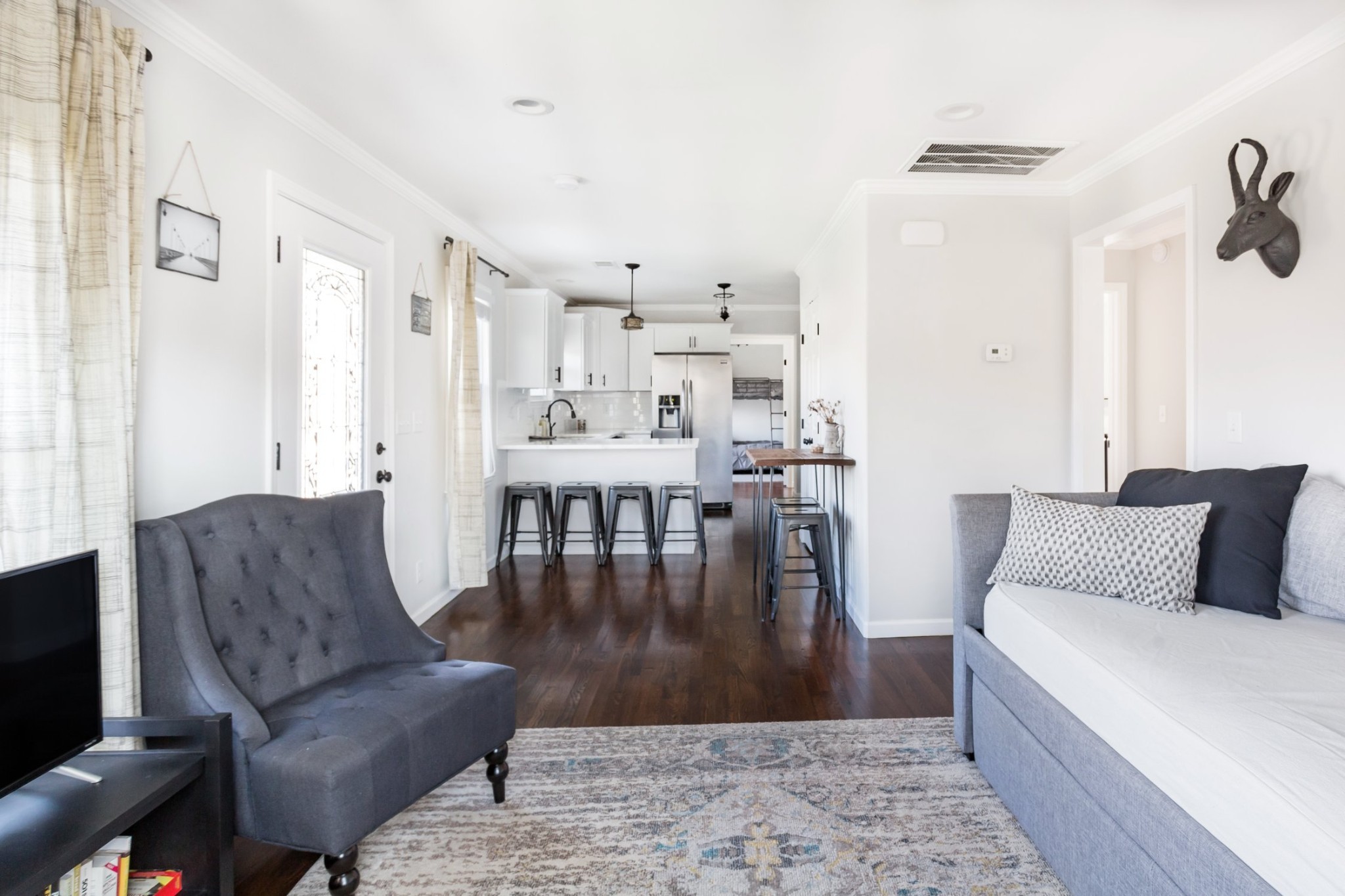 If you’re looking for a beautiful home with great access to all of Nashville’s prime locations, (less than 5 miles), look no further! This house in the South Nashville area was expertly renovated in 2017, including new HVAC, roof, electric, windows, plumbing, and insulation. In 2020, the crawl space was fully enclosed with a dehumidifier and French drain to maintain the space, and gutter guards were installed in 2023. This house on a calm street has easily transitioned from former owner-occupied Airbnb to a cozy home, with 3 bedrooms, 2 full bathrooms, and an open-concept living area making it the perfect space for both hosting and enjoying the space on your own. Interior design features gorgeous white granite countertops, modern light fixtures and tile in the kitchen and bathrooms, stainless steel appliances, and beautiful hardwood flooring and crown molding throughout. Stackable washer and dryer will transfer. Additionally, this home boasts some of Tennessee’s loveliest plants.