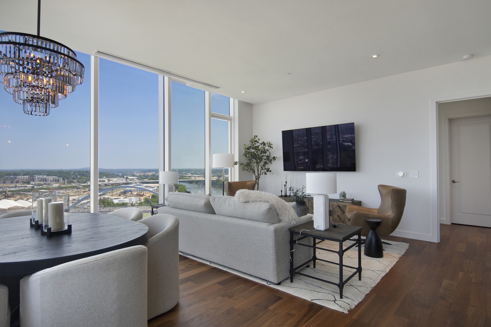 Welcome to Four Seasons Residence, Unit 1707, the epitome of luxury living in vibrant Nashville. This 2-bedroom, 2.5-bathroom condo exudes sophistication and positive emotion, capturing breathtaking views of Nashville’s City & River through floor-to-ceiling windows. Privacy and security are paramount with 24/7 Gated Valet Parking and a dedicated Concierge Team, while the Residence Amenity Floor features a Lounge, Fitness Center, Media Room, and Pet Spa. Access to Hotel Amenities, including the Pool, Spa, and Fitness Center, elevates your living experience. Step into the fully furnished haven boasting top-of-the-line finishes, Miele Appliances, Wood Flooring, and luxurious bathrooms. Each room is a work of art, designed to deliver a sophisticated lifestyle amidst unrivaled grandeur.
