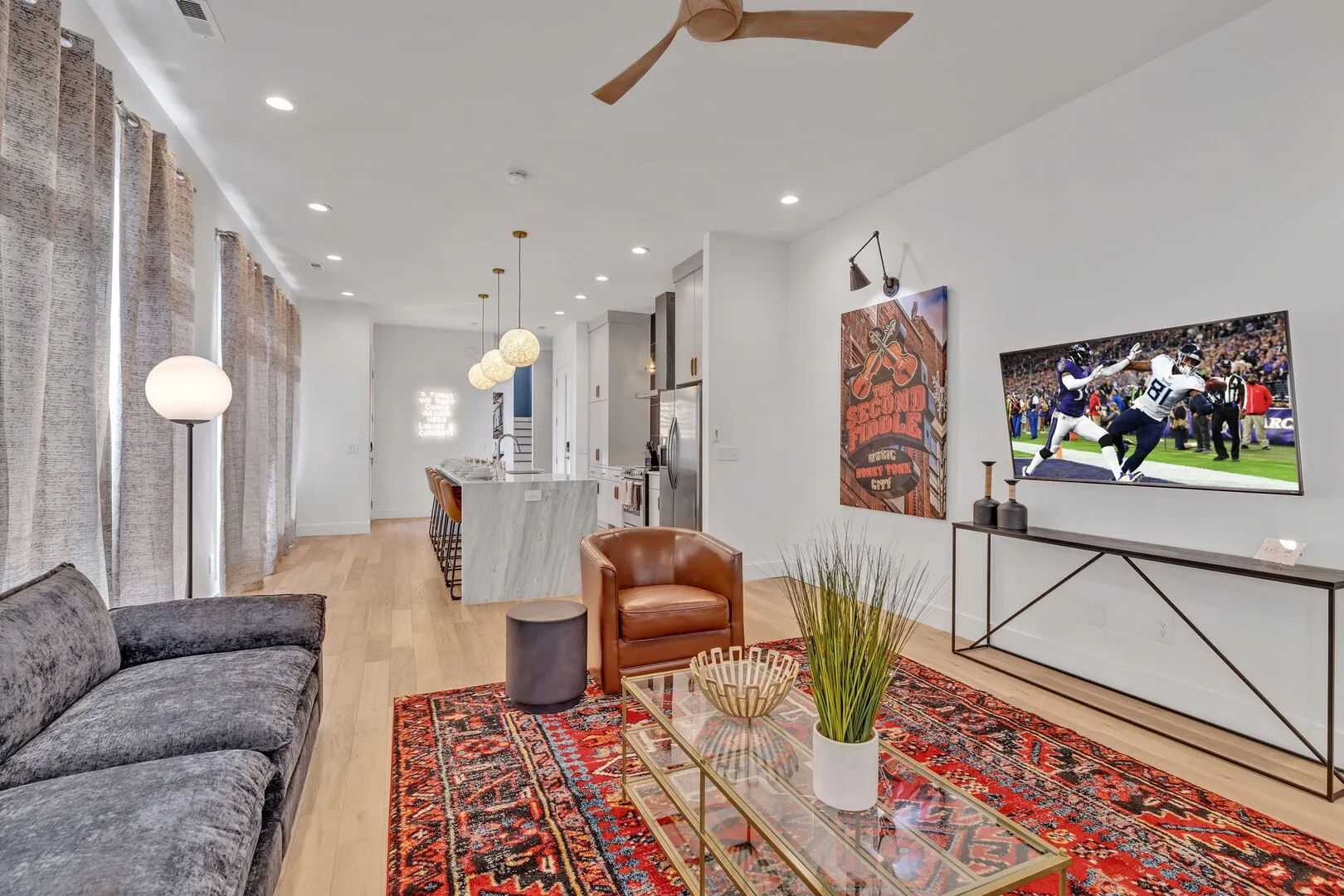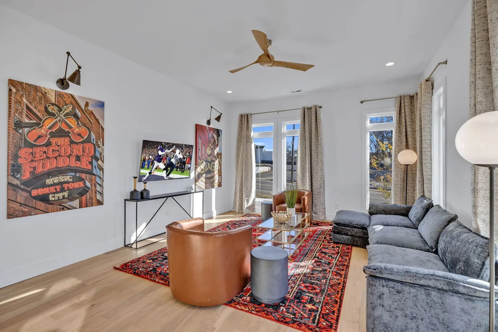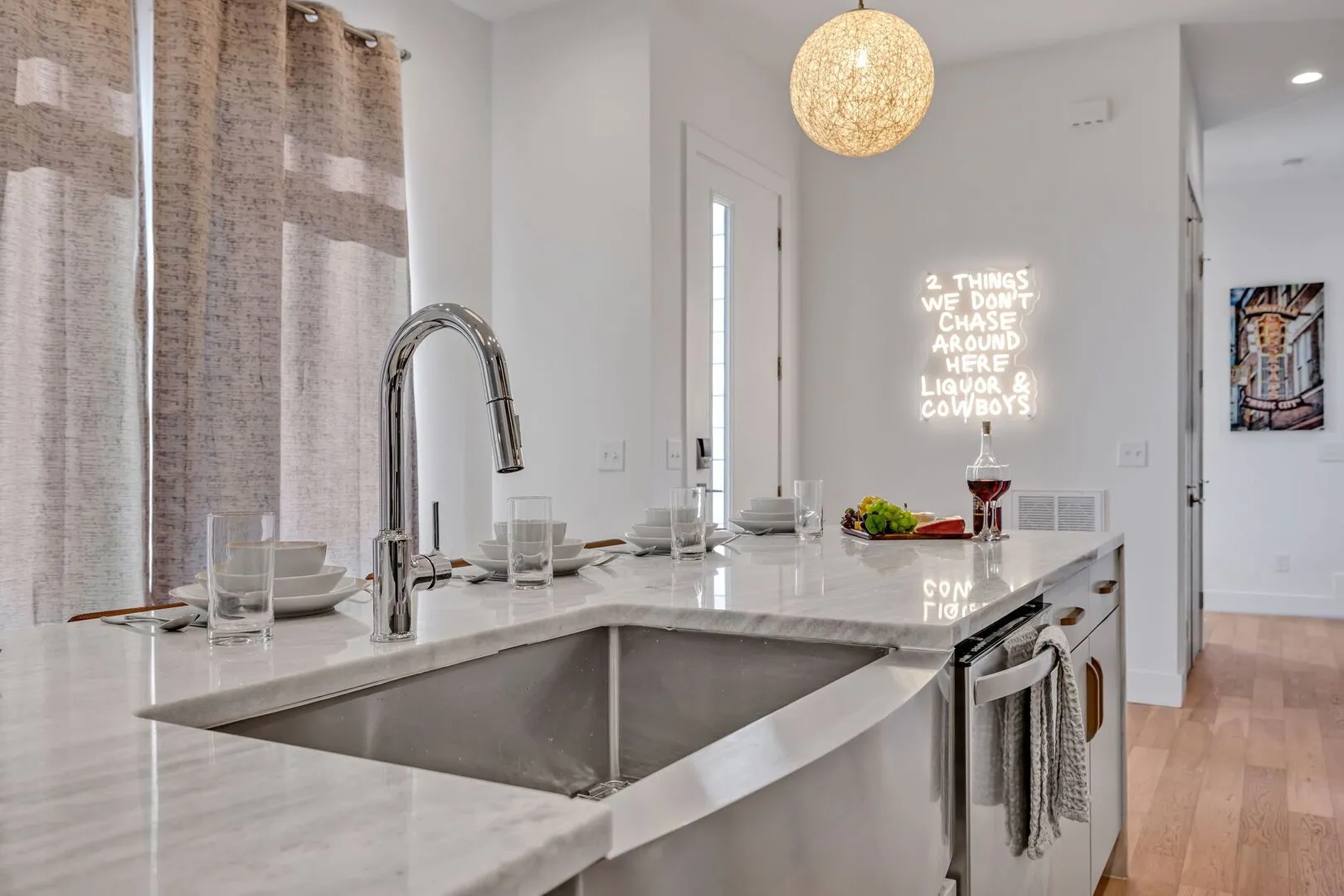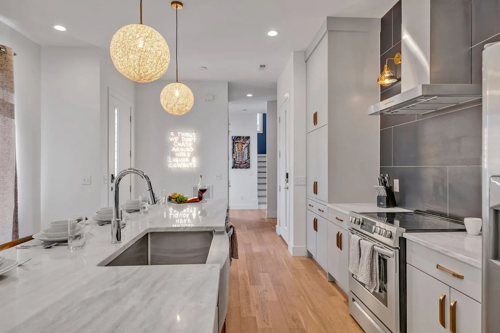 Throw on your boots, and welcome to this neon-lit crazy town, where Boozy Boots invites you to let those dancing boots loose! Nestled in the heart of Nashville, this 4-bedroom, 4-bathroom townhome, with an additional sleeping quarter, spans three floors of Nashville Broadway-themed bliss. With jaw-dropping downtown cityscape views from your private rooftop, the stage is set for an unforgettable stay in Music City. Did we mention that Broadway is just minutes away? Accepting most lease lengths, subject to availability! The rental rate listed is valid for leases with nights stayed in March 2024 – October 2024. Please inquire for seasonal rates. The unit is fully furnished and cannot be unfurnished unless otherwise mentioned. The monthly rental rate listed does not include utilities, security deposit, or management fees unless otherwise explicitly stated. GoodNight Stay requires a signed/executed lease agreement and certified funds (wire).