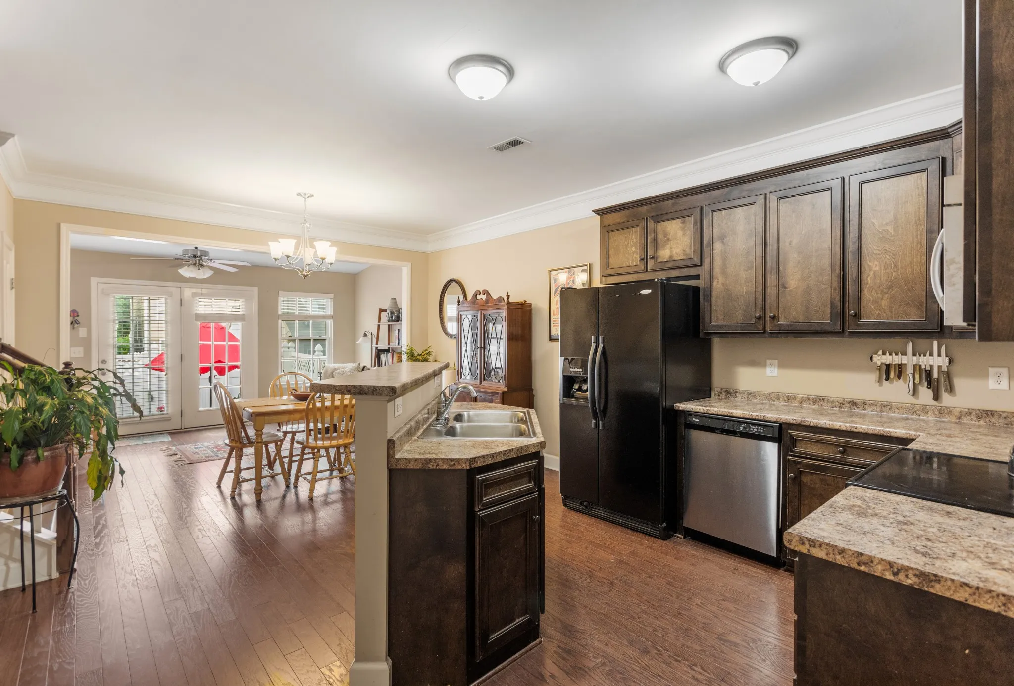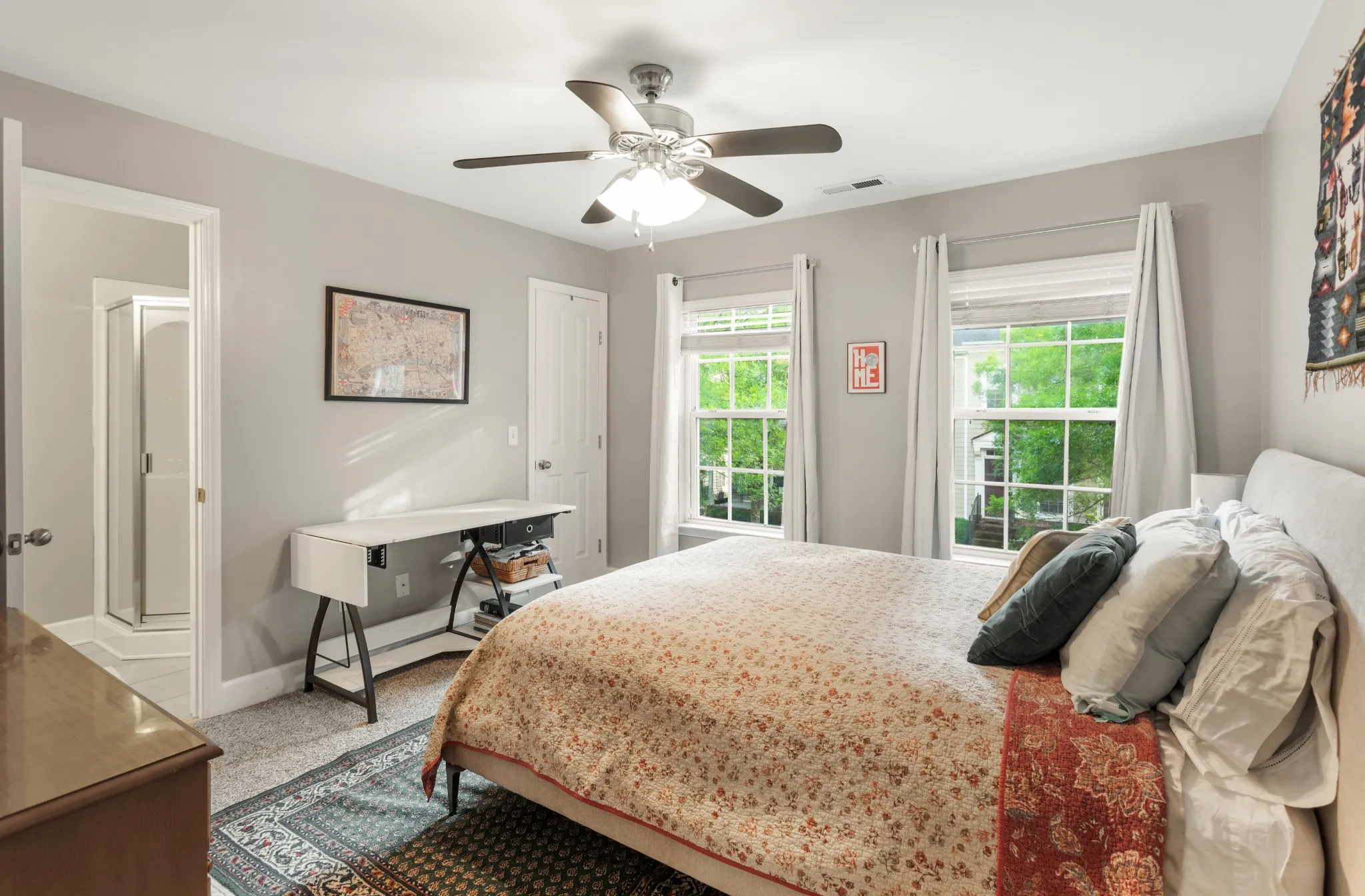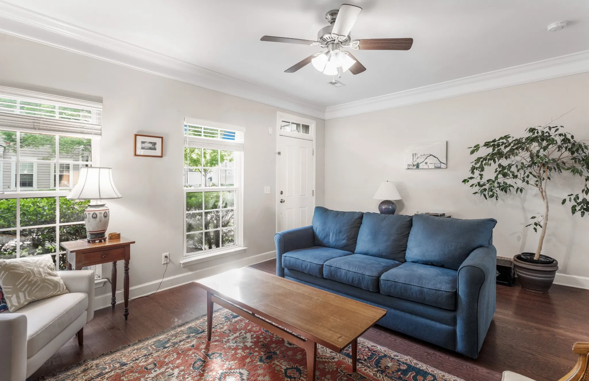 New reduced price! Sought after Lenox Village townhome! Well maintained home with 2 master bedroom suites and plenty of living space. Easy front door entry with no steps. Large living room. Updated cabinets in the open kitchen. Hardwood floors throughout main level and updated laminate flooring on stairs. Sunroom that can easily be used as an office or separate living space. Low maintenance fenced courtyard with 2 private parking spaces. All appliances stay including washer/dryer. Lenox Village offers walkability to restaurants, the gym, the playground, and the greenway.