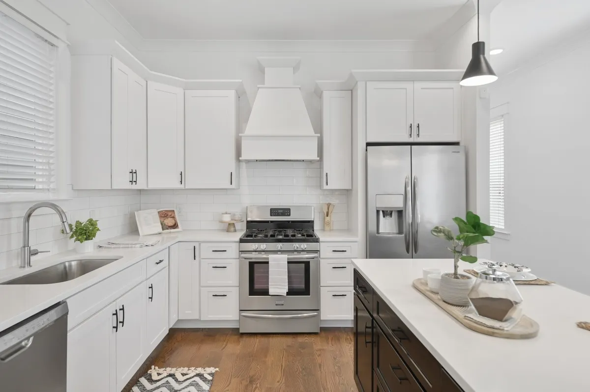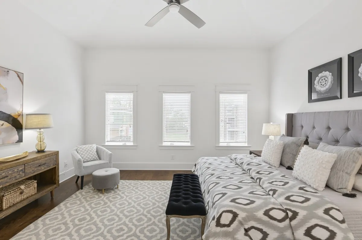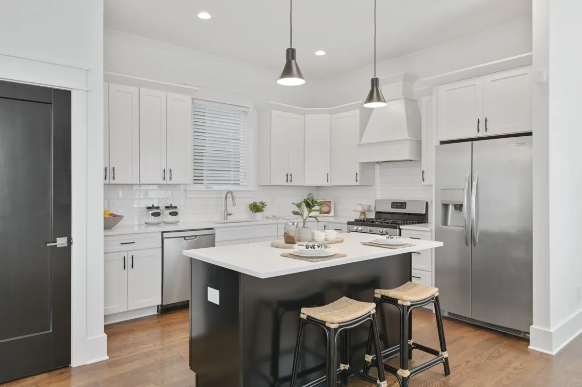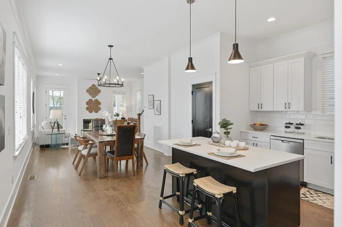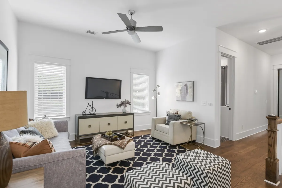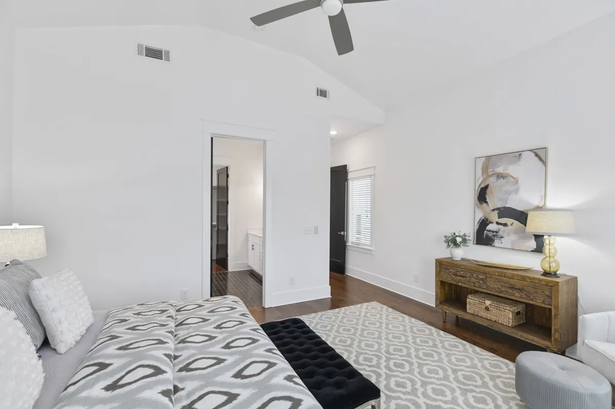 Excellent location on convenient side street in Wedgewood Houston that allows you to be close, but not too close, to everything WeHo has to offer. Built in 2018, this home offers a white with black accent motif, 10ft ceilings on main level, Oak hardwood floors throughout, Kitchen features white perimeter cabinets and counters w/ black island accent. Living room with fireplace walks out to a covered back deck overlooking small fenced backyard. Primary suite upstairs features vaulted ceilings, a bath with double vanity, spacious shower and walk in closet. Den/bonus landing on second floor. Main level bedroom would also make great office, laundry room with washer and dryer included