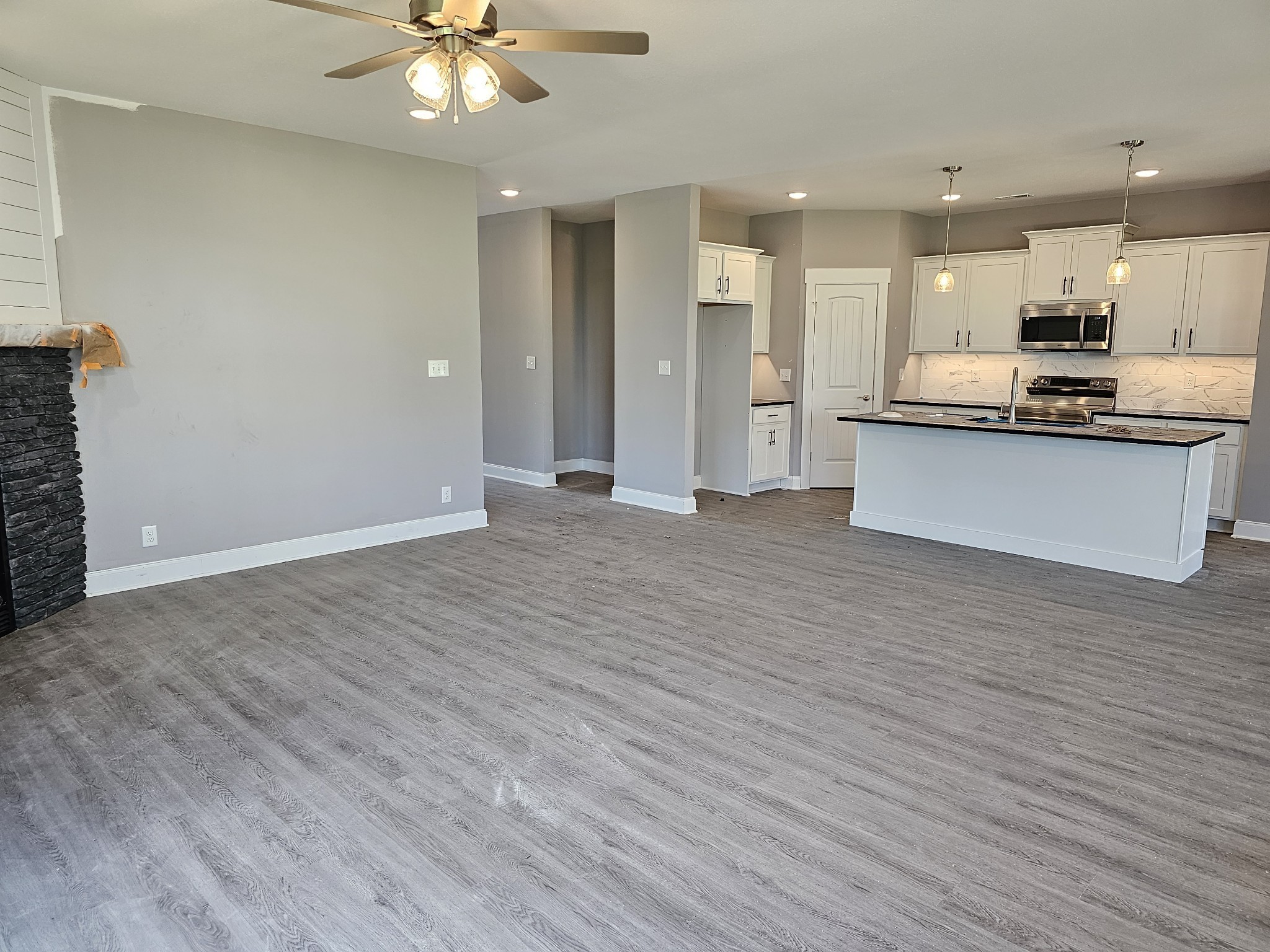 AMAZING ONE STORY IN EXIT 11 AREA! *3,2,2 Brand new floor plan for Woodberry with low barrier entrance *Spacious and Open Concept! *White Kitchen cabinetry with granite countertops, undercounted lighting, stainless steel farm sink and appliances, and large eat-at island *Great Room with corner fireplace and lots of natural light *Primary Suite is exceptional with a SOAKING TUB AND WALK-IN TILE SHOWER, walk-in closet, and extra storage *Laundry Room has a built-in space and plenty of room for functionality *Garage has EXTRA SPOT for mower or tool bench and has an EV outlet *You really should see this one in person! *Cool Gray Tones throughout *County Taxes Only *Almost Ready! *Quality Built by Woodson Construction since 1986