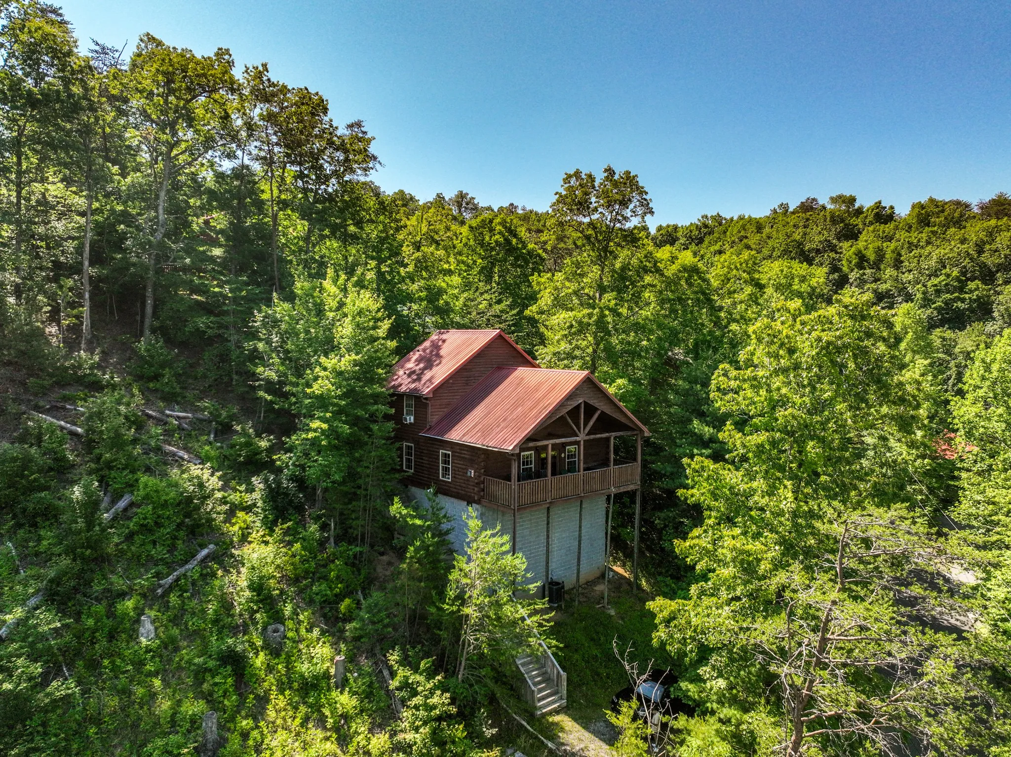 Pigeon Perch!! Amazing log cabin just 1/2 mile from downtown Pigeon Forge in the heart of the Great Smoky Mountains! Wonderful floor plan featuring 3 en-suites (2 on the main level) along with Game room and bunk beds this cabin is a perfect family getaway and revenue producing vacation rental…….wonderful rent history and has over $32k on the books already for 2025! Walk into a solid investment!!