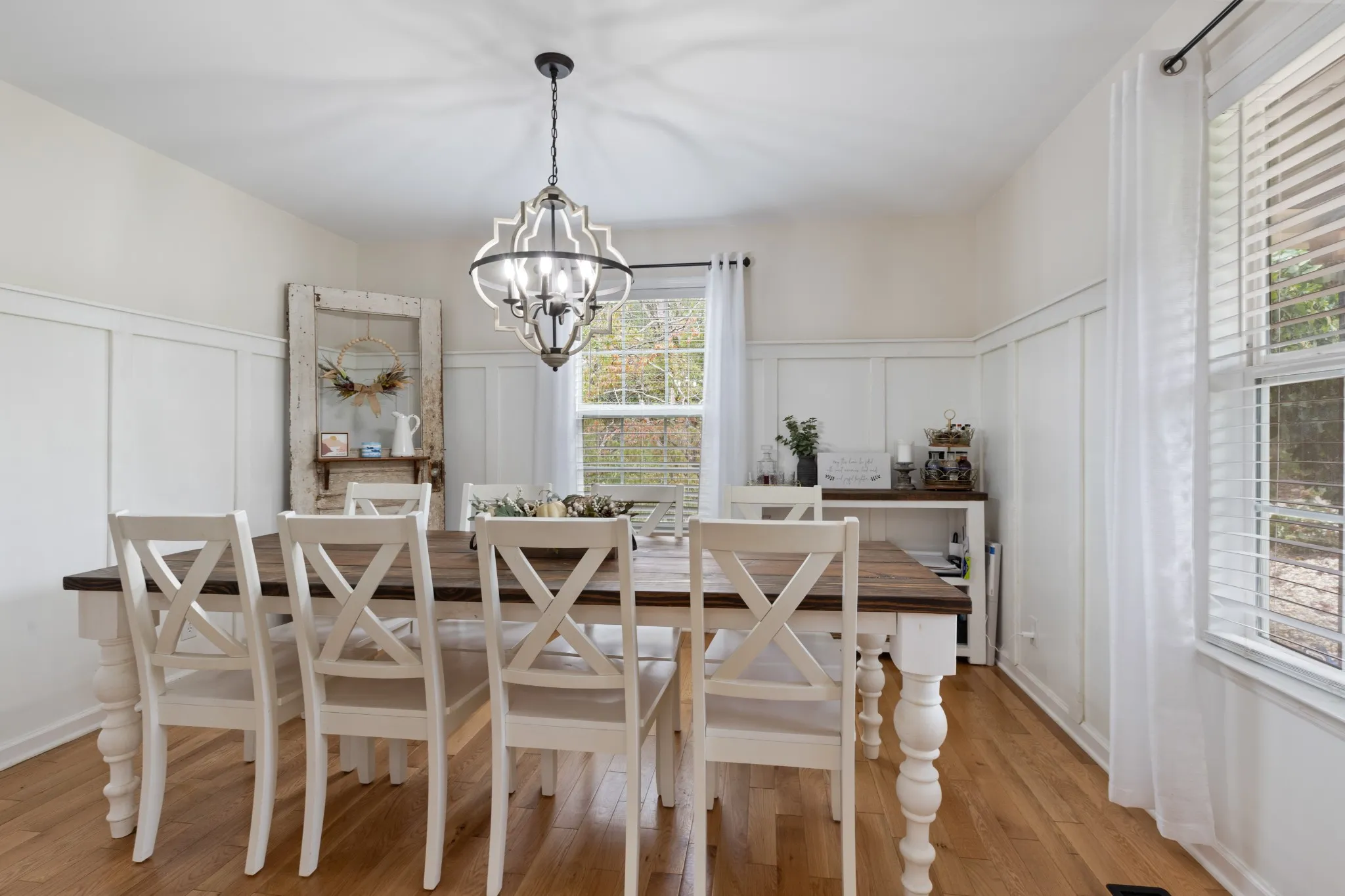 Your dream farmhouse in the heart of Burns awaits! Offering pure seclusion while only being a few minutes from town. This recently renovated home features 3 bedrooms, 3 full bathrooms, and 2 half bathrooms. Enjoy a large, finished basement with a gas fireplace, bookshelves, and a wet bar. It also includes an oversized laundry room and a versatile flex space, currently used as an office. Relax on one of three full-size covered porches or on the 20×25 stone patio by the newly added pool. A spacious 30×40 shop with a lean-to adds tons of storage. Plus, there’s a large creek with a swimming hole and abundant wildlife for you to enjoy! Fiber internet recently installed to home gives you city like connection while feeling like you are in the middle of nowhere.