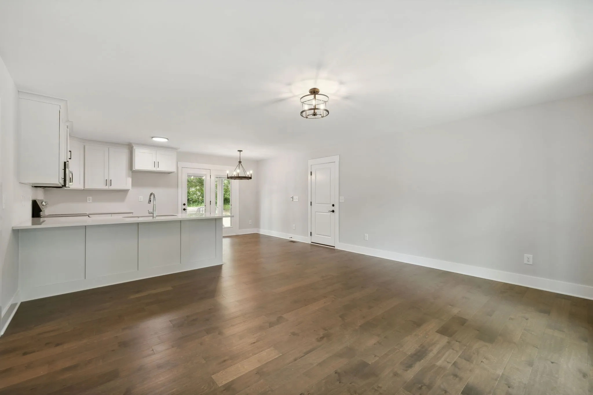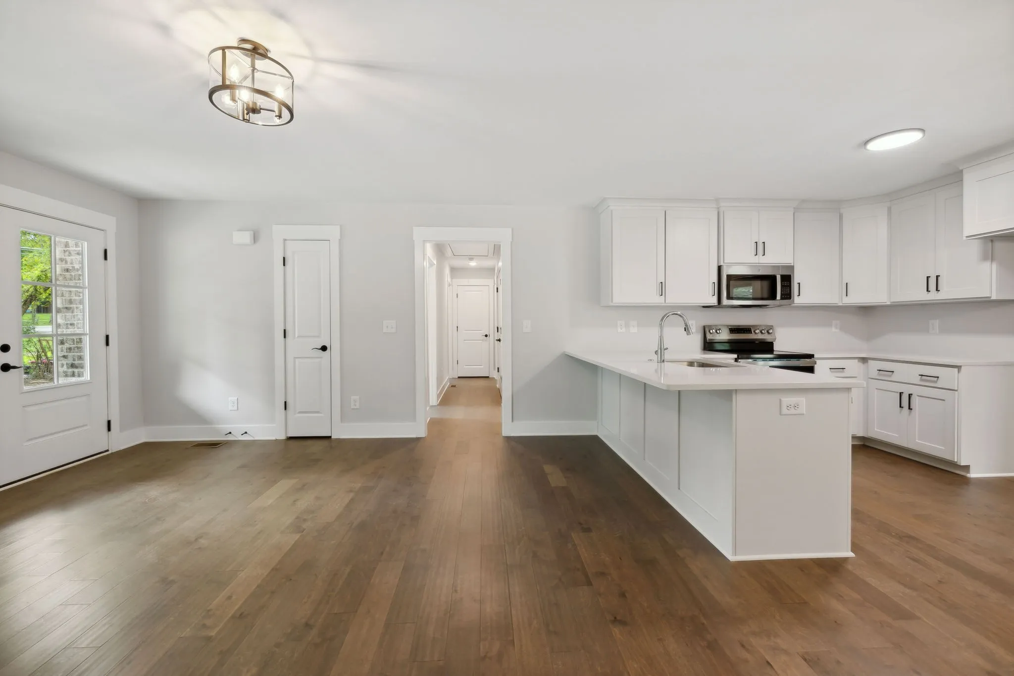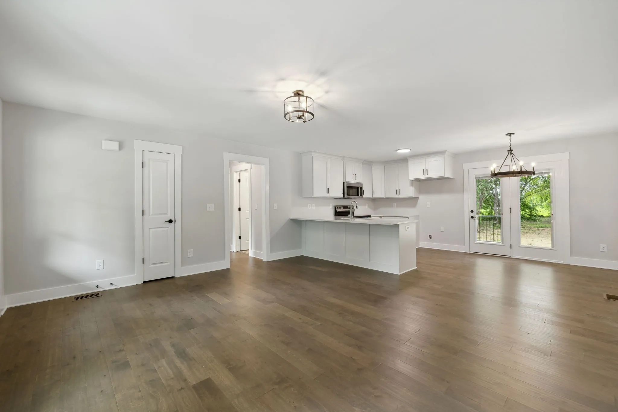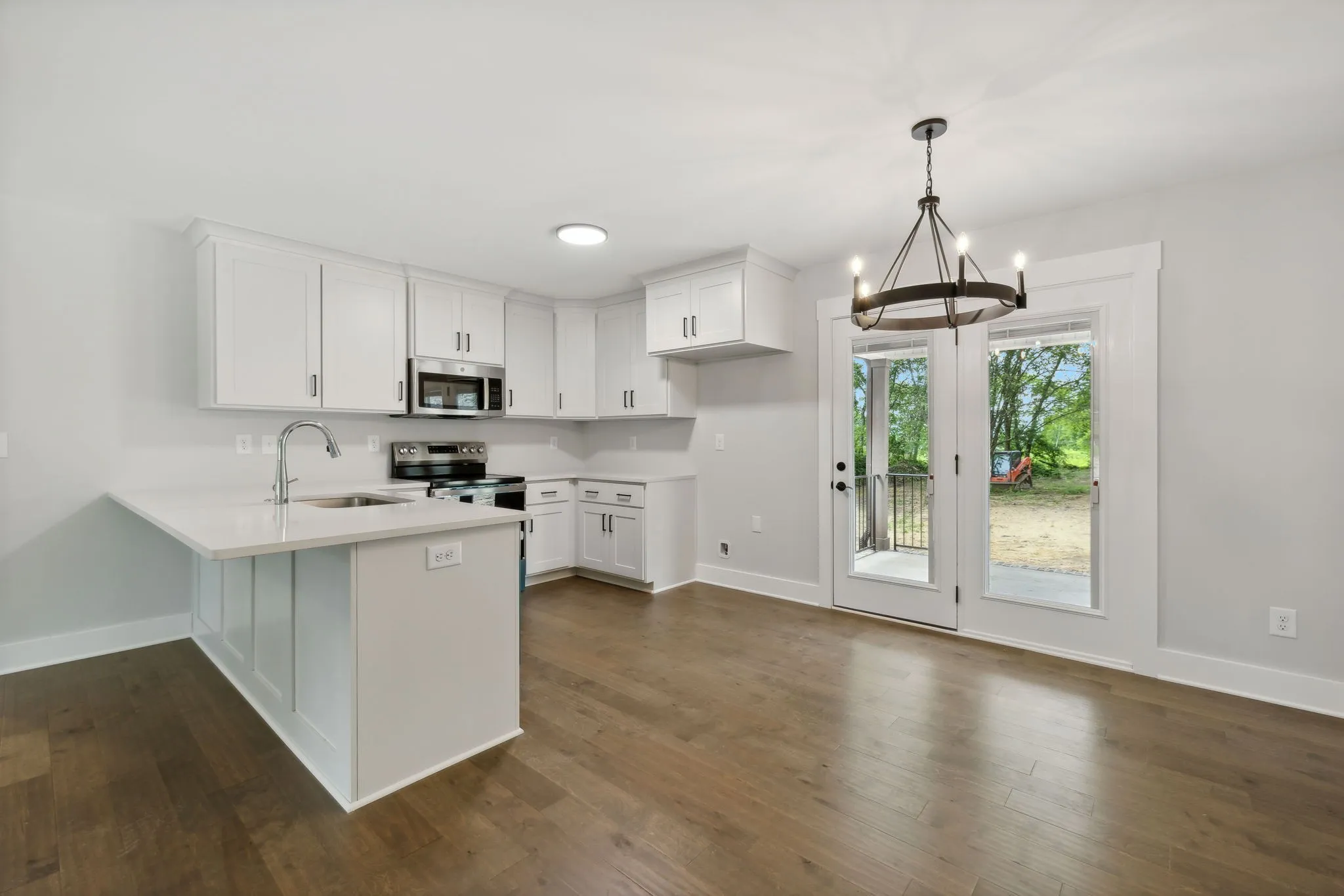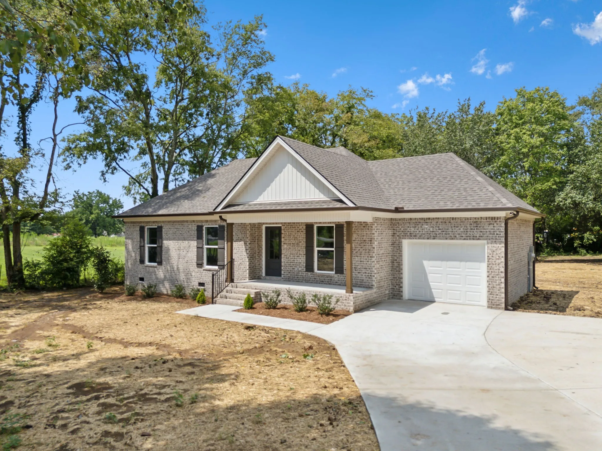 Beautiful new construction one level 3 bedroom 2 bath home. This open concept living space features hardwood floors, tile in wet areas, eat in kitchen with quartz countertops, good sized bedrooms and relaxing covered porches in front and back. Large mature trees all around.