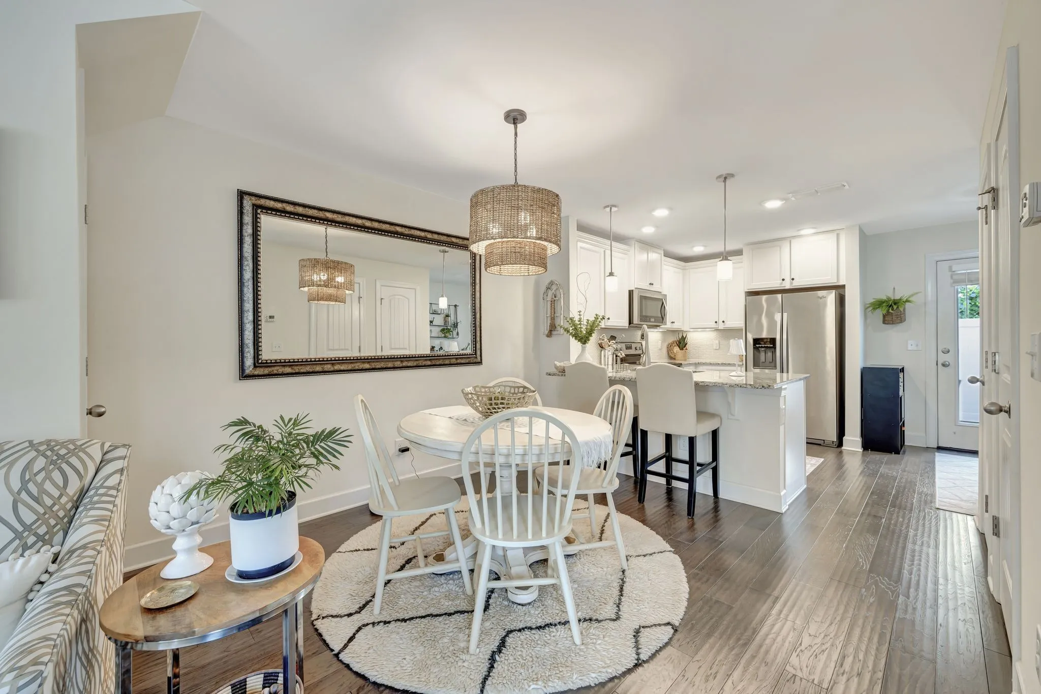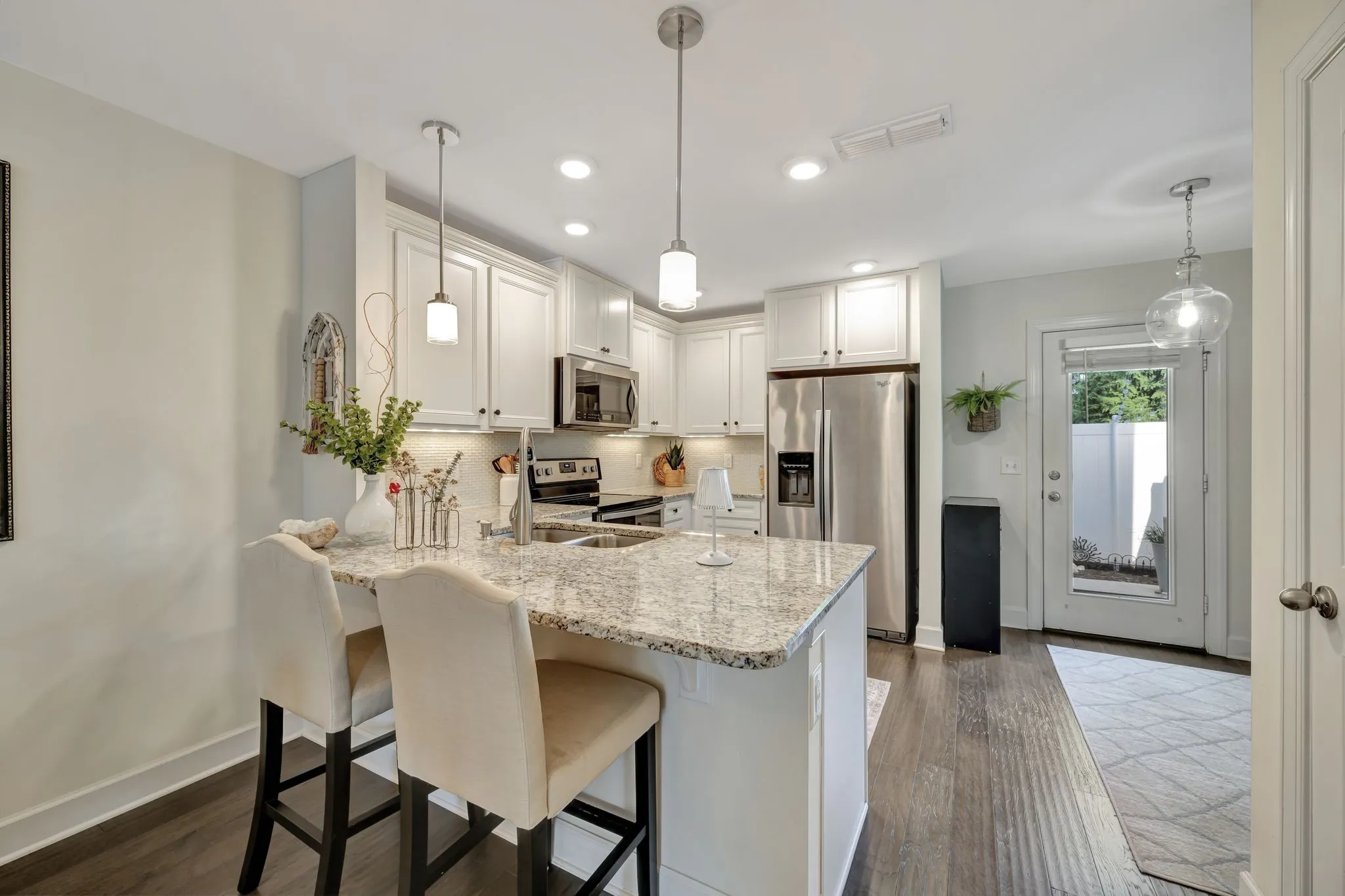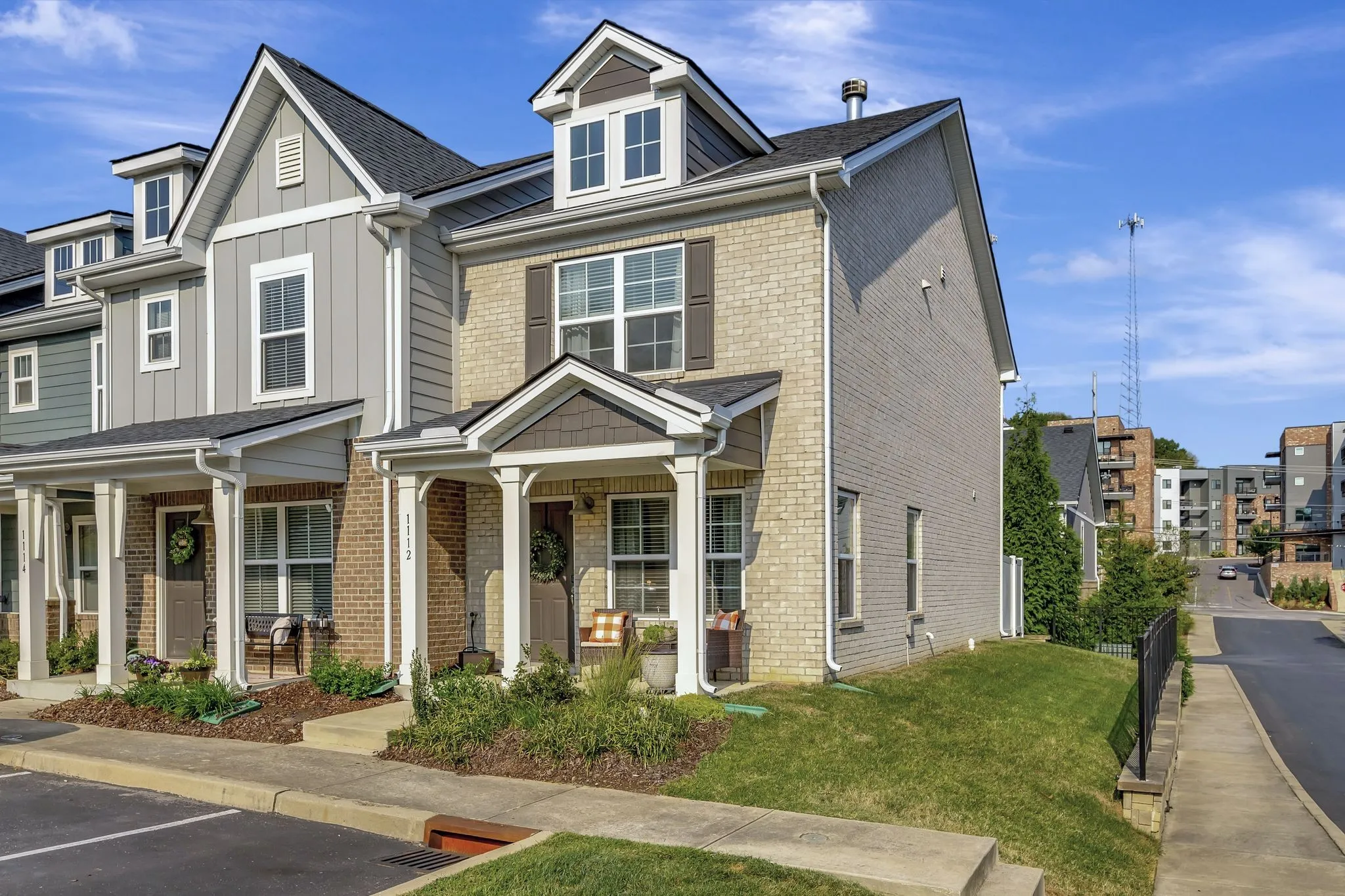 Rarely available end unit with wood burning fireplace. covered front porch and enclosed back patio with retractable screen door. First floor has hardwood flooring and abundant natural light. Kitchen has granite, beautiful tile backsplash and under cabinet lighting. Neutral paint throughout. Second floor has 2 spacious bedrooms with attached baths. Enclosed patio is great for pets or walk to the neighborhood dog park. Neighborhood is convenient to shopping, restaurants, and minutes to downtown. Lowes, Jim and Nicks, Target, Nashville West shopping center less than a 5 minute drive. Breweries and coffee shops nearby.