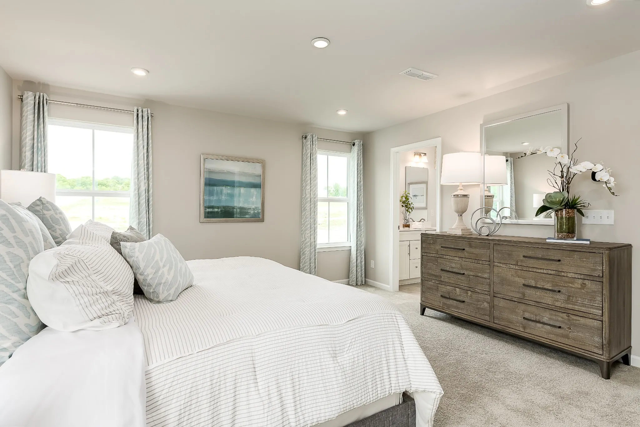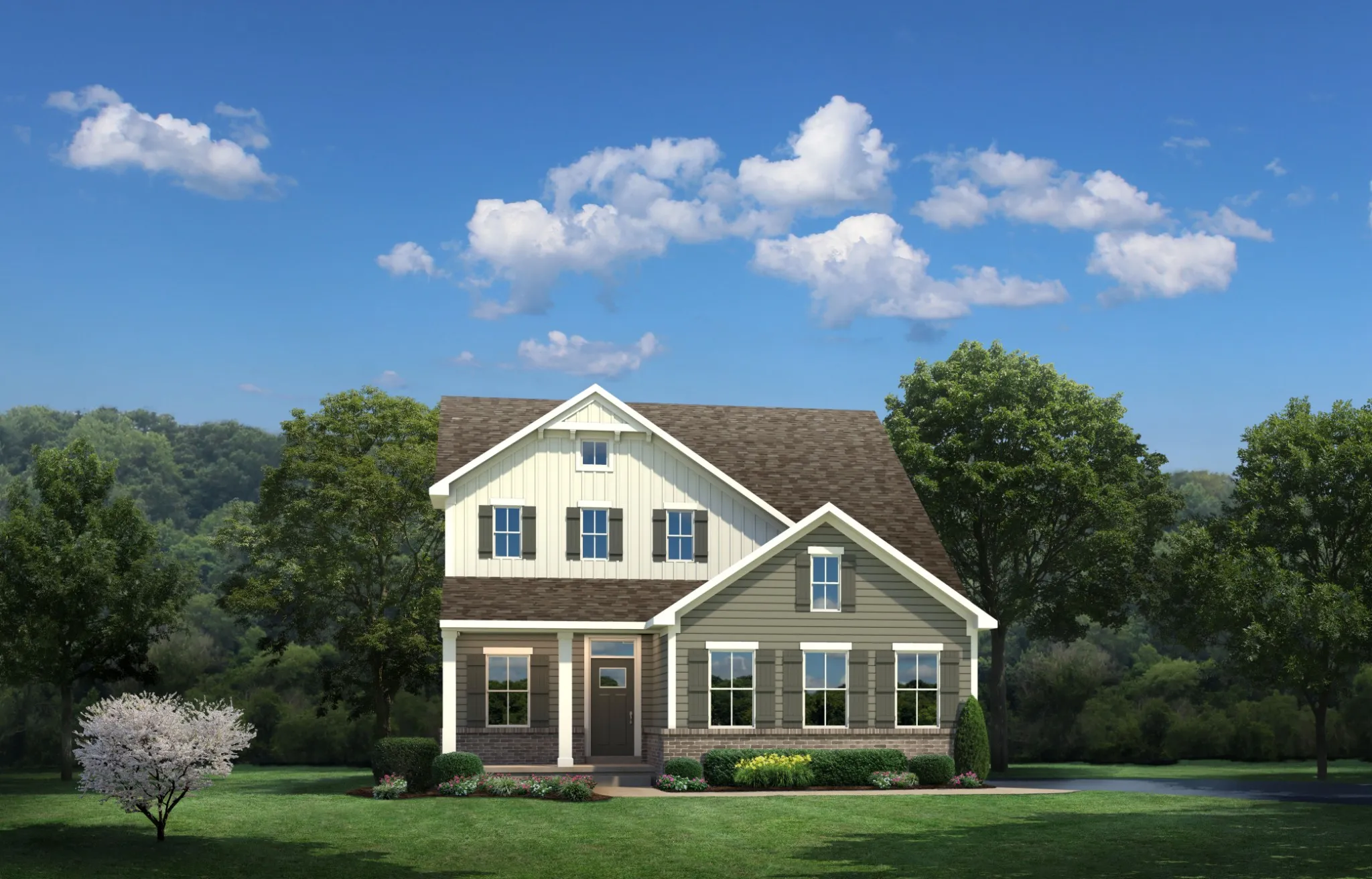The Ballenger – up to 4 bedrooms, 2.5 baths, and 2114 square feet. Cottage exterior and entering through your covered, front porch into your new home! Off the front entrance is a flex space perfect for a dedicated office space. Upstairs, the owner’s bedroom offers two spacious, separate closets. Plus, a private ensuite featuring a double vanity and walk-in shower, with 1 or 2 shower heads! Choose four bedrooms or turn one into a loft for extra space to gather as a family.
