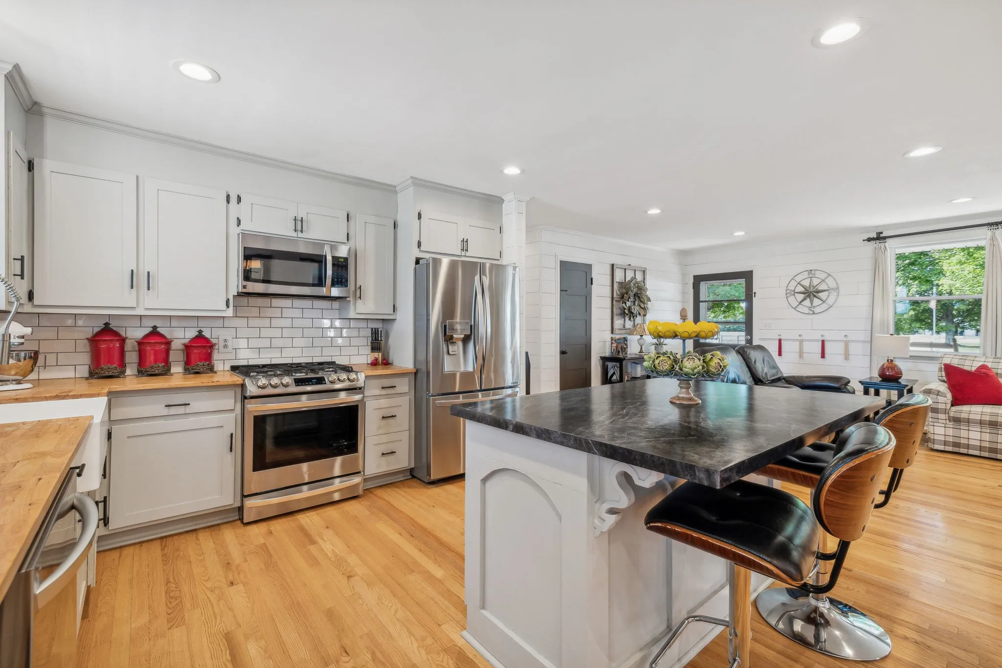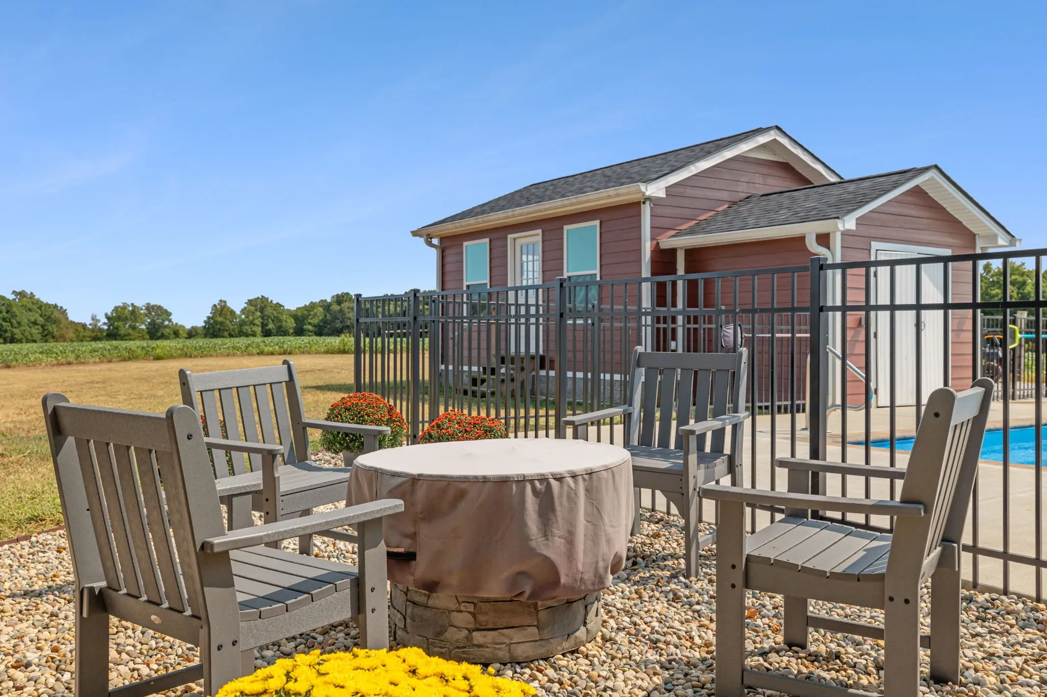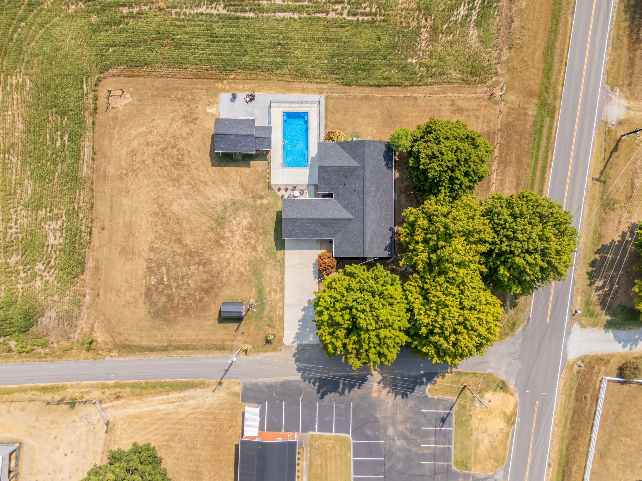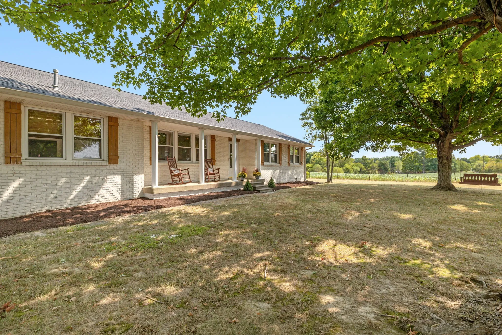 Welcome to this charming all-brick ranch home, beautifully situated on a spacious corner lot in a peaceful country setting. This gem boasts stylish shiplap walls and fresh paint, adding a touch of modern farmhouse flair. The home features an inviting heated pool, perfect for relaxing year-round, and an adorable swing that adds to the charm of the property. Inside, you’ll love the updated kitchen with butcher block countertops, offering ample space for cooking and entertaining. Both bathrooms are tastefully updated with stylish tile finishes. The home is loaded with storage, featuring numerous closets to keep everything neatly tucked away. The property also includes a shop with all utilities, perfect for hobbies or extra storage. The outdoor space is just as impressive, with a new roof, energy-efficient tankless gas water heaters, and a lush, landscaped yard.Don’t miss the opportunity to own this beautiful, move-in-ready home perfect for those who crave country living!