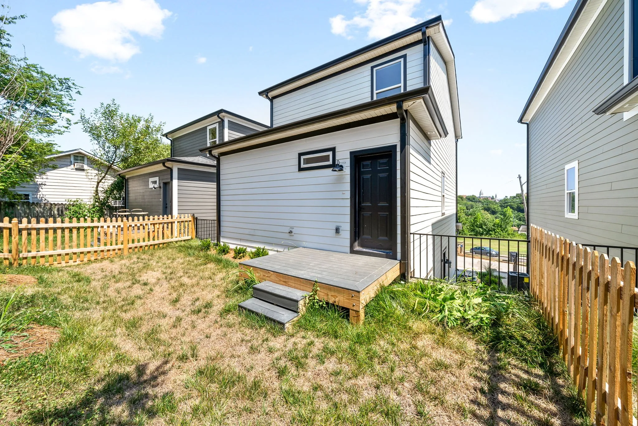 Nashville meets Clarksville! This stunning new build situated in booming downtown Clarksville offers luxurious living with ample space, including a coveted mother-in-law studio suite on the bottom floor with its own laundry area. Thoughtfully designed, this residence features the studio apartment with full bath, three additional bedrooms each with its own ensuite bathroom and walk in closets, and a one car garage. Modern design meets comfort in this spacious layout with two open concept living areas, two gourmet kitchens, granite counter tops, LVP and tile throughout. Perfect low maintenance fenced backyard space for your enjoyment. Conveniently located, this home is perfect for multi-generational living or roommates, satisfying primary residence needs and investors alike. This layout would make a great short term rental or long term rental. Previously rented for $2800/mo. Don’t miss this opportunity to snag your piece of downtown!