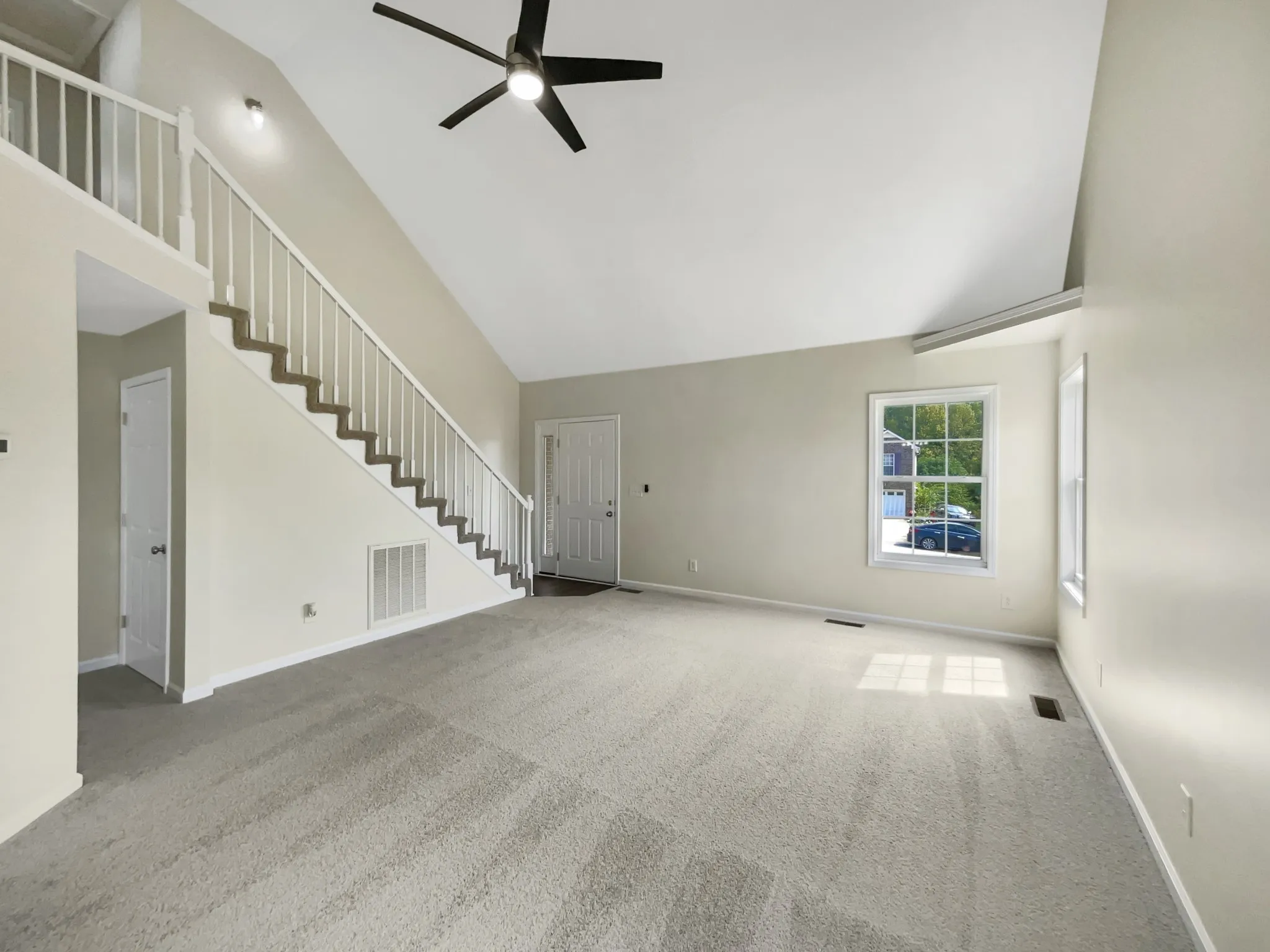 This move-in ready home features a beautiful, open, and airy floor plan with vaulted ceilings, creating a bright and spacious atmosphere. Fresh paint and new carpet make it feel brand new! The master suite is conveniently located on the main level, and a large rear deck overlooks the expansive, leveled backyard—perfect for outdoor enjoyment. This home is ready for you to make it your own!