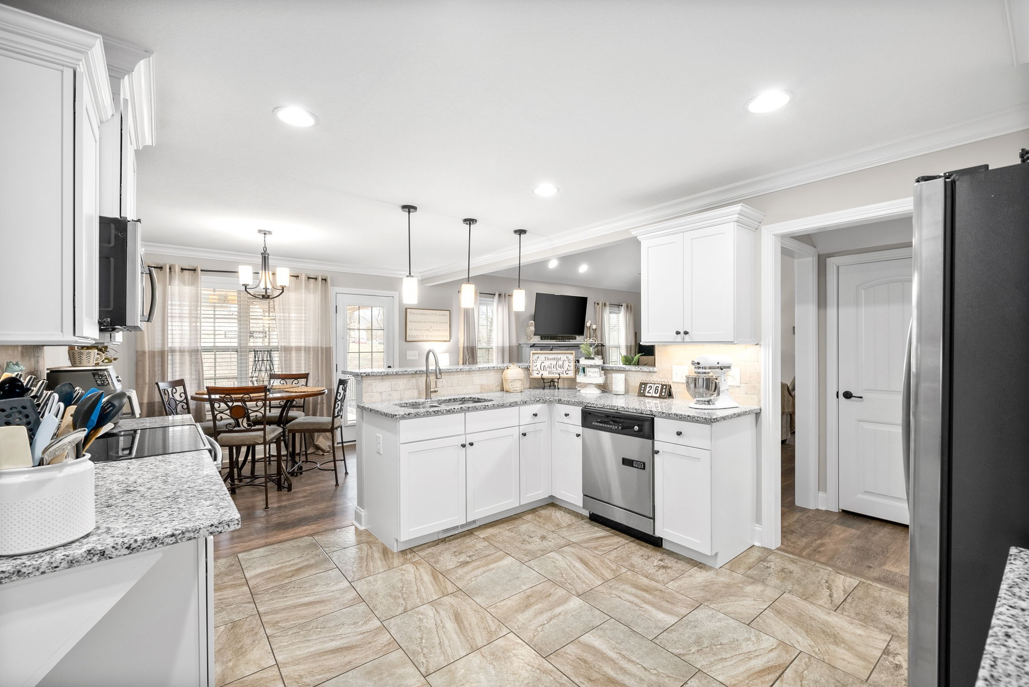 Gorgeous Sango location close enough to all you might need yet away from crowds. This big beauty includes primary bedroom w dbl trey ceilings & windows overlooking back yard & primary bath w large WIC, separate tub & glass doored shower on main w laundry room, formal dining, eat in kitchen, great room & a guest half bath. Kitchen has all the updates such as stainless appliances, granite tops, tile floors & breakfast bar top. Greatroom overlooks the large almost 3/4 acre wood lined fenced lot w concrete boat pad & firepit pad letting in amazing natural light & connecting to a relaxing covered deck. Upstairs you will find two additional bedrooms that are so roomy & have extra large closets, a 2nd full bath plus a huge bonus room w endless possibilities. Two attic spaces & many closets too! Let’s not forget the huge attached side load garage equipped w shelving, workbench & it’s heated & cooled! There is so much to mention about this home! Make your appointment & come see for yourself.