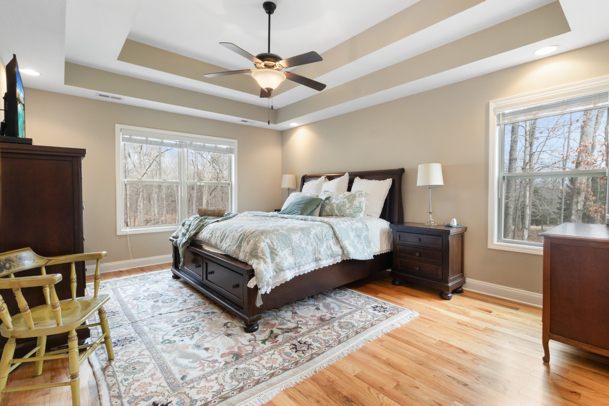 A Rare Find! Stunning Home w/ Lots of Upgrades On Over 3 Acres of Land! Country & City Living! Wood Flooring Throughout Main Level w/ Tile in All Wet Areas & Tile Throughout Basement Level! NO CARPET! Custom Wood Shelving Throughout! Spacious Living Room w/ a High Ceiling, Recessed Lighting & a Gas Fireplace! Kitchen Features a Wrap Around Bar Top, Stainless Steel Appliances, a Double Oven Range, Granite Countertops, Tile Backsplash & Eat-in Area! Large Formal Dining Room w/ a Tray Ceiling! Spacious Primary Bedroom Features a Double Tray Ceiling, Recessed Lighting, Double Vanities w/ a Cosmetic Vanity, Garden Tub, Tile Shower & a Huge Walk-In-Closet! Large Rec Room in Basement w/ a Tray Ceiling & Access to the Backyard! Both Guest Rooms in the Basement Have Walk-In-Closets! Spacious Laundry Room w/ Cabinets! Storage Room Under Stairs w/ Access to Additional Storage! Huge Garage Could Fit 3 Cars! Large Covered Deck & Covered Patio-Perfect for Enjoying the Private Wooded Backyard!