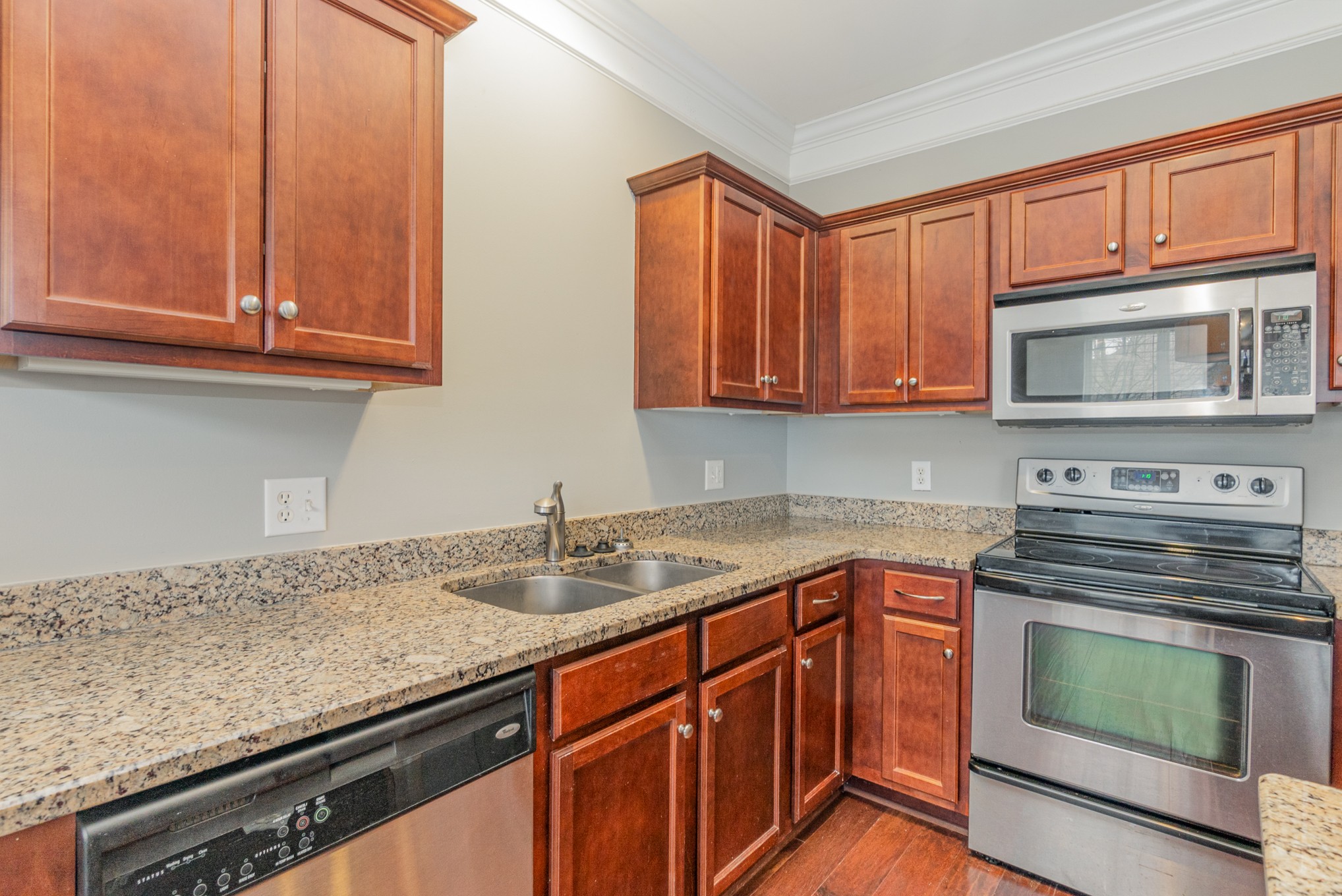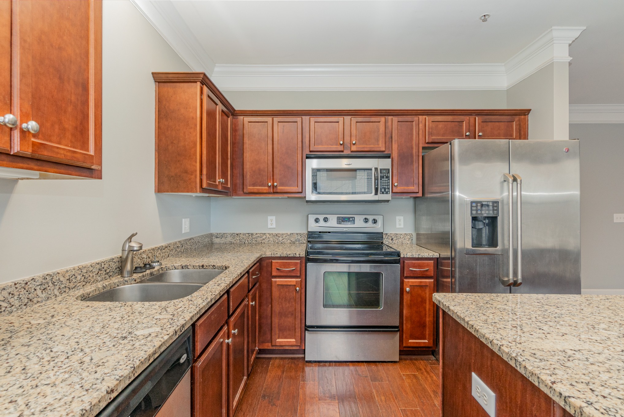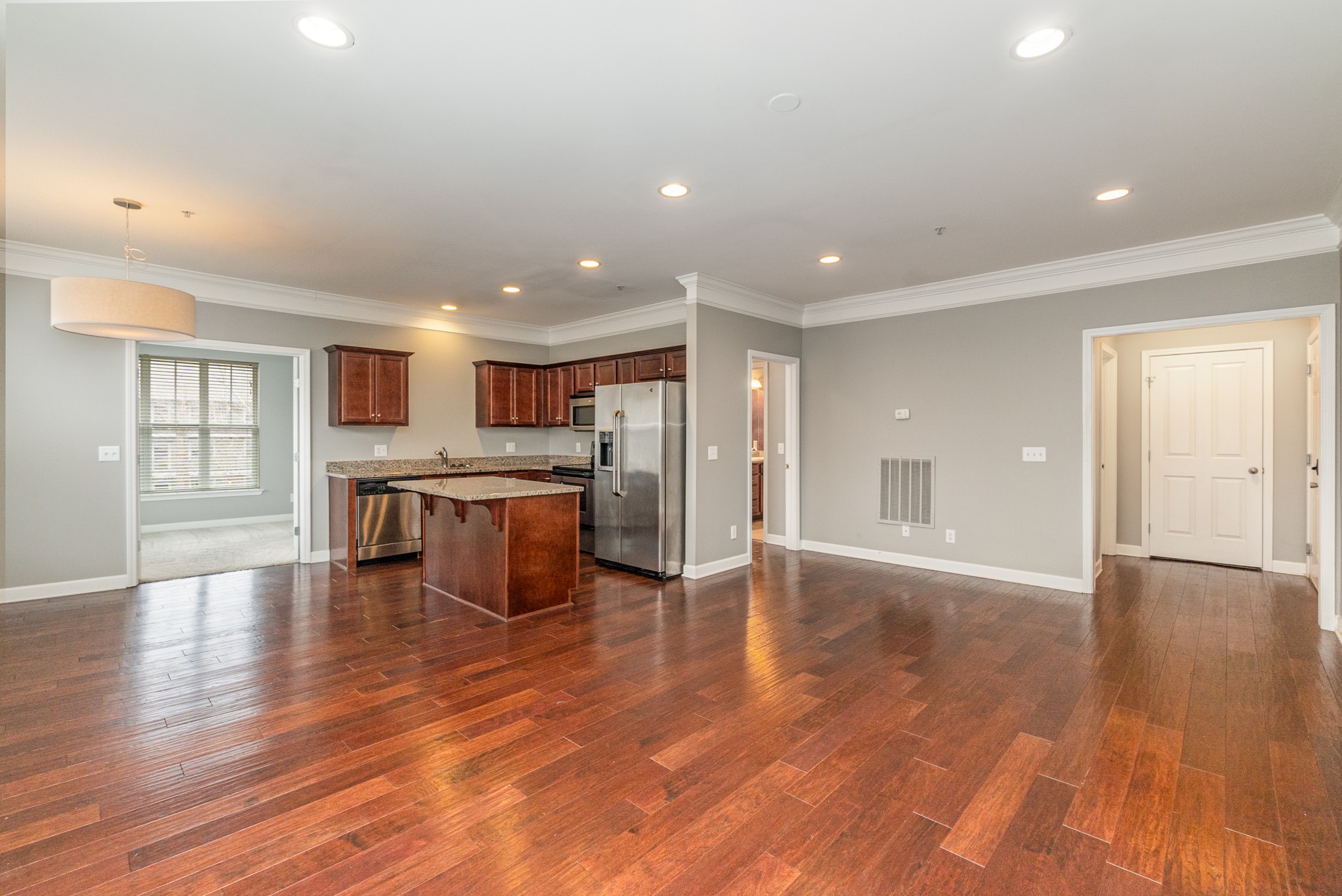 Stellar top floor condo in the heart of the city. Featuring a large great room with beautiful floors and tons of natural light. The kitchen features stainless steel appliances, granite counter tops, an island and ample storage. Large primary bedroom with a walk in closet. The 2nd room has french doors and can be another bedroom or an office. The bathroom has a double vanity and lots of storage space. The washer and dryer are included. Enjoy the many perks at Melrose Place and relax at the pool or work out at the fitness center. Conveniently located near shopping, dining, and entertainment. The home is FHA Approved.
