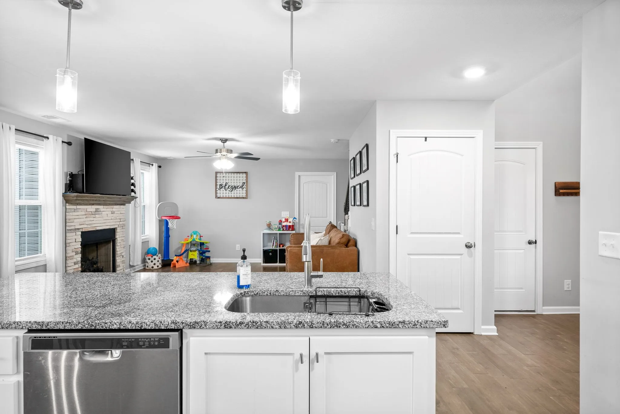 Beautiful 3 bedroom 2 1/2 bathroom home. This beauty features an open floor plan, beautiful flooring, a stone fireplace. The kitchen has a huge island with granite countertops, stainless steel appliances. Master bedroom offers trey ceilings, and lots of space. Outback offers a covered back deck to enjoy some shade on those hot summer days with a privacy fence. Walking distance to Community Pond.