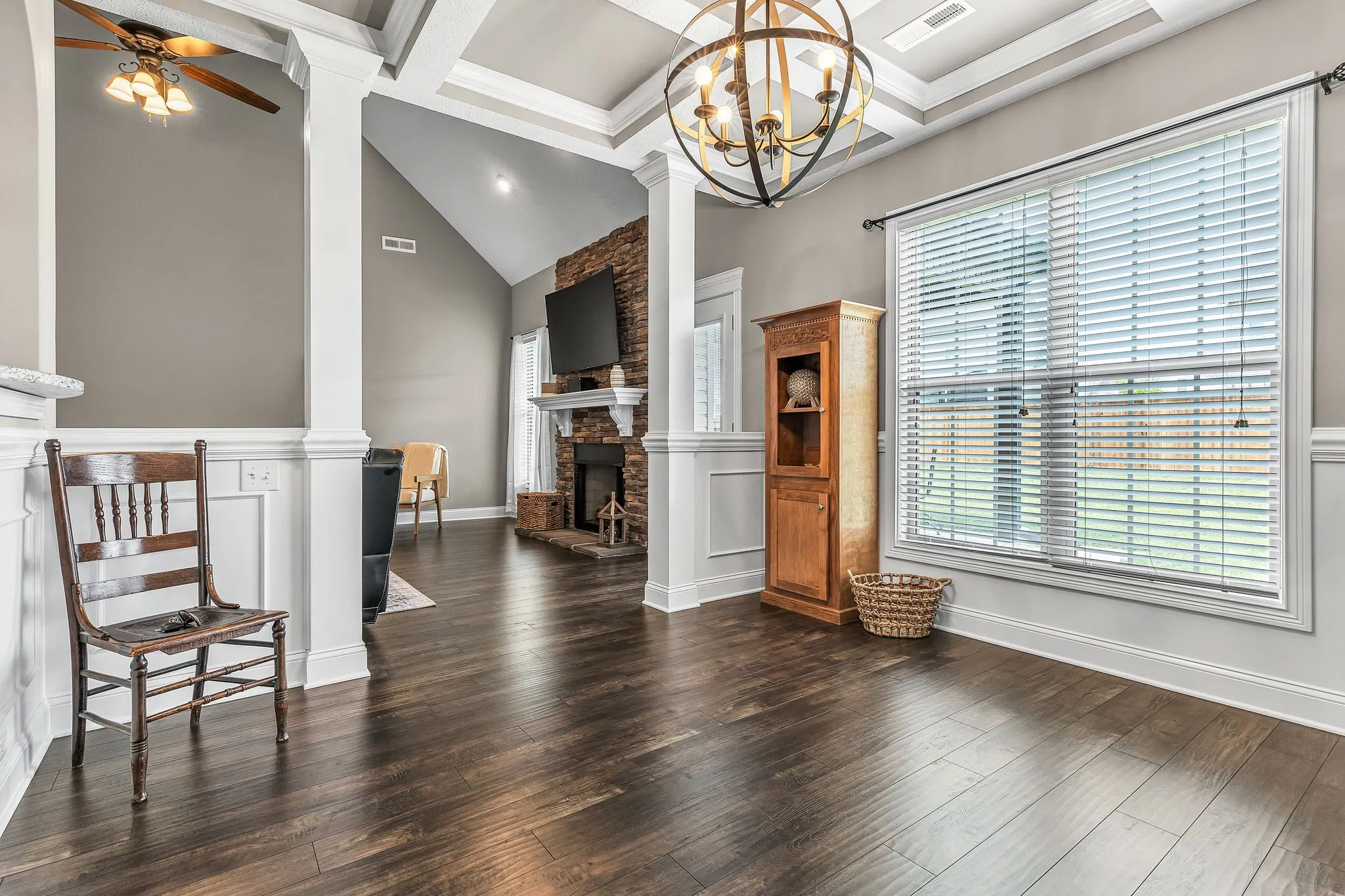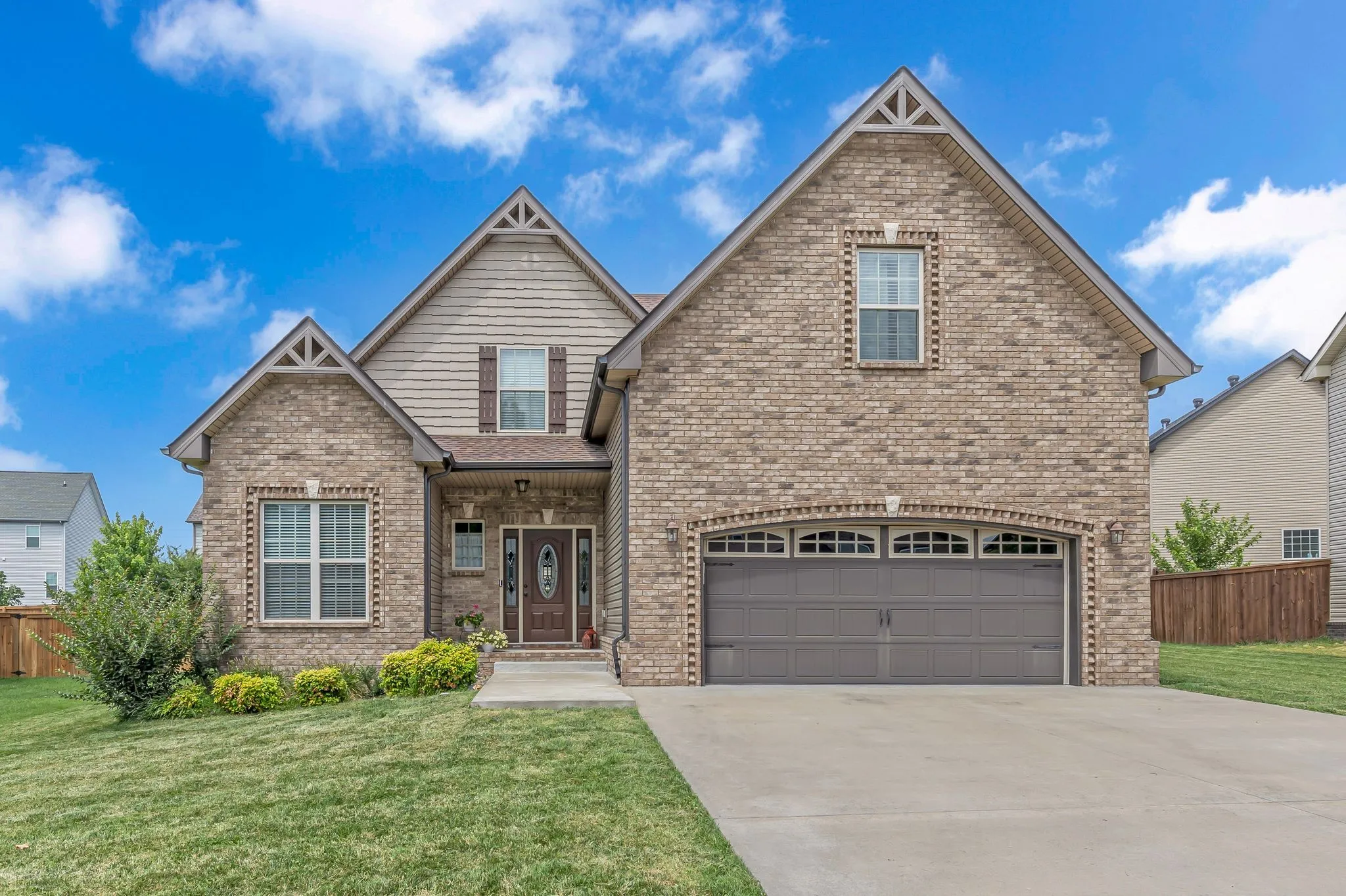 STUNING 2 story BRICK home located on a nice LEVEL lot in SANGO just minutes to the ROTARY PARK, Restaurants, shopping, downtown Clarksville & only 40 min. to Nashville. The GRAND FOYER opens to soaring high vaulted ceilings in the great room w/ a floor -to-ceiling STACKED STONE fireplace. Beautiful handscraped ENGINEERED WOOD floors flow thru-out the whole main level including the primary & guest suite. TILE FLOORS in all wet areas. The spacious eat-in kitchen has an abundance of cabinets w/ beautiful GRANITE counters, TILE backsplash, under cabinet lighting, pantry, SS appliances & a huge walk-in storage closet. Entertain your guest in the elegant formal dining room w/ COFFERED ceilings, WAINSCOT trim, decorative columns & an arched entrance. The primary suite offers a trey ceiling w/ recessed lighting, full bath w/ dble vanity, a huge tiled shower w/ bench,soaking tub a huge walk-in closet. The upstairs has 2 BR’s w/ walk-in closets, huge bonus room w/ closet that could be a 5th BR