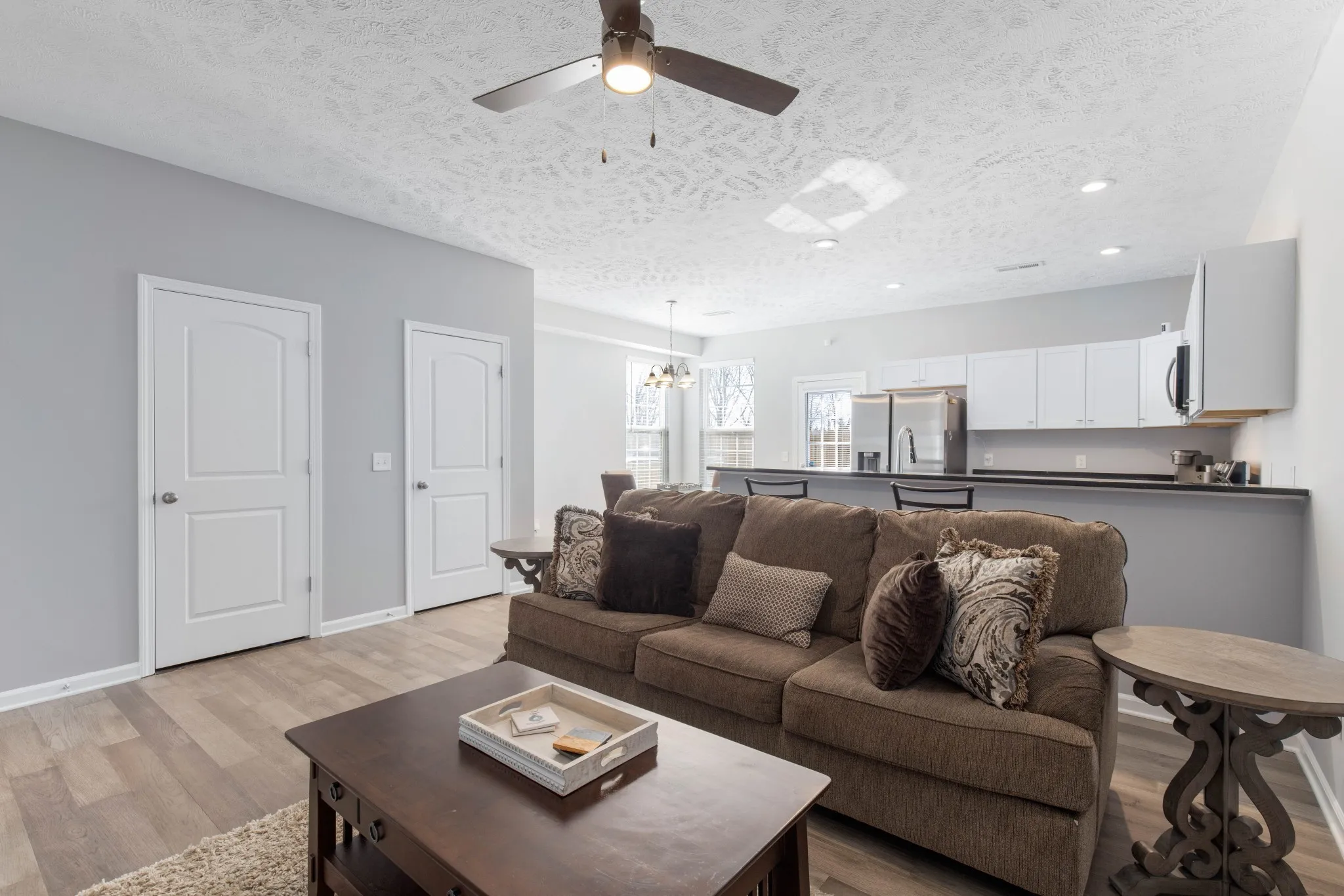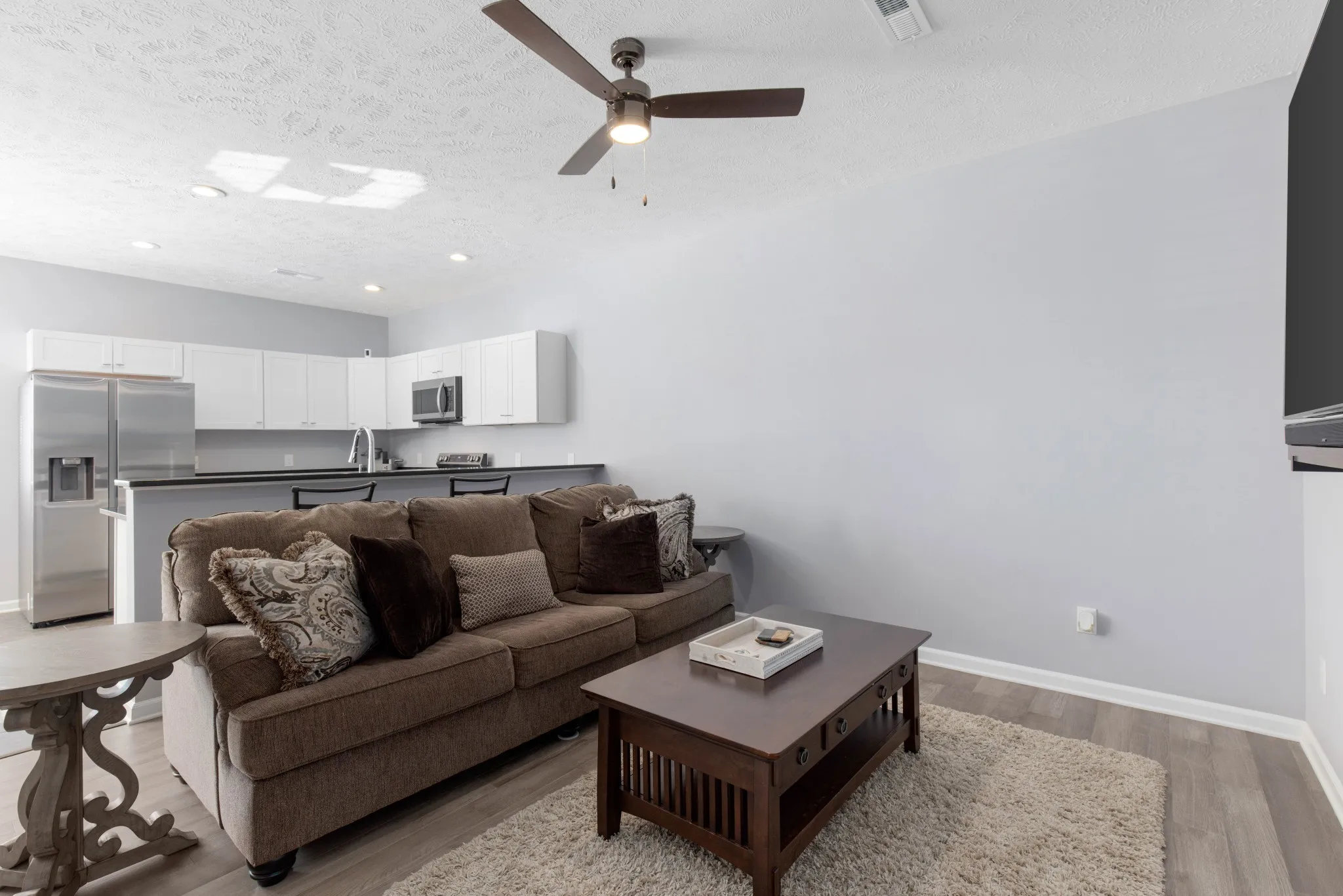 Location, location! Only 2 years old close to I-24, shopping & Nissan. This end unit features granite tops, hardwood floors, tile in the wet areas and neutral colors. Privacy fenced patio off the eat-in kitchen.