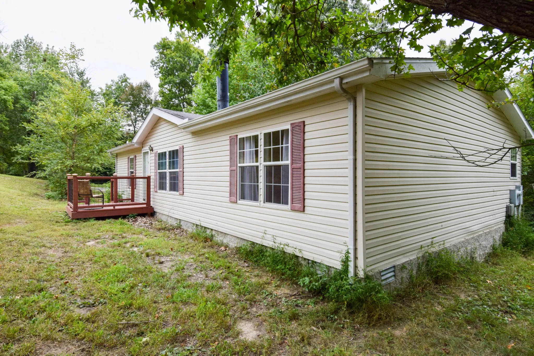Peaceful, private, serene location for a very lovely home…3 BD, 2 BA manufactured on permanent foundation. 1.7 acres secluded and arranged in a grove of mature trees. Central to Westmoreland, Gallatin, and Portland. Perfect for your main residence or an escape weekend retreat. Adorable interior…tile entry, kitchen and dining room floors. Corner dry-stacked fireplace. Split-private bedroom system. State-of-art owner suite bath. Granite counter in shared hall bath. Tile-edged kitchen counter, nice kitchen appliances and washer/dryer included. Generously-sized rooms. Picturesque side covered deck awaiting a hammock. Open small porch at entry. Must visit to appreciate the uniqueness. Outside ceiling fan is not connected and does not work. Seller will not pay cost of title. Previously approved for VA.