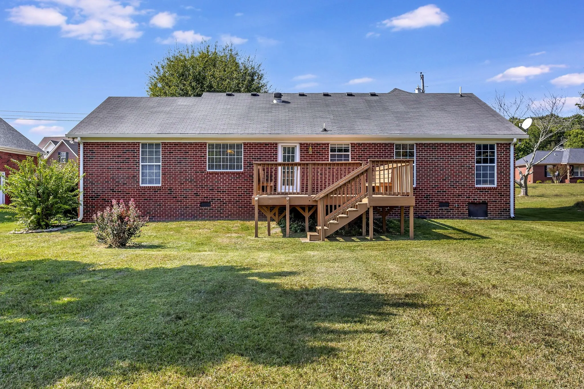 Nice brick home, conveniently located near interstate, shopping, and restaurants! Includes zoned bedrooms, formal dining, spacious eat-in kitchen and bonus room, storage, & lots of hardwood. Utility sink and workbench in the spacious 2 car garage! Large deck with seating overlooking a large private backyard!