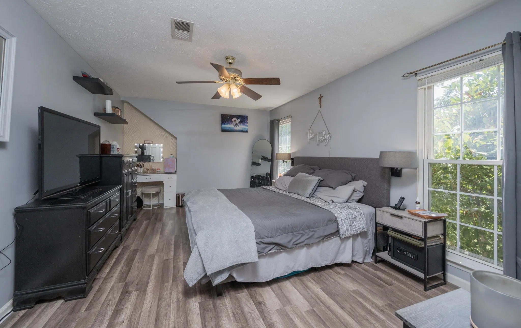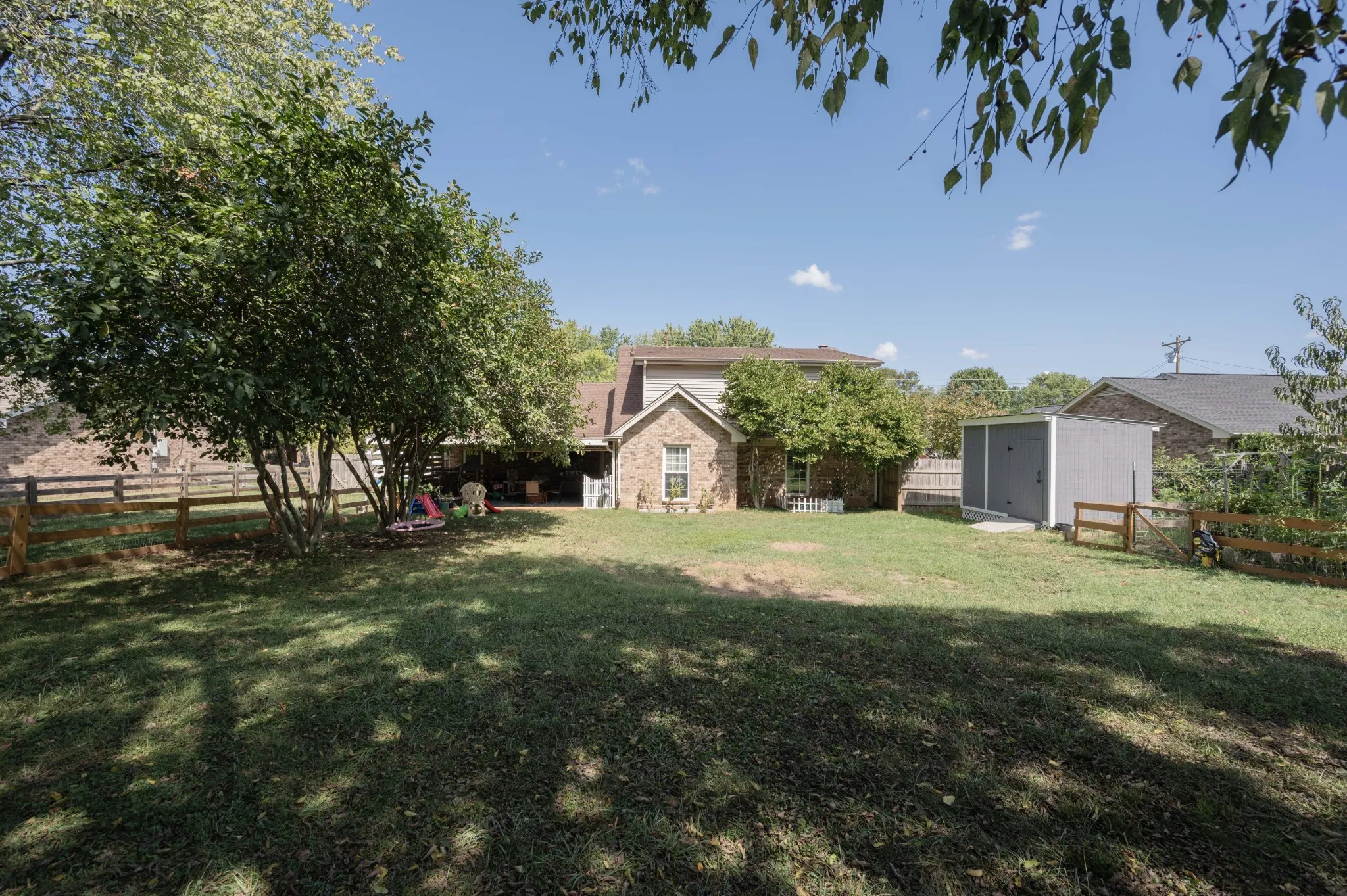 PRICE IMPROVEMENT! This beautiful renovated home has NEW LVP floors, fresh paint, newer windows (2017), under cabinet lighting, pantry, build in wine/beverage rack, updated hardware & faucet, SS appliances, gas FP in LR, large dining, vaulted ceilings, water filter. 3 BRs are split w/Master suite up has built in vanity & two BRs down, OR great space upstairs for older child, or even private office area. Relax on 24×19 covered back patio, overlooking a large fenced-in yard, w/sep. dog run. The garage has built in shelves and work bench, and storage building in the back yard. Smart Thermo (Ecobee), ring doorbells on front & driveway stay, Ring Camera on patio stays, Outdoor TV stays, plenty of attic storage. Screen doors front & back, doggy door to dog run, gas fireplace, all shelving stays, smart lock front door, sensors on H20 & smoke detectors and best part is NO HOA!!