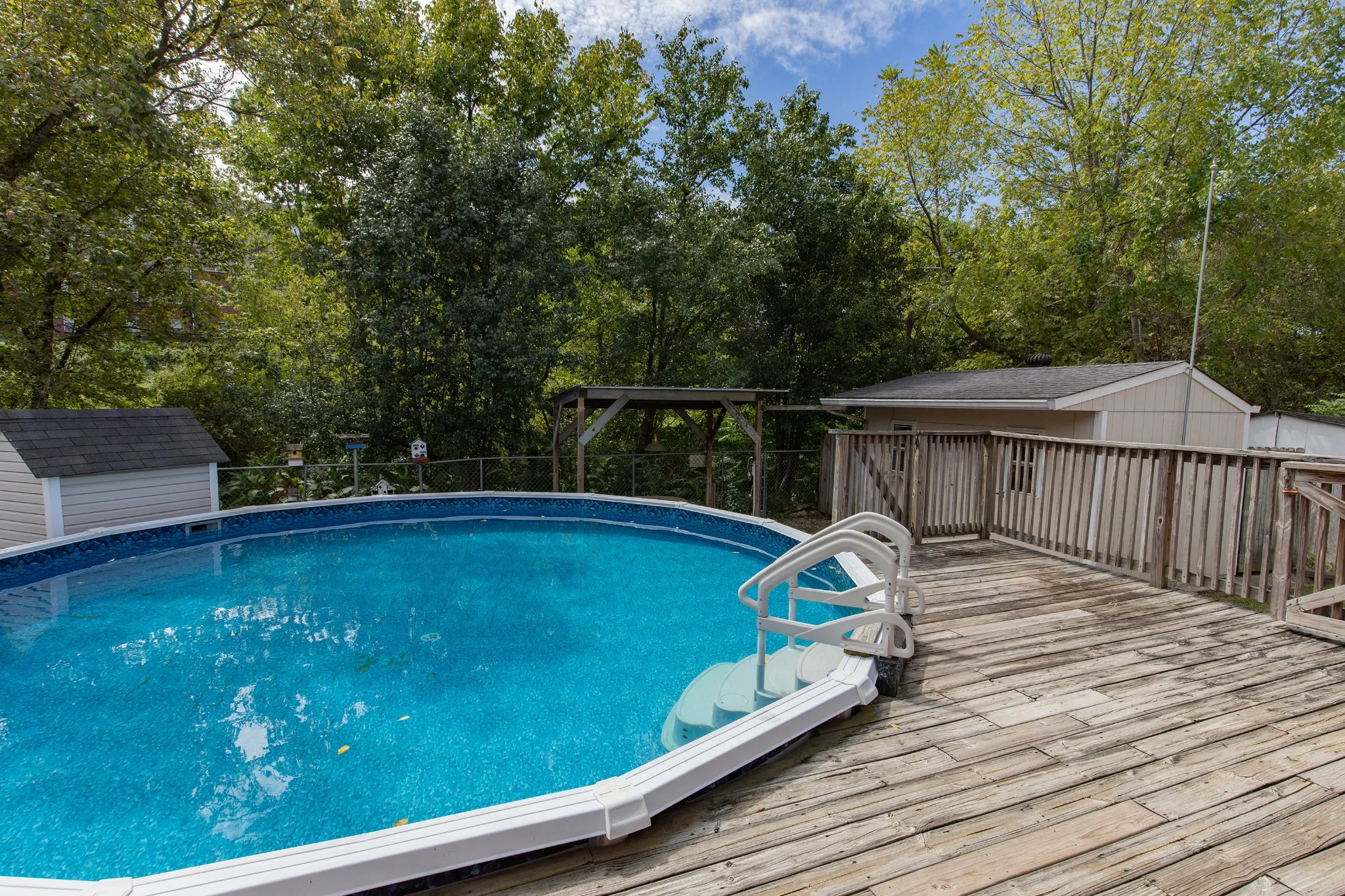 Prime location and attractively priced for a fast sale! This lovingly maintained home features a newer roof and windows, ample storage, and plenty of character. The basement has HVAC and a walkout to the backyard, which boasts an above-ground pool, storage shed, and versatile outdoor spaces. Cleared pathways provide access to the creek.