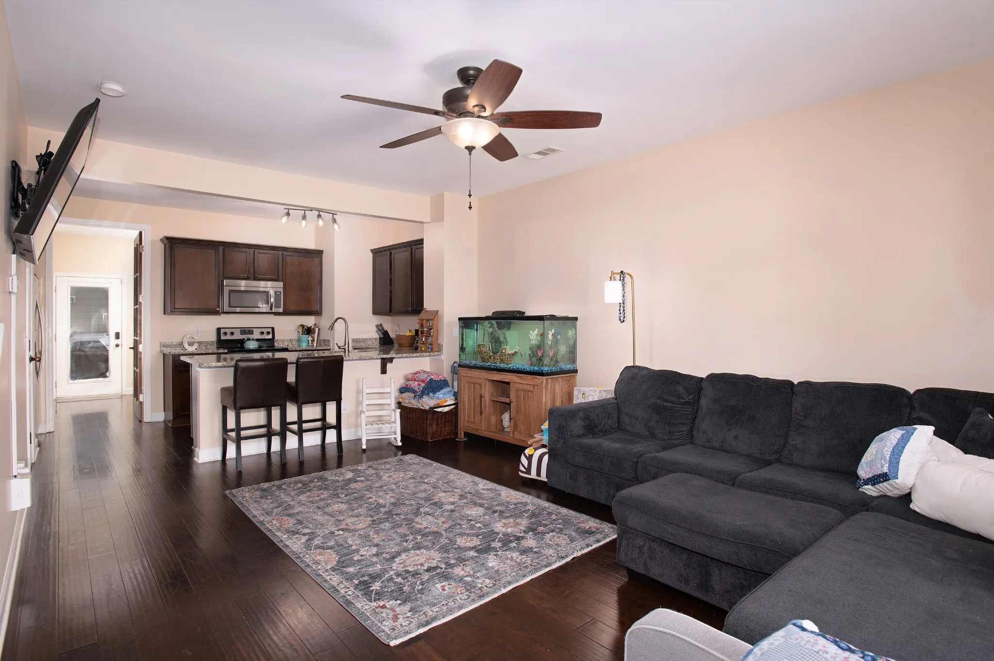 Seller is offering a 2-1 buy down with use of our preferred lender! Step into luxury and functionality with this exquisite 2-bedroom, 2.5-bathroom townhome featuring an open floor plan, a dedicated office space, and a community pool with minimal traffic. This home is convenient to all that Murfreesboro has to offer! Less than 5 minutes to local grocery stores, 10 minutes from the interstate, and only 15 minutes to shopping at the Avenue. This home features hardwood floors throughout, complemented by sleek granite countertops in the kitchen and bathrooms. Downstairs features a versatile flex room, with a newly installed door to separate the flex space from the main living area. This home is perfect for entertaining with a private courtyard area that leads to a detached 1 car garage. Spacious front porch with a private and quiet view of greenspace. Additional 3 parking spaces that are easily accessible in front of home for guests.