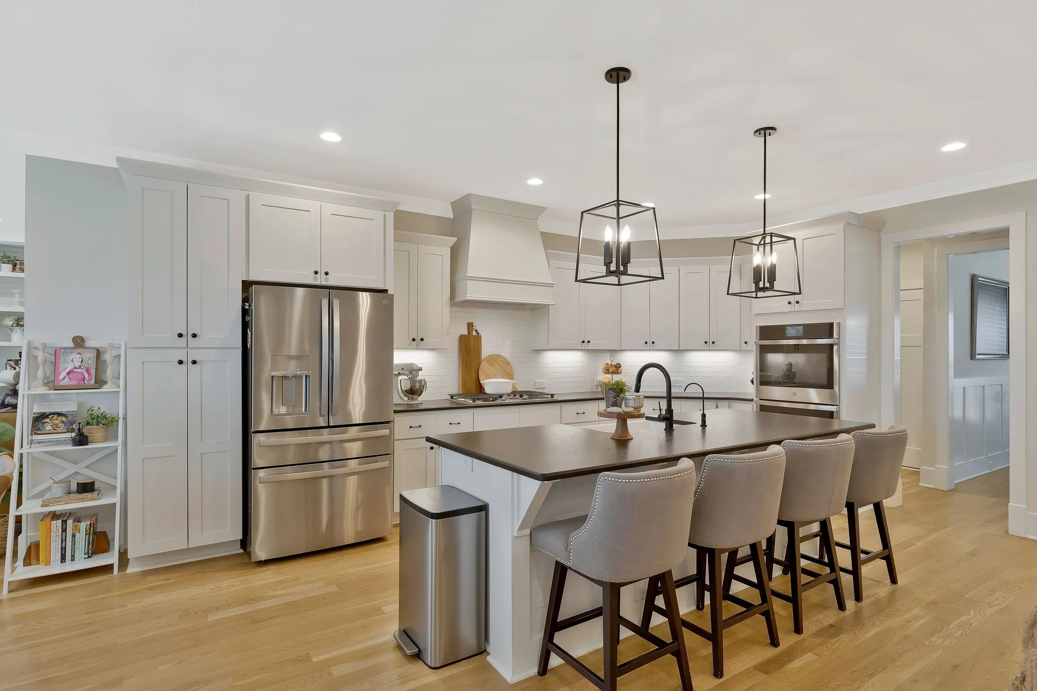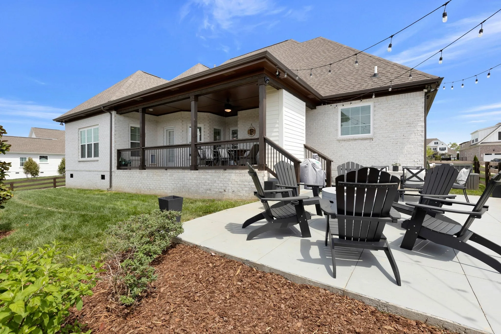 Wonderful Location in the heart of Spring Hill. Convenient and walkable to nearby amenities! This all brick corner lot home has upgrades galore. 2 bedrooms down, including a huge primary bedroom w/ vaulted ceilings, large bathroom suite w/ freestanding tub, tile shower, & double vanities. Soaring ceilings in the Great room, sand and finish hardwood floors, designer lighting, and a beautiful open floor plan. The gourmet kitchen features a large island, tons of cabinets, big pantry, leathered granite countertops, double smart ovens, built-in gas cooktop , custom hood. The Keeping room w/ fireplace located off of the kitchen is perfect for entertaining. The large covered porch with gas fireplace & patio leads to the gorgeous fenced-in back yard w/ irrigation & beautiful landscaping. Upstairs has 2 bedrooms, 2 baths, Huge Bonus room w/ wet bar & raised stage. Tons of storage /closets, additional room converted to home gym. Side entry 3 car garage & large driveway , Zoned Independence High!