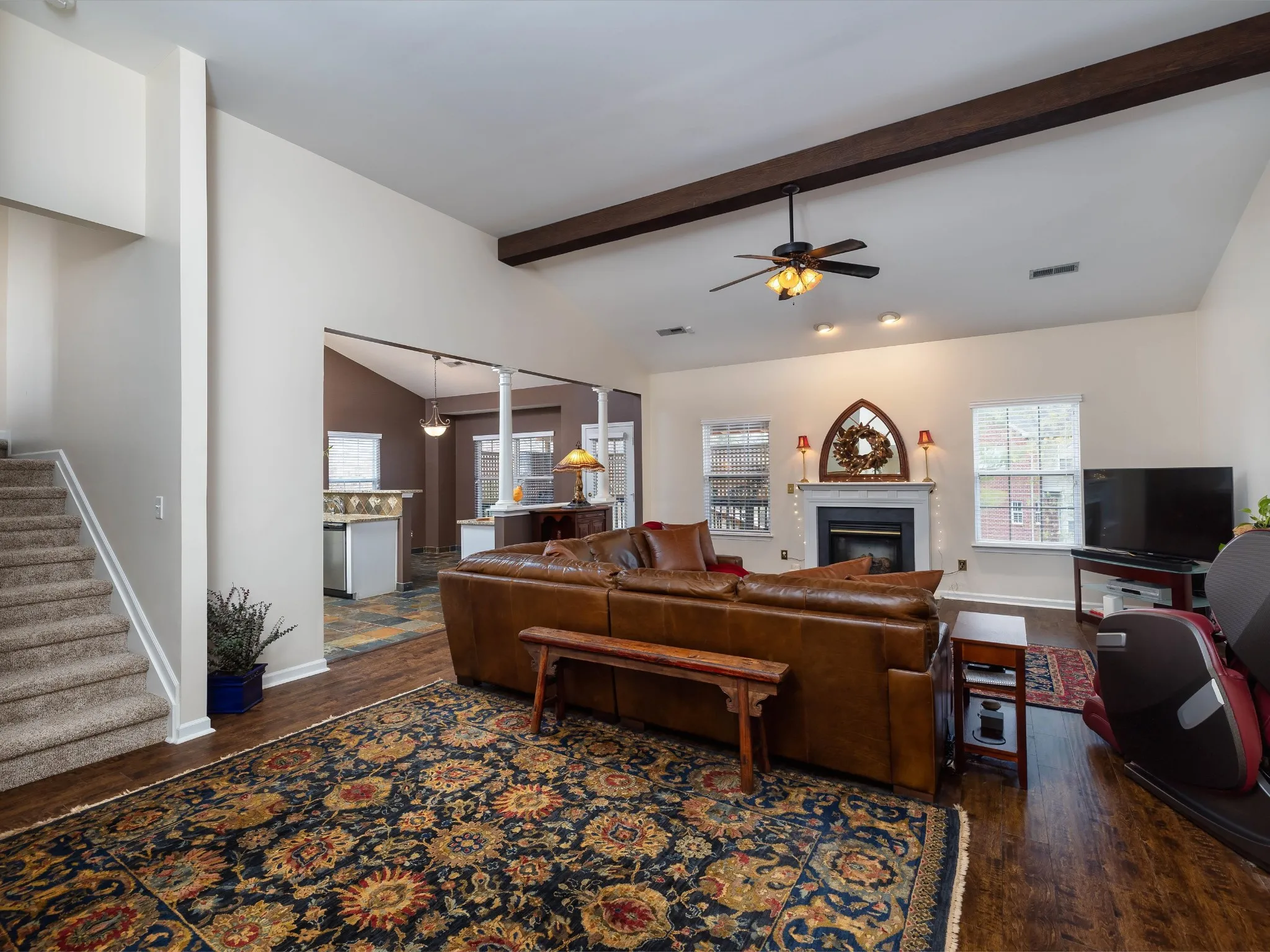 Step into this meticulously maintained 3-bedroom home nestled between Nolensville and Brentwood. Convenience rules with close proximity to highways, shopping and top dining options. On the main floor, discover the heart of the home with the large living room with beamed vaulted ceilings, and the expansive kitchen that seamlessly flows to the outdoor covered porch where you can enjoy the large newly fenced level corner lot. . This home offers one level living with a main level primary suite as well as an oversized second floor bonus room… the perfect floorpan!