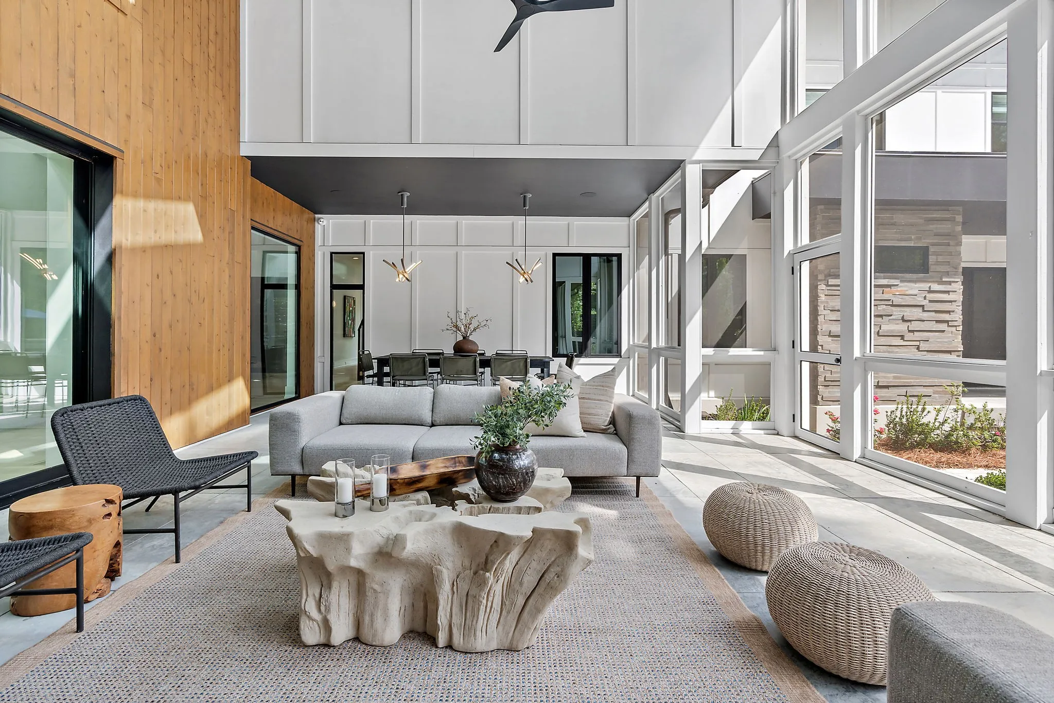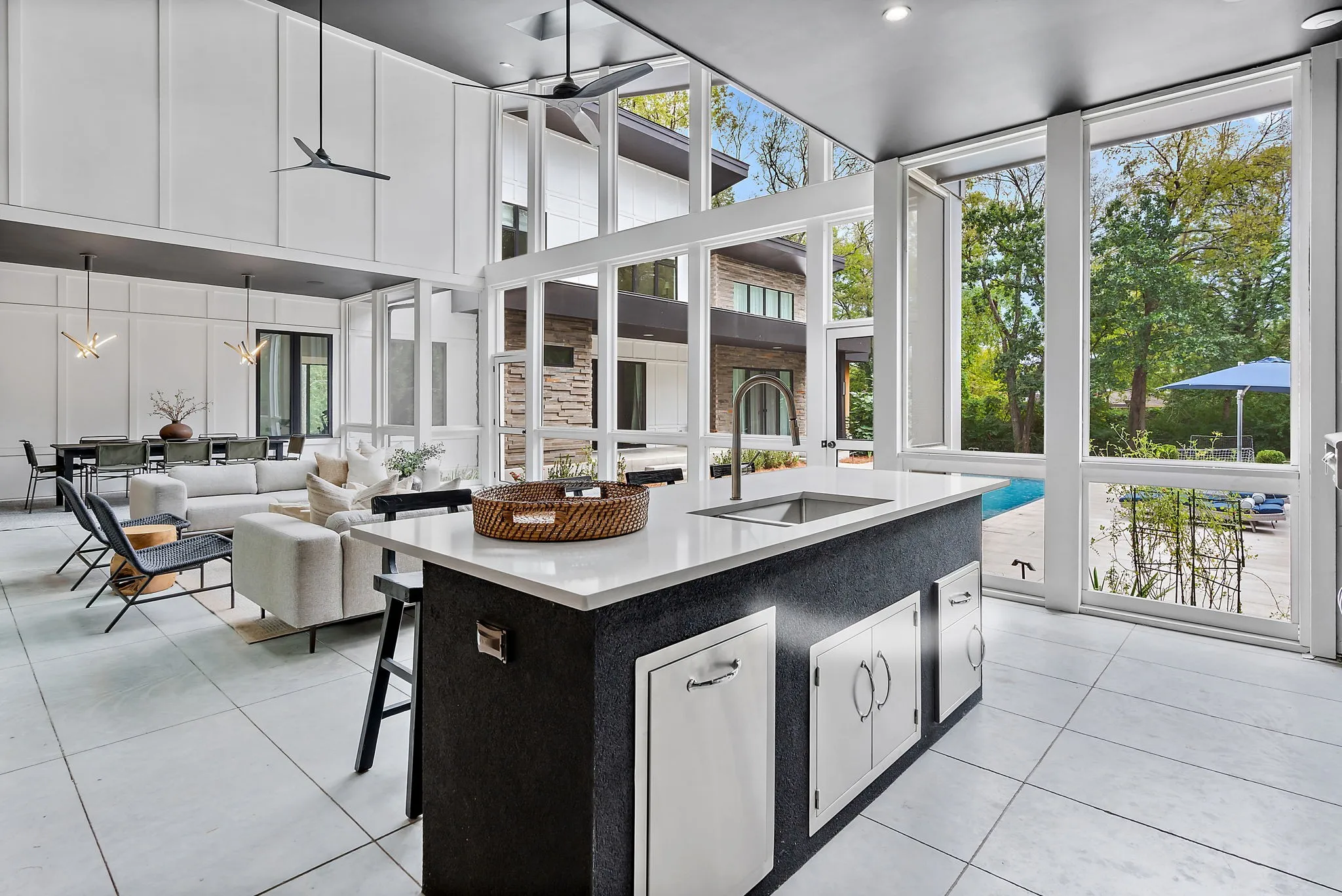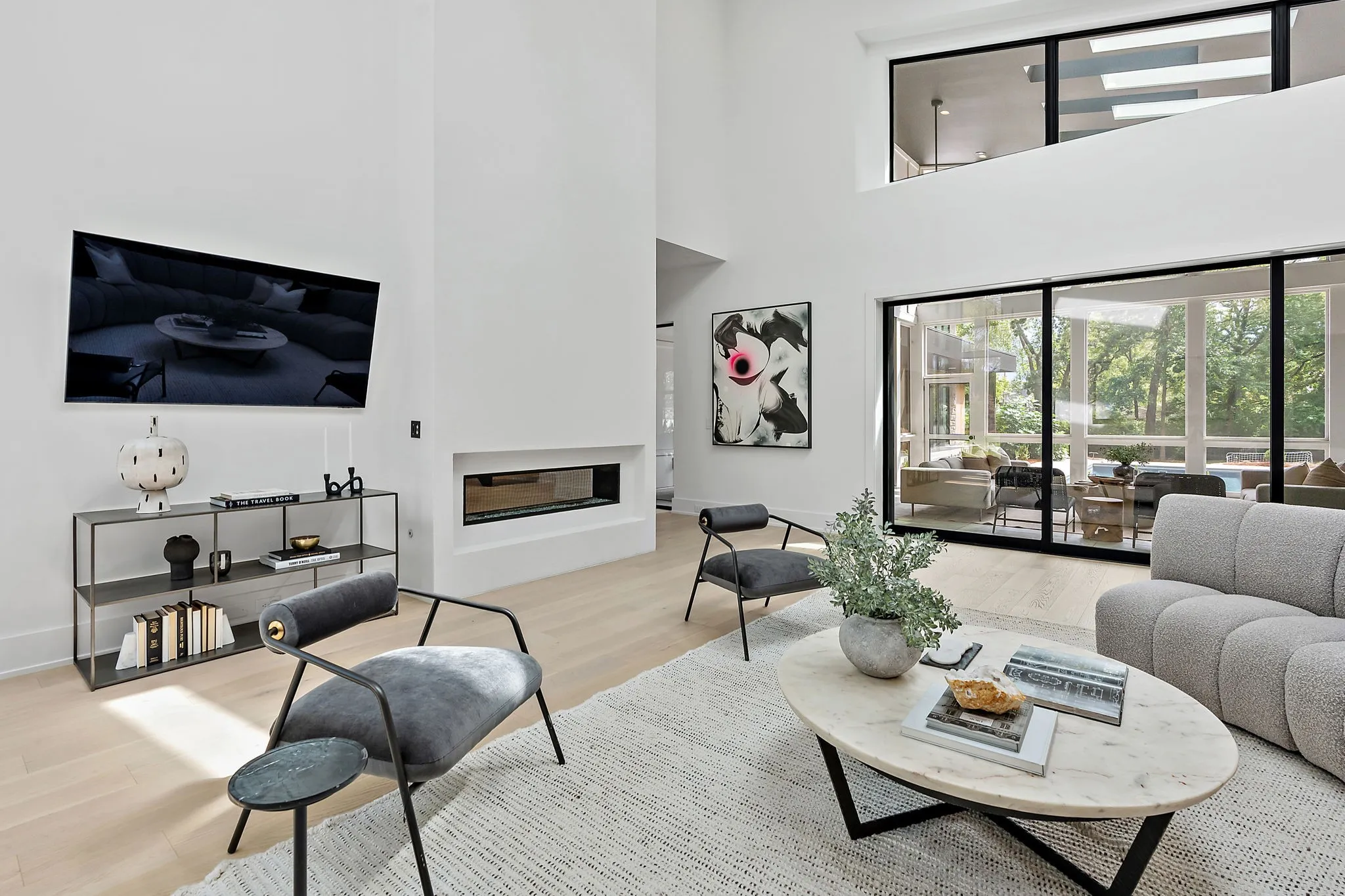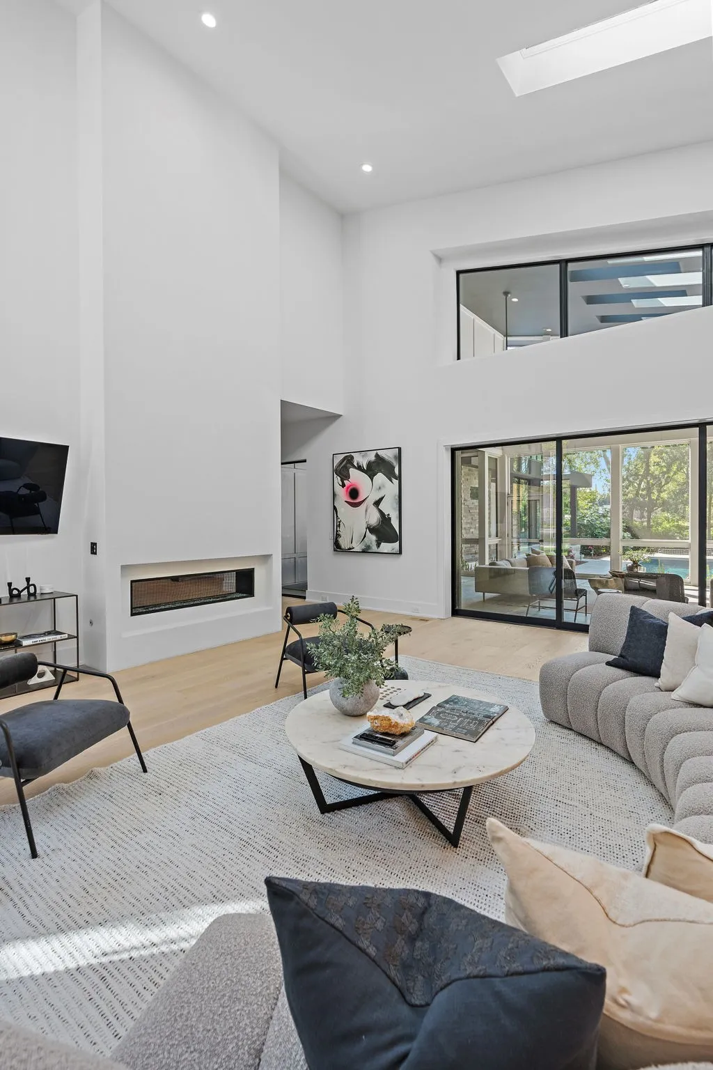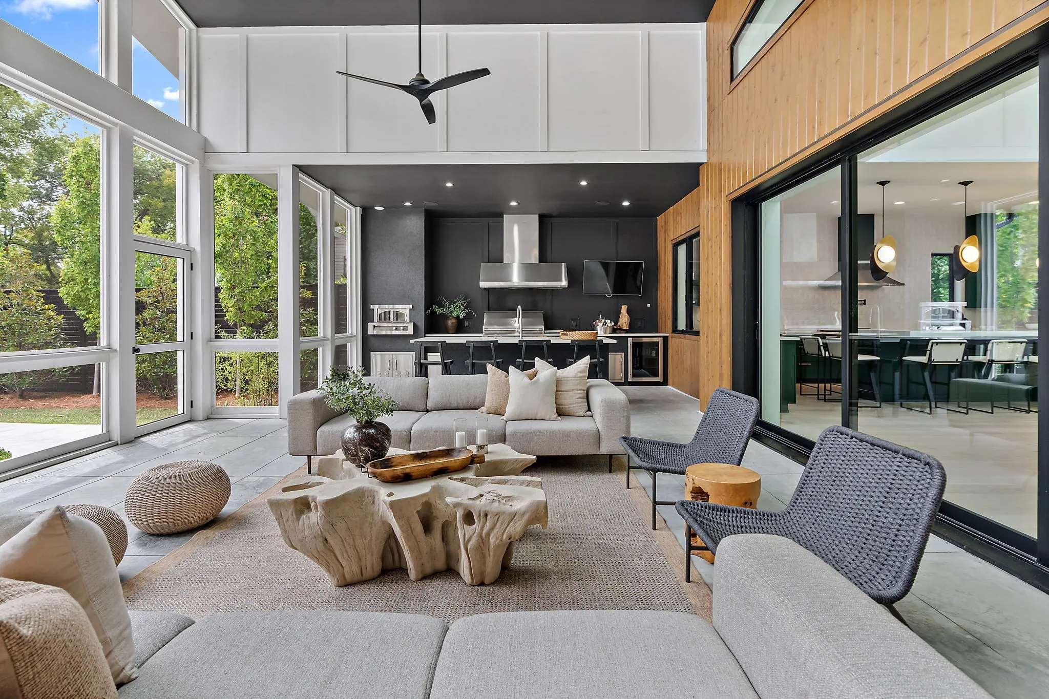 "LongDescription" => "Outdoor living space includes gas line for fire pit, 4 skylights, 2 ceiling fans and a mounted TV"