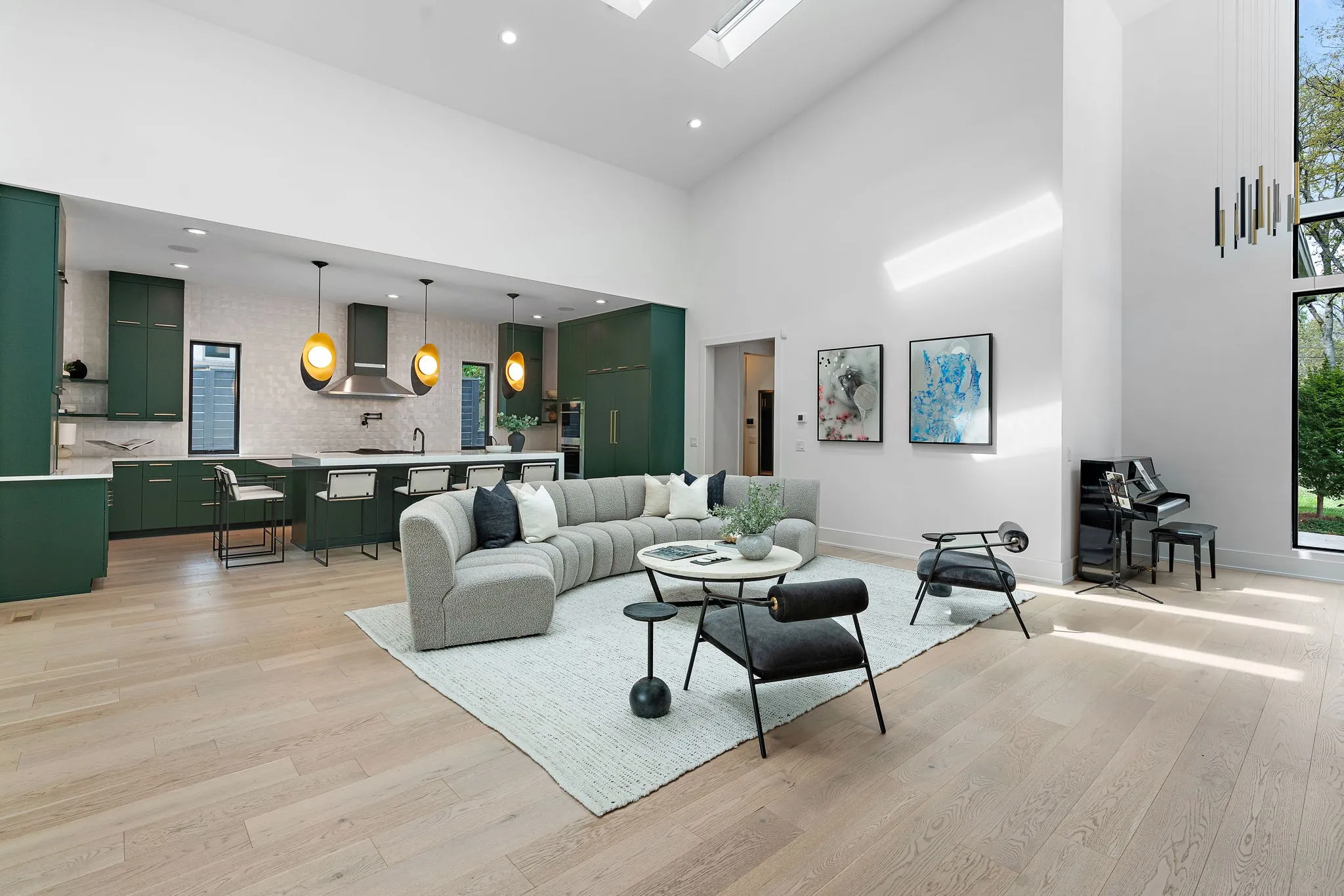 +"PublicRemarks": "Welcome to 1621 Graybar Lane, a RARE luxury Build Nashville custom home on a private, completely flat 1-acre Green Hills lot. This sleek, contemporary residence blends luxury and functionality, with 25-foot ceilings that flood the living space with natural light. The gourmet kitchen boasts Wolf appliances, 60" flat-panel Fisher & Paykel fridge/freezer, two Asko dishwashers, and a custom waterfall island. A 15-foot glass slider opens into a 900-sq-ft screened porch where\u{A0}an Alfresco outdoor kitchen (with pizza oven) offers the perfect venue for entertaining. Just beyond, a large fiberglass saltwater heated pool with fountains rounds out the outdoor\u{A0}space. Home features 6 bedrooms, 6 baths, fitness/dance studio, Kohler steam room, indoor Golf Simulator, huge bonus room,\u{A0}3-car garage with a Tesla charger, and a\u{A0}soccer practice field in backyard. Mins to Green Hills Mall, 12th South, Hillsboro Village and Downtown Nashville, Vanderbilt, Belmont, and Lipscomb Universities."