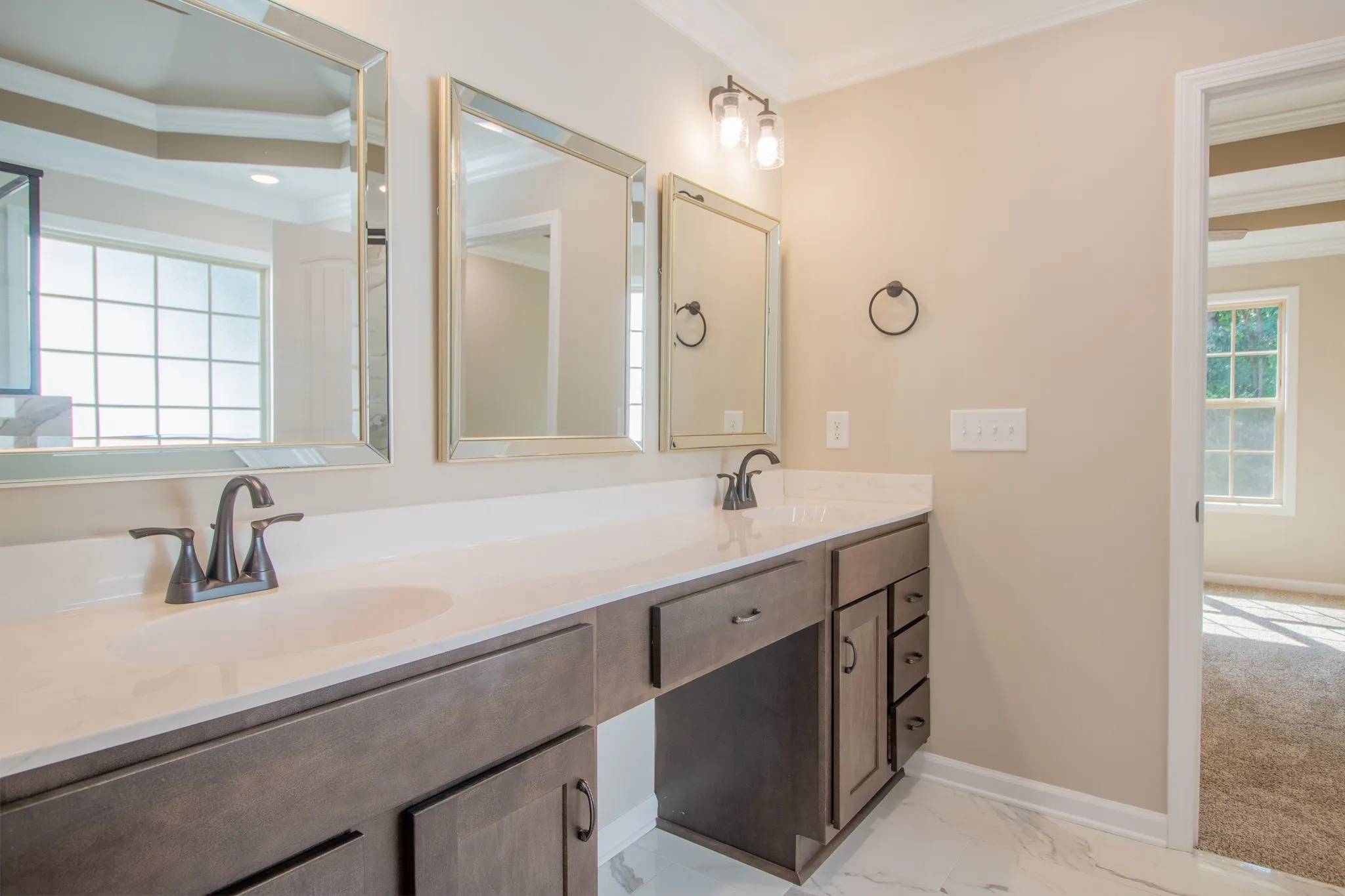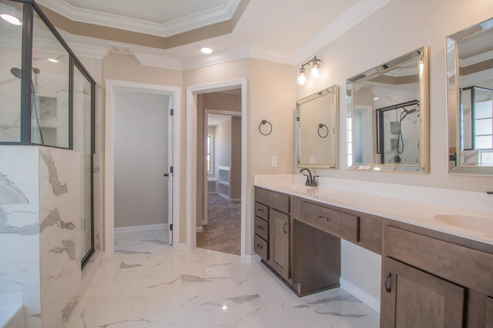 "ShortDescription" => "Double Vanity with Cosmetic Vanity in the Middle! Lots of Cabinet Storage, Modern Lighting and Large Mirrors!"