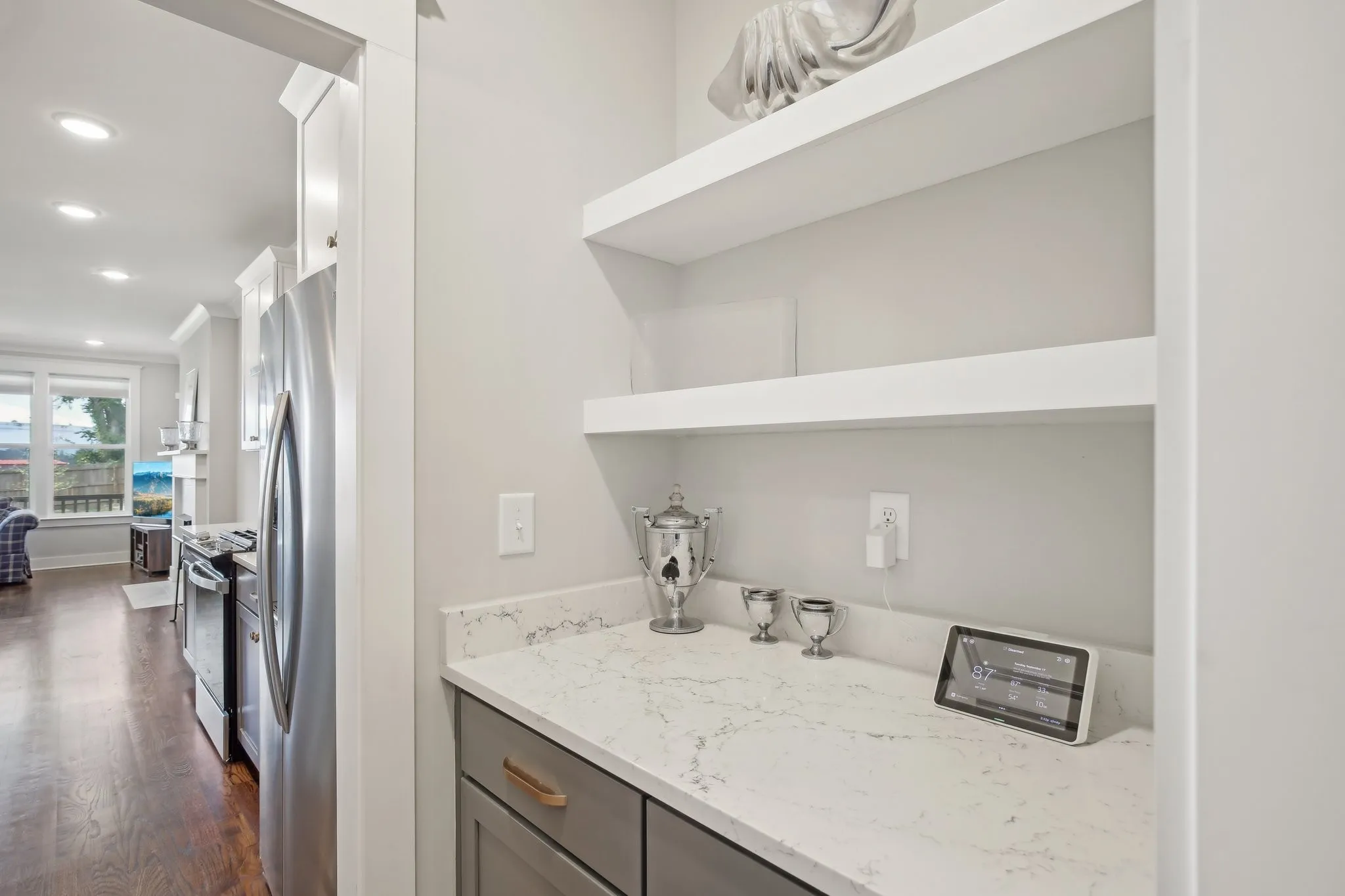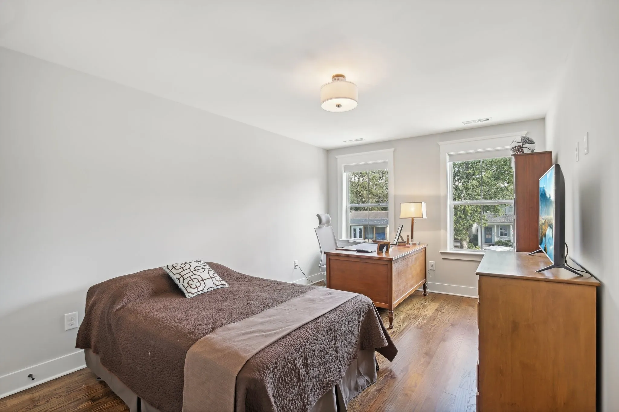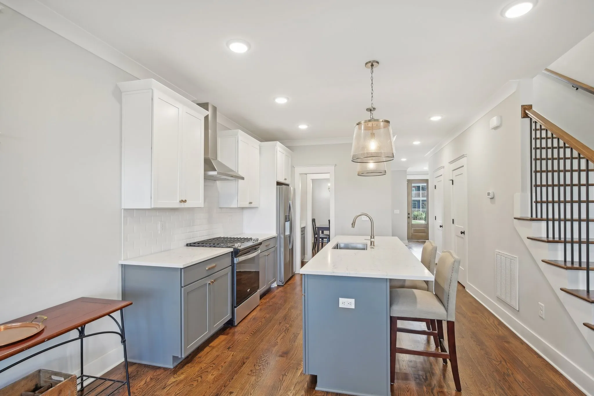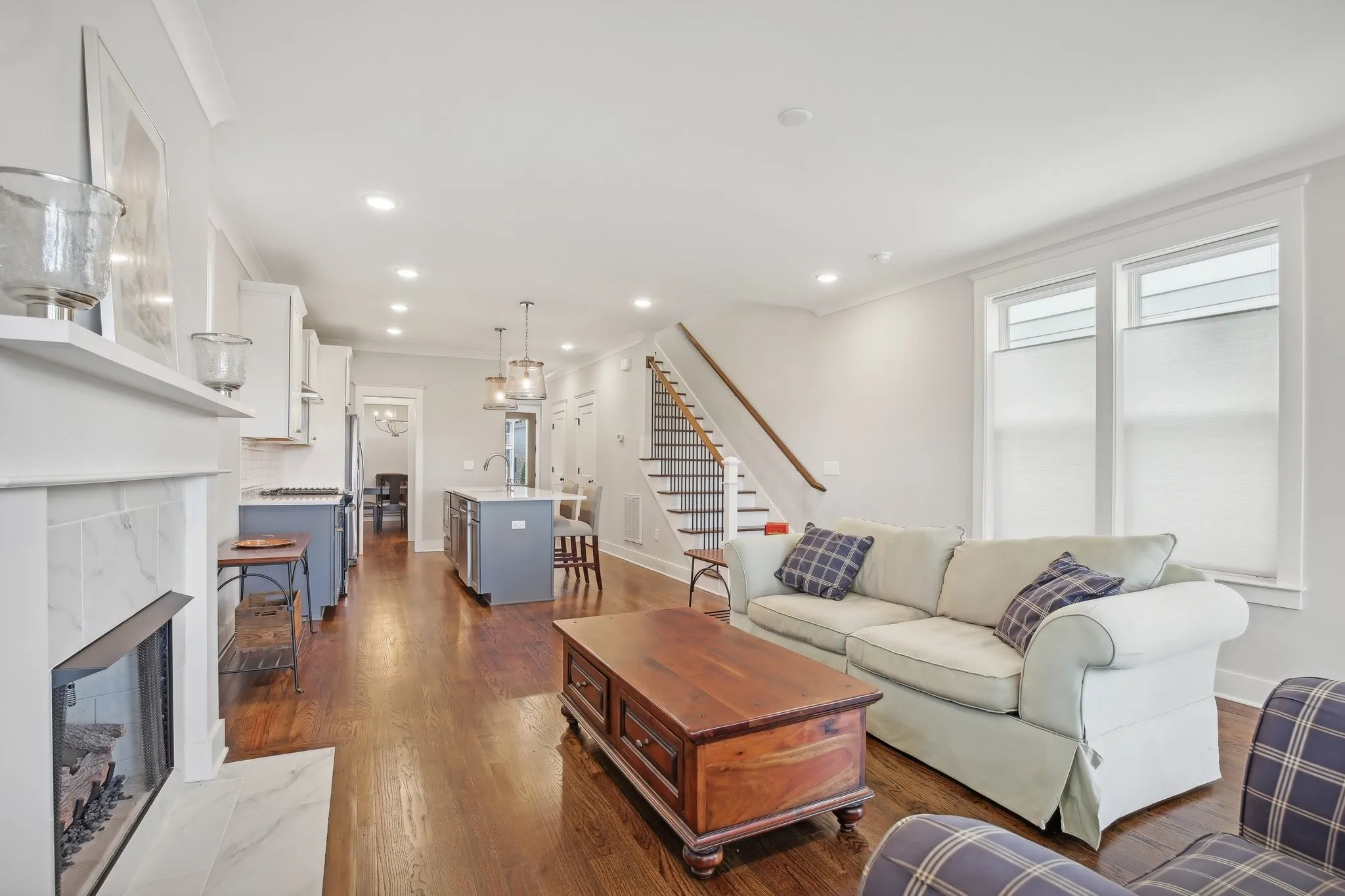 Impressive 2022 built detached home located in the Nations! Featuring 3 beds, 2.5 baths, 1-car garage and a fully fenced-in backyard. This home backs up to West Park so you’ve got no neighbors behind you, making it a unique option for the Nations! Top quality construction by local builder (MRB Developers). Beautiful real hardwood floors throughout! Spacious living room w/ gas fireplace. Open kitchen w/ gas range + butler’s pantry. Formal dining room. Large primary suite w/ tiled walk-in shower, double vanities and walk-in closet w/ built-in’s. Lots of windows and great light throughout. This home also features a covered back porch and recently installed concrete paver patio. Tankless water heater + spray foam insulation in the attic & crawlspace also makes this home extra energy efficient! Refrigerator, washer, and dryer all remain. 3D tour link in media section. Convenient location just blocks from restaurants and shops in the Nations and only approx. 5 miles from Downtown Nashville!
