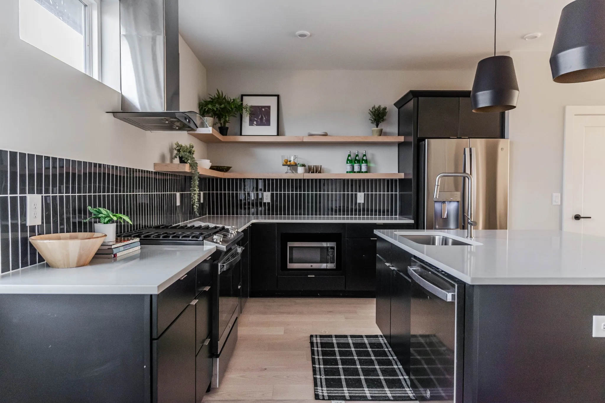 This new construction townhome brings elevated design to a walkable location. The LAST home of six unique townhome designs, the homes feature a rare basement which includes a two-car garage, a bonus room with full bath, and an underground storm shelter. Natural light and open shelving frame a modern kitchen that has two enclosed pantries. Enjoy downtown views while entertaining on the covered terrace and top floor lounge. Expansive windows, vaulted ceilings, walk-in laundry room, gas tankless hot water heater, spray foam insulation, EV charger, privacy fencing, community dog run, and closets to spare. Cladded in cedar and yakisugi (Japanese burned cedar), the natural materials bring warm tones to a modern, prairie style architecture. HOA Dues includes property insurance, landscaping, and trash. Video Tour: https://vimeo.com/885338894