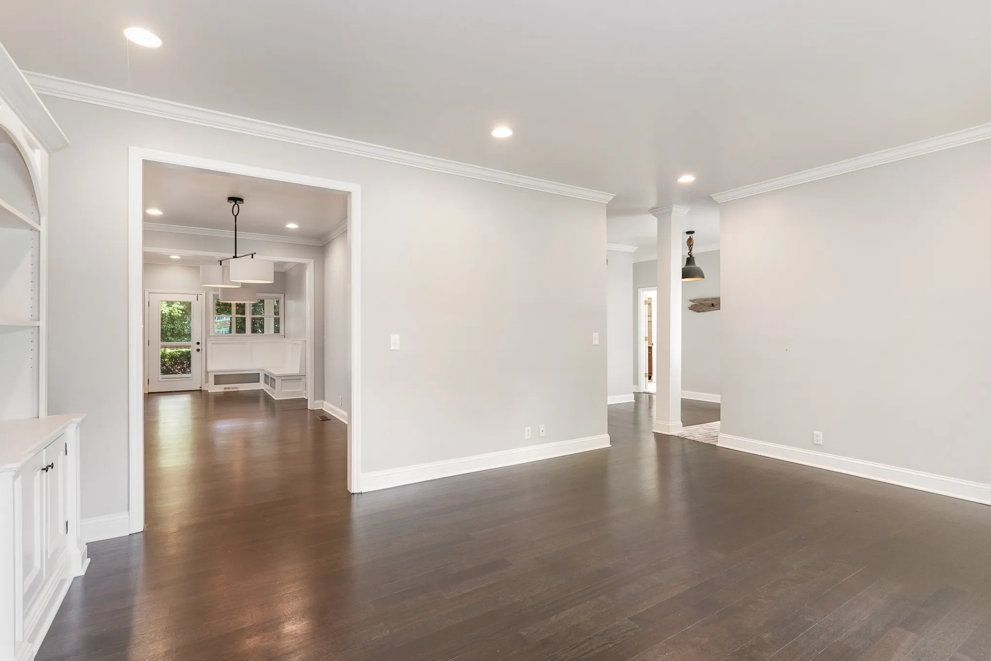 **Recently appraised for $1,185,000 – instant equity!** Welcome to your dream home, just a short stroll from the vibrant heart of Downtown Franklin. Greeting you is a covered grand entrance. The interior boasts beautiful hardwood floors and recessed lighting throughout all with luxurious and premium trim throughout. The kitchen features vaulted ceilings, a garage door opening to a fenced-in yard, a farmhouse-style sink, SS appliances, w/ tile backsplash & under-cabinet LED lighting. Also enjoy the screened-in porch and fully remote gas fireplace in the living room that add to the cozy atmosphere. The main suite, conveniently located on the main floor, offers a serene retreat with a huge walk-in shower/tub combo. Complete with custom built-in walk-in closet. An additional office room and a separate laundry room also on the main floor. Upstairs, two spacious bedrooms share a Jack & Jill bath. Garage is heated/cooled. Tankless water heater, encapsulated crawlspace & water filtration. Walk-in basement with heated & cooled work space!