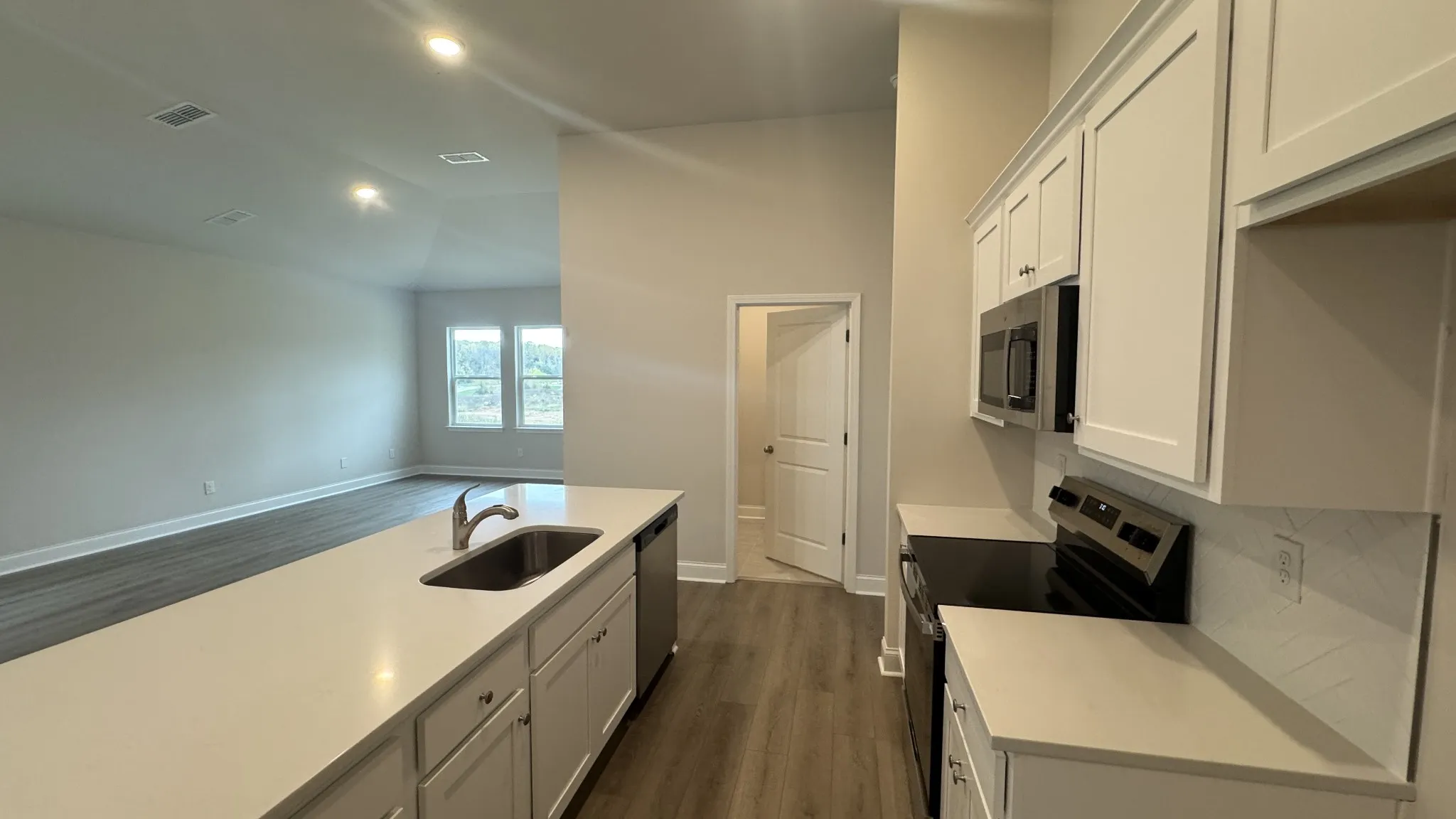 The Cumberland, a thoughtfully designed single-story home that perfectly blends comfort and modern living. This inviting 3-bedroom plan features an open concept layout, allowing for seamless flow between the spacious living, dining, and kitchen areas. The heart of the home is the stunning kitchen, complete with an island that doubles as a breakfast bar, making it ideal for casual meals or entertaining guests. Ample cabinetry provides plenty of storage, while modern appliances and finishes create a stylish, functional space. Each bedroom is designed with comfort in mind, offering generous closet space and natural light. The primary suite features an ensuite bathroom for added privacy and convenience. A second bathroom serves the additional bedrooms, ensuring everyone has their own space.