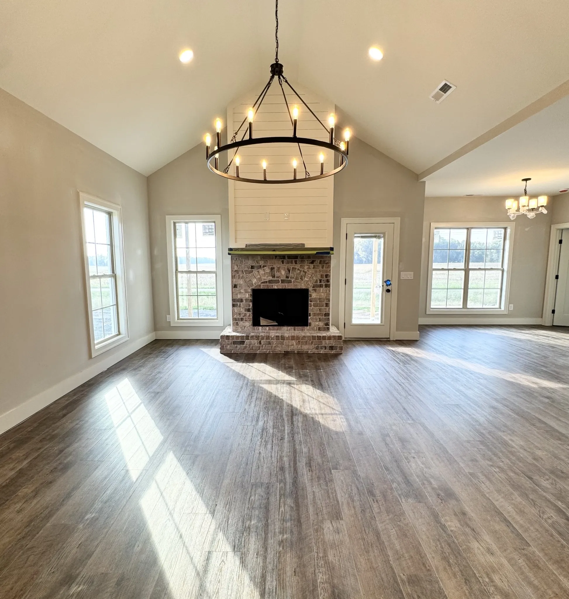 Welcome to your dream home; 1900+ sfqt on one level, offering seamless flow and effortless accessibility. This unique floor plan, designed for modern living, provides a perfect blend of functionality and style. Envision the completed product: You step inside to be greeted by the grandeur of vaulted ceilings in the living room, where abundant natural light enhances the airy, open atmosphere. The neutral tones throughout create a versatile canvas, allowing you to easily personalize the space to your taste and make it truly your own. A crisp white painted-brick exterior, that exudes timeless elegance –Nestled in a highly desirable location, with convenient access to local amenities and serene surroundings.