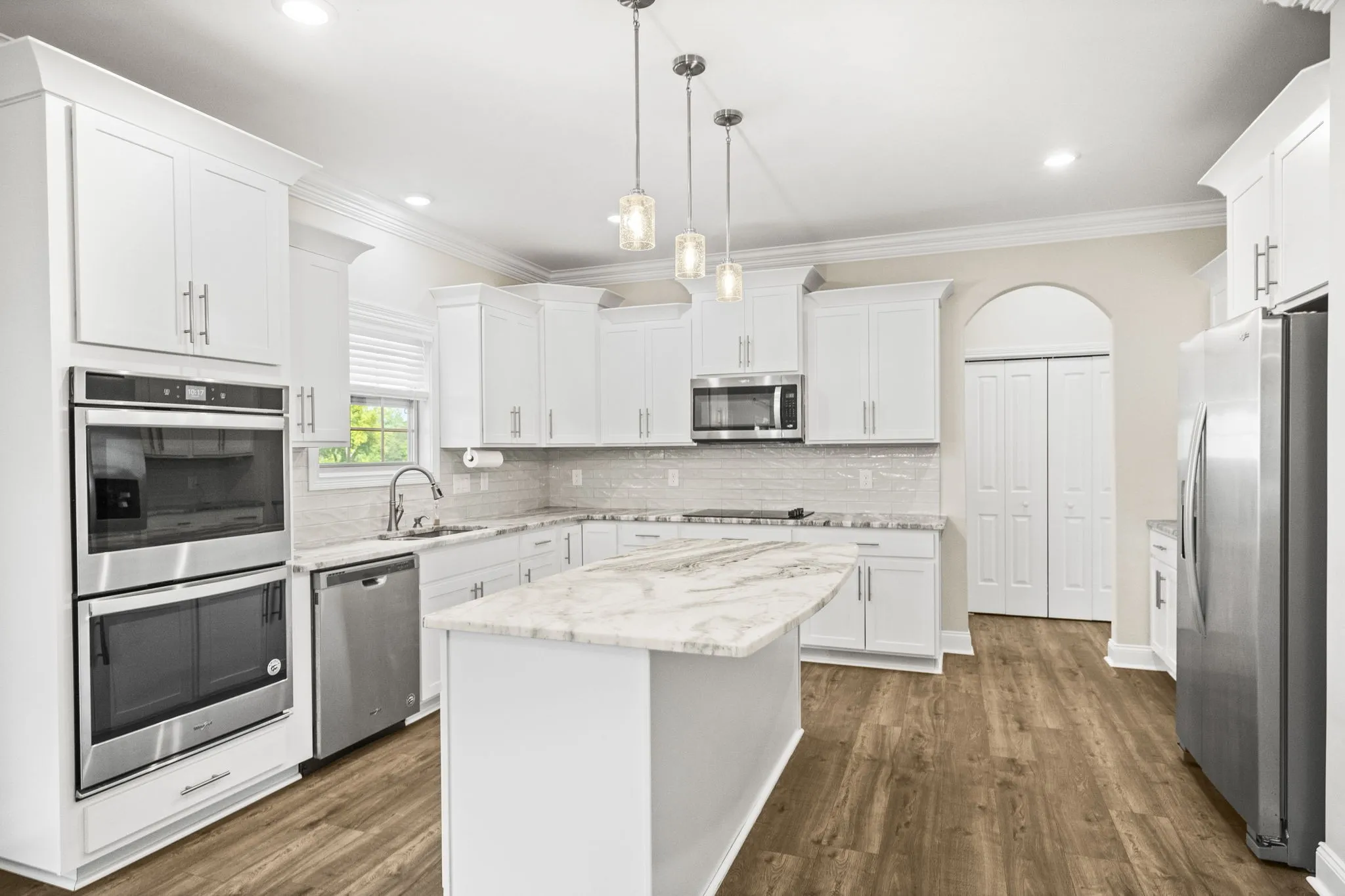 SELLER FINANCING! Come see this beautiful home in Clarksville. Greeted by vaulted ceiling when walking through the front door. The kitchen has tons of cabinets, counter space, and an island. Also the kitchen has double ovens. The primary suite has tray ceiling along with soaking tub in bathroom. Three of the four bedrooms have large walk in closets. There is a covered deck in the rear of home. The large back yard is fenced. The kids playset to remain with home.
