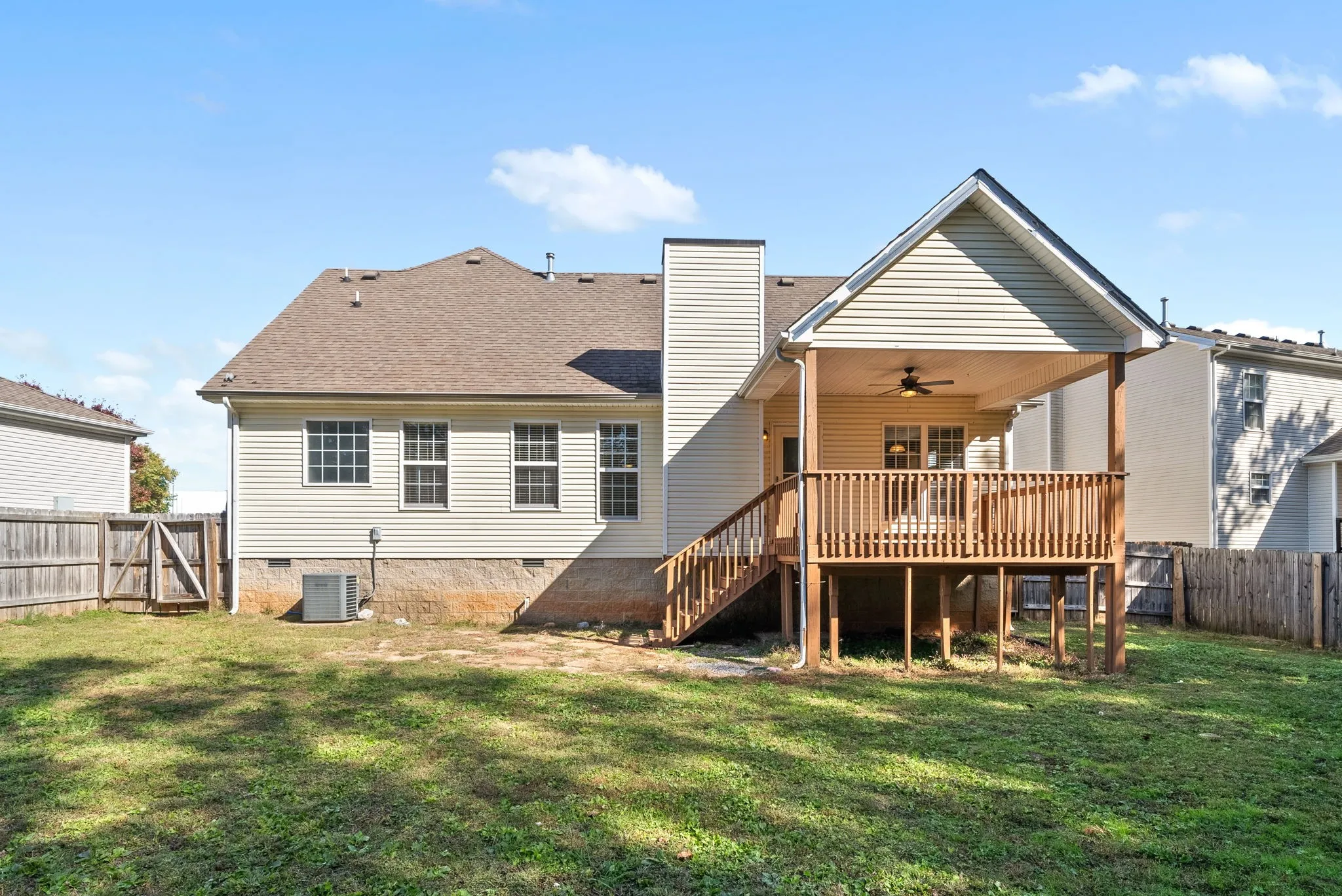 This LOVELY 3 bedroom 3 full bath home is all yours for the taking! As you flip through the photos you will see that this home has high ceilings in the living room, with an open floorplan from the kitchen, it also boasts a split floorplan with a little privacy for the primary bedroom, separate laundry room and a HUGE bonus room above the garage with a full bath and a walk-in closet along with additional accessible storage space in the attic. Two car garage, and a covered deck overlooking a pretty decent size back yard enclosed with a privacy fence. Don’t just look at the pictures, schedule a private showing and scoop this home up!