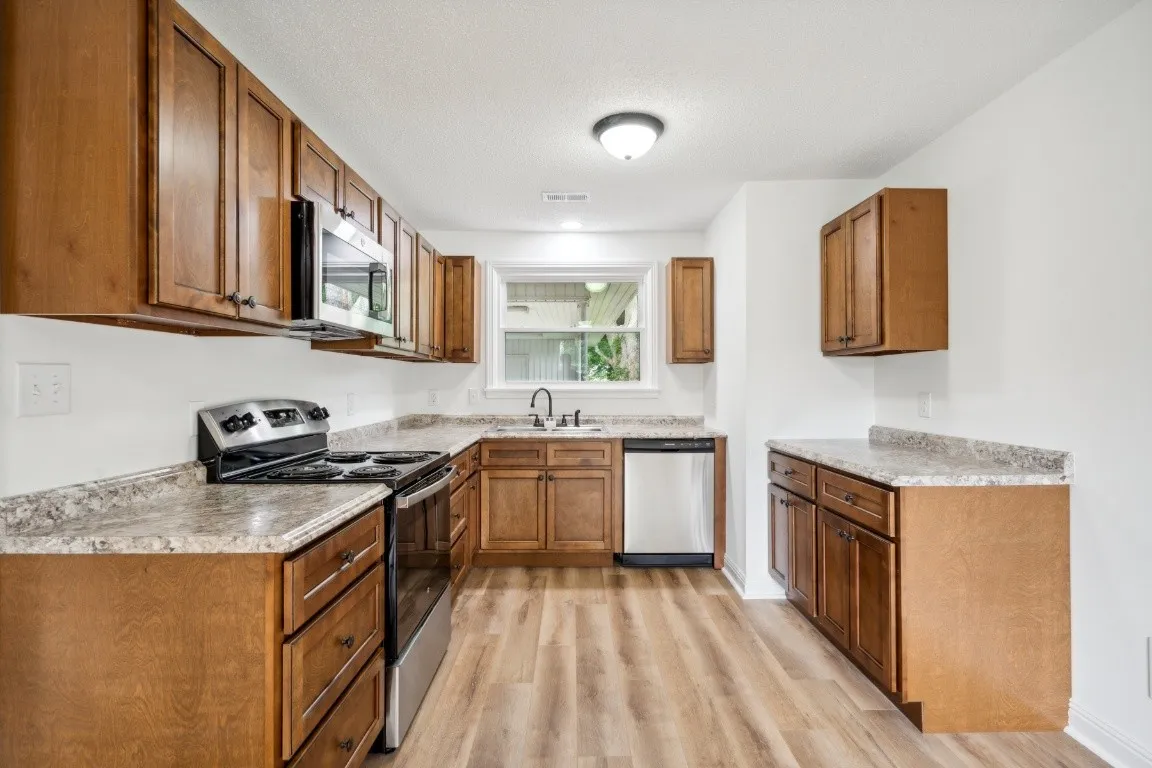 Welcome to your dream home! This beautifully renovated all-brick residence offers single-level living and is situated in a desirable location close to a charming small park. With a host of modern updates, this home is ready for you to move in and enjoy. Enjoy brand-new windows, HVAC system, flooring, cabinets, countertops, paint, lighting, plumbing, and floor coverings. The home features an attached 2-car carport for convenience and a 6×19 storage room to keep your belongings organized. The fully fenced yard provides a safe and private space for outdoor activities and relaxation. This home combines classic brick charm with contemporary upgrades, making it a perfect choice for anyone seeking comfort and style in a great location.