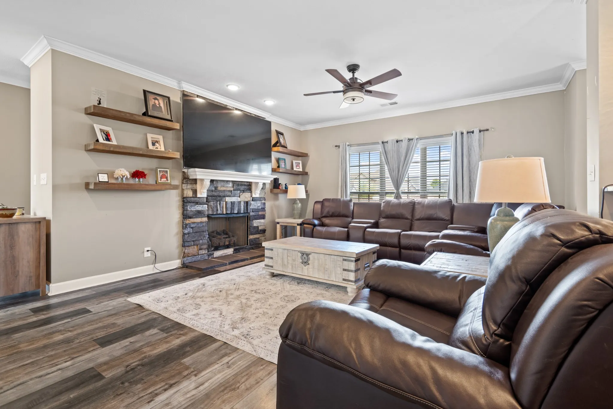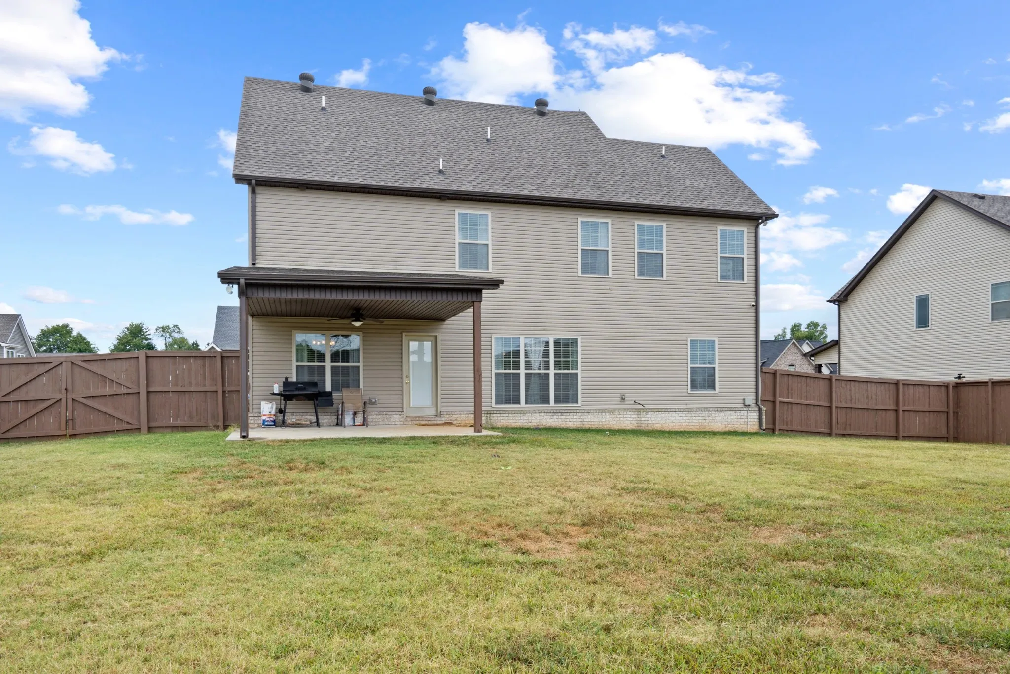 Happy New Year! This property will be relisted again shortly. This beautiful home has 5 large bedrooms and is located in a small neighborhood in the heart of Sango. With the holidays around the corner, you will love the open floorplan with a formal dining area, spacious living room, and large eat in kitchen with a double oven, tons of counter and cabinet space, and a pantry. The downstairs bedroom and full bathroom downstairs are perfect for guests. The Owner’s suite is large enough to fit your California King bedroom suite and dressers, and the bathroom has a large shower, soaking tub, and plenty of mirror and counter space, making getting ready for a night on the town or the daily grind a breeze. The level back yard is enclosed with a privacy fence and a covered back deck, making it a great place for all-weather relaxation and recreation.