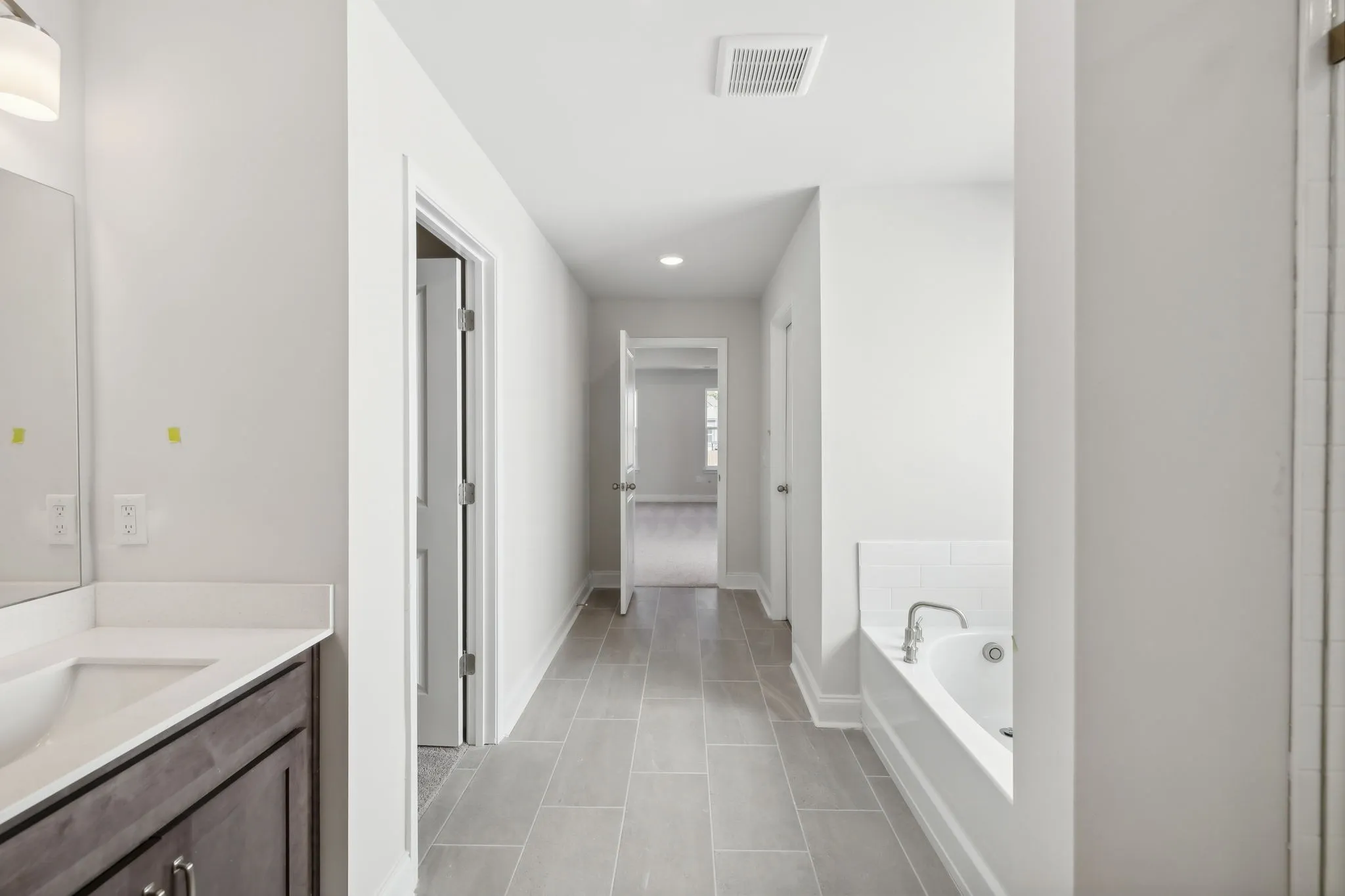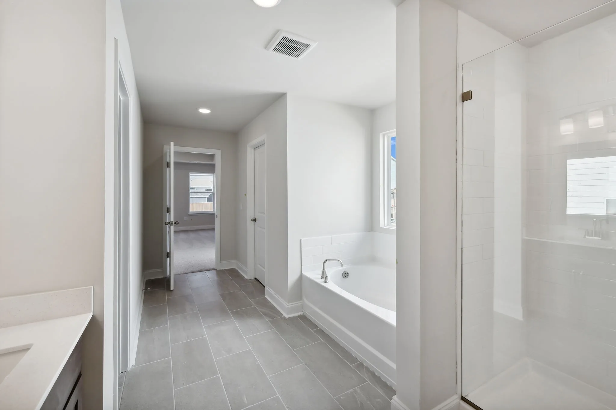 4.99 FIXED RATE plus $10K towards closing costs with preferred lender! Terms and conditions apply, ask our community sales managers for details. This open concept Hampshire plan has space for everyone, with a study on the main level, a rear covered patio off the breakfast area, and offers extra storage space. The designer-curated kitchen flows into the main living areas. Here, you’ll find 42″ upper cabinets, a quartz-topped island with pendant lighting, and stainless appliances including a double wall oven. On the second floor, the primary bedroom features a tray ceiling and a spa-like ensuite, including a dual vanity, garden tub, walk-in tiled shower with bench seat, and two large walk-in closets. The home is complete with a laundry room conveniently placed on the second floor, walk-in closets in the upstairs secondary bedrooms, and a sunlit two-story foyer at the front entry.