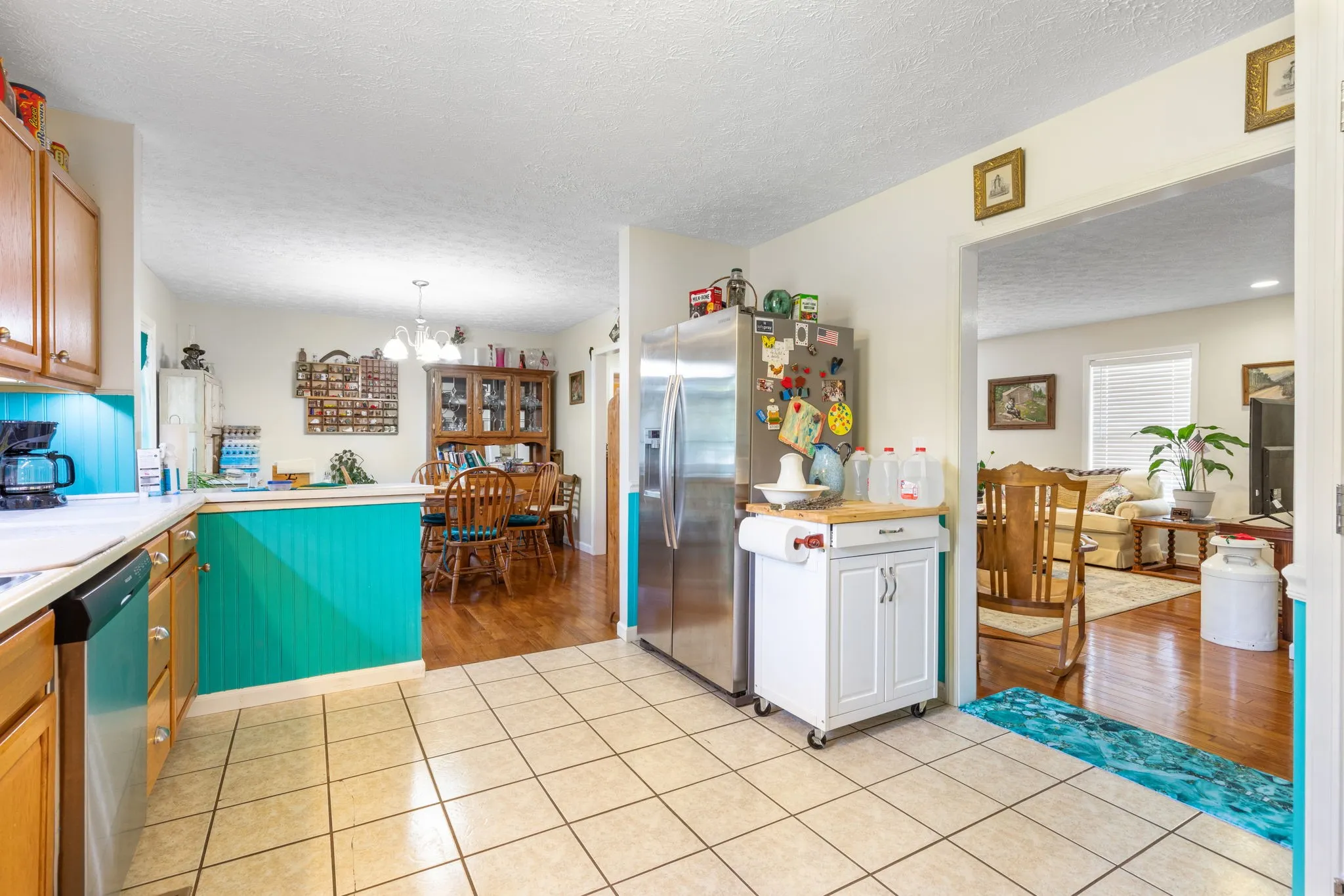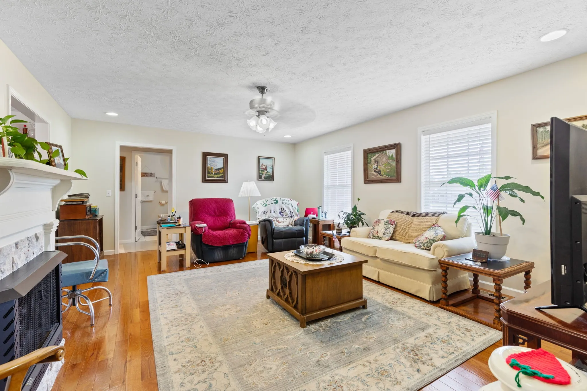 +"PublicRemarks": "Charming 3-bedroom, 2-bath brick home featuring a spacious living room with a beautiful stone fireplace, gas logs, and an antique mantel. The kitchen and bathrooms boast new countertops, while the kitchen includes a walk-in pantry for ample storage. The home is equipped with handicapped toilets and walk-in tub/shower in the primary bathroom for added accessibility, and a whole-house water filtration system. The garage has been converted into a rec room, offering additional living space. Outside, you'll find a 10x16 storage building and a 16x36 shop with heating and cooling- both on skids (can be removed if desired). The backyard is fenced in as well! HVAC system is only 4 years old."