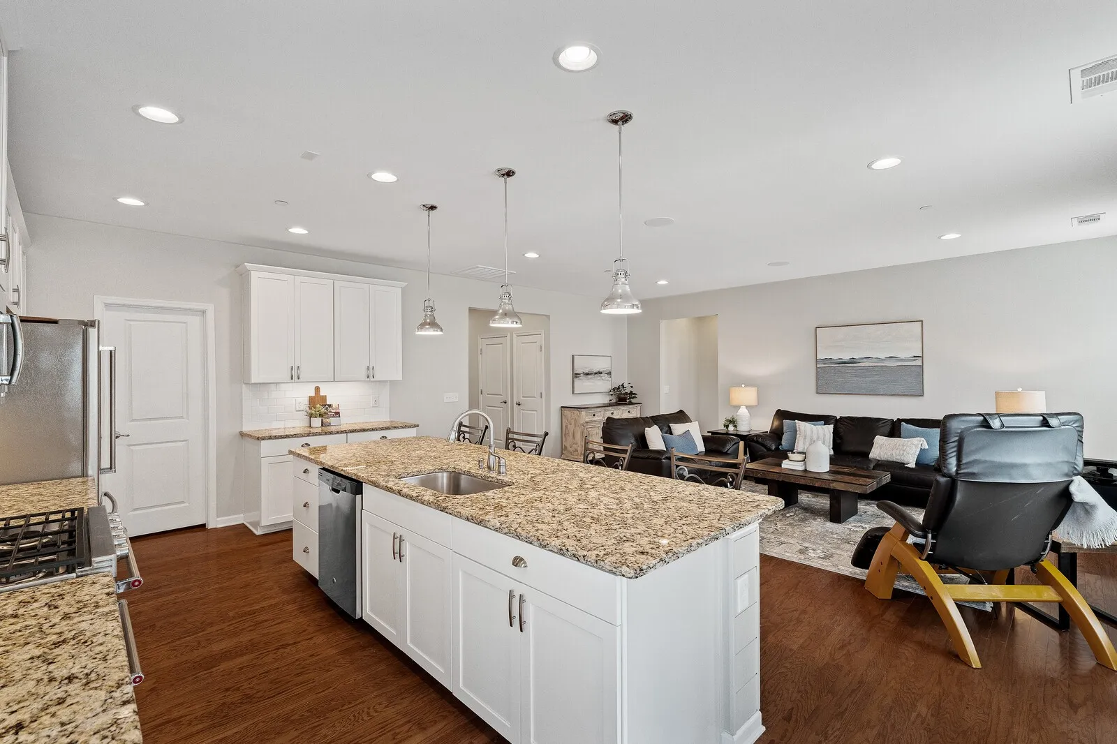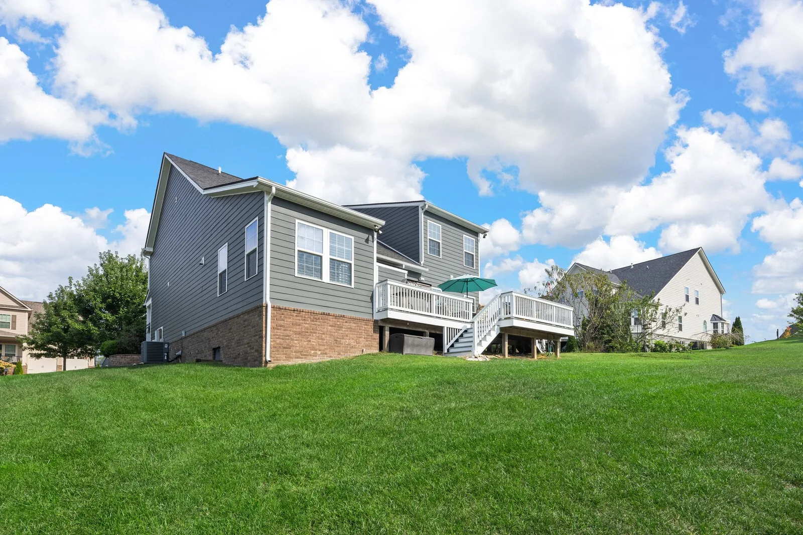 Charming 4-bedroom, 3.5-bath home nestled in the vibrant community of Stream Valley, which offers a host of amenities, including a pool, playgrounds, walking trails, and frequent community events. The home features a side-entry garage (with just 1 step into the home!) and a spacious primary bedroom on the main floor. Hardwood floors flow throughout the main living area, and the heart of the home is an impressive kitchen with an 11-foot island and double ovens, perfect for entertaining. Stylish accent walls in both the formal and casual dining areas add a modern touch. Don’t miss the whole home Speaker System! Oversized deck with space for dining and relaxing offers incredible sunset views! Side yard is flat and has a beautiful garden space. Formal dining would also make an amazing home office. Versatile loft/bonus space offers floor plan flexibility. Minutes from I-65 and Berry Farms, this home is ideal for those seeking both comfort and community living.