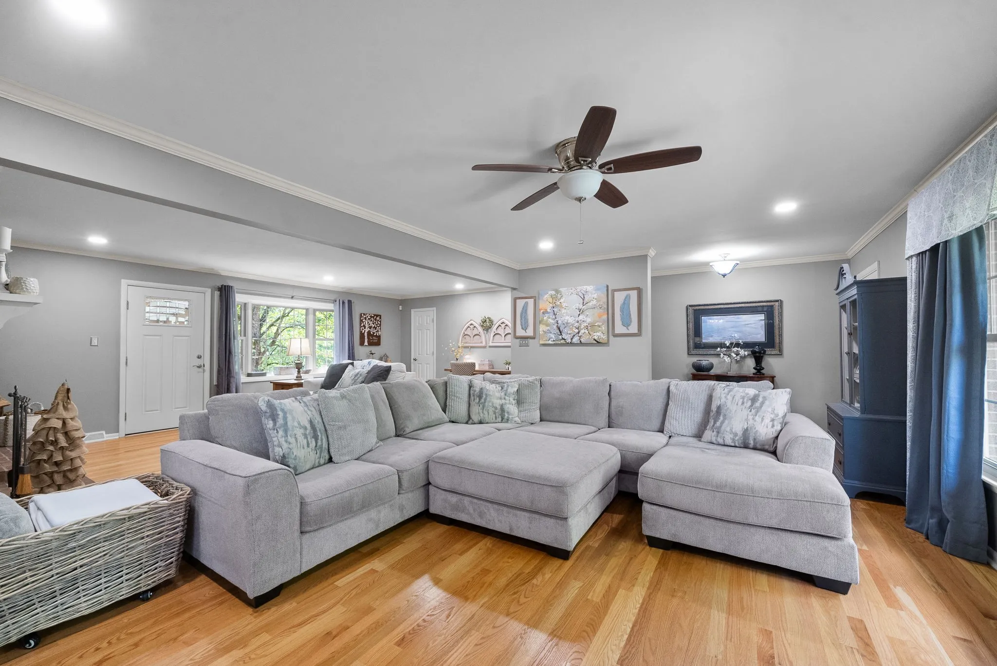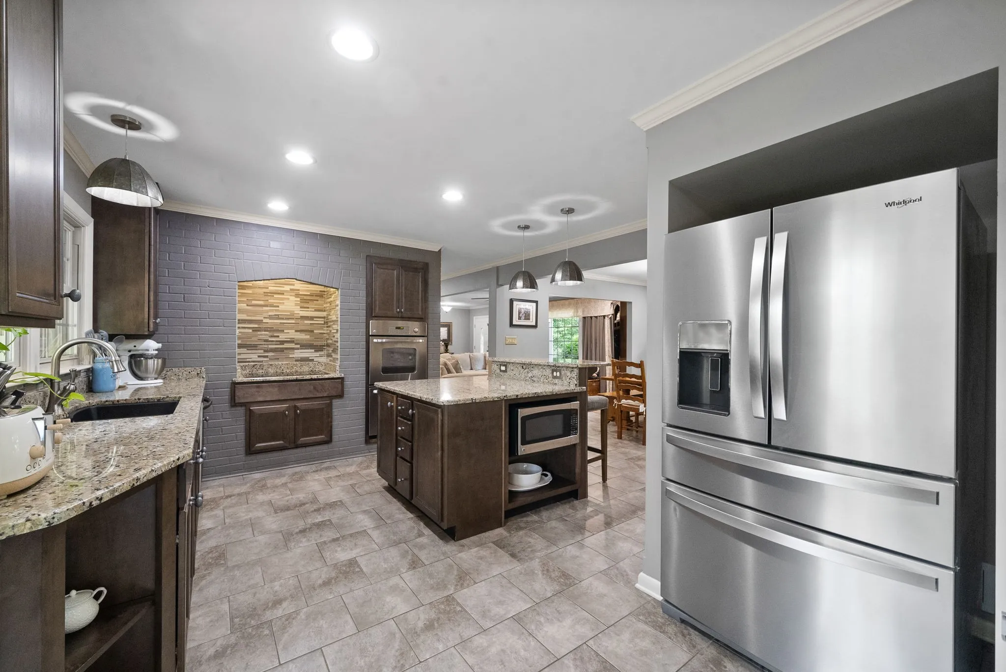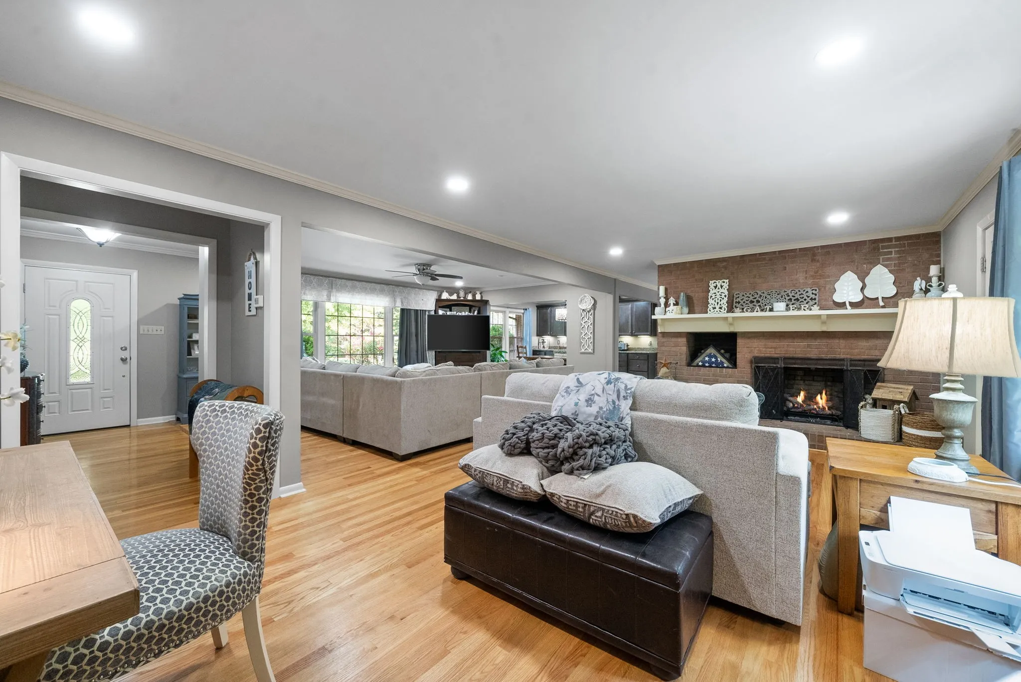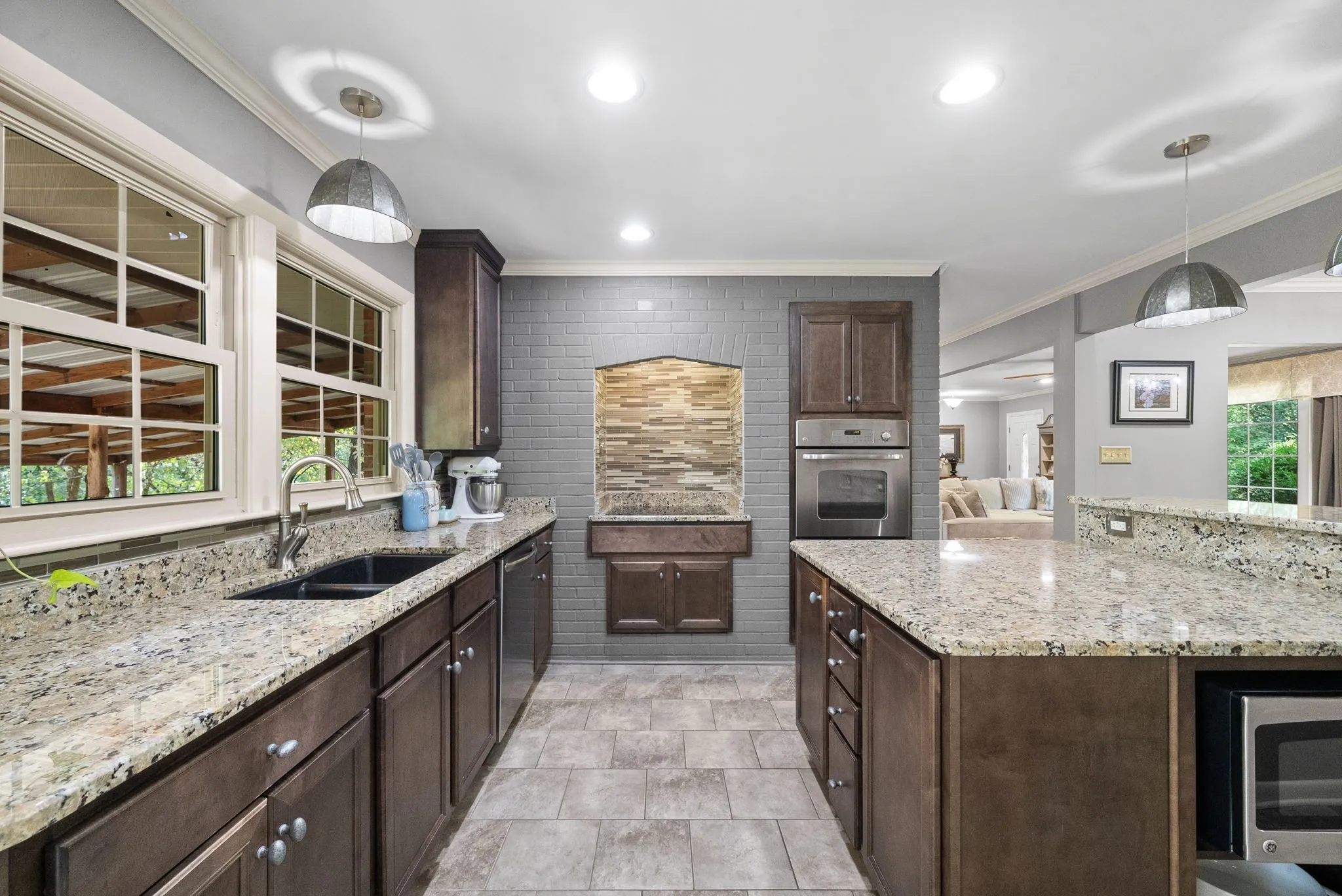 +"PublicRemarks": "Spectacular, newly renovated home on ~10 acres w/ year-round water views of the Cumberland River. Private, park-like setting just outside city limits (1 mi to Liberty Park Marina; 3 mi to APSU). Gleaming oak hardwood & open floor plan greet you at the foyer. A stunning brick fireplace adorns the spacious living room that boasts two large bay windows, providing exquisite views of the property's custom landscape. Chef's dream kitchen, w/ large island, granite countertops, SS appliances (double oven, microwave, counter-depth refrigerator), & abundant custom cabinets. Adjacent dining area makes entertaining a breeze. Gorgeous primary bedroom w/ walk-in closet; additional bedrooms share beautiful Jack & Jill, tiled bathroom w/ rainfall shower. Massive finished basement = endless possibilities. Currently used as living space w/ bedroom, full bath, kitchenette, & home gym. Watch remarkable sunrises from the covered back patio. Schedule a private showing today - this one won't last!"