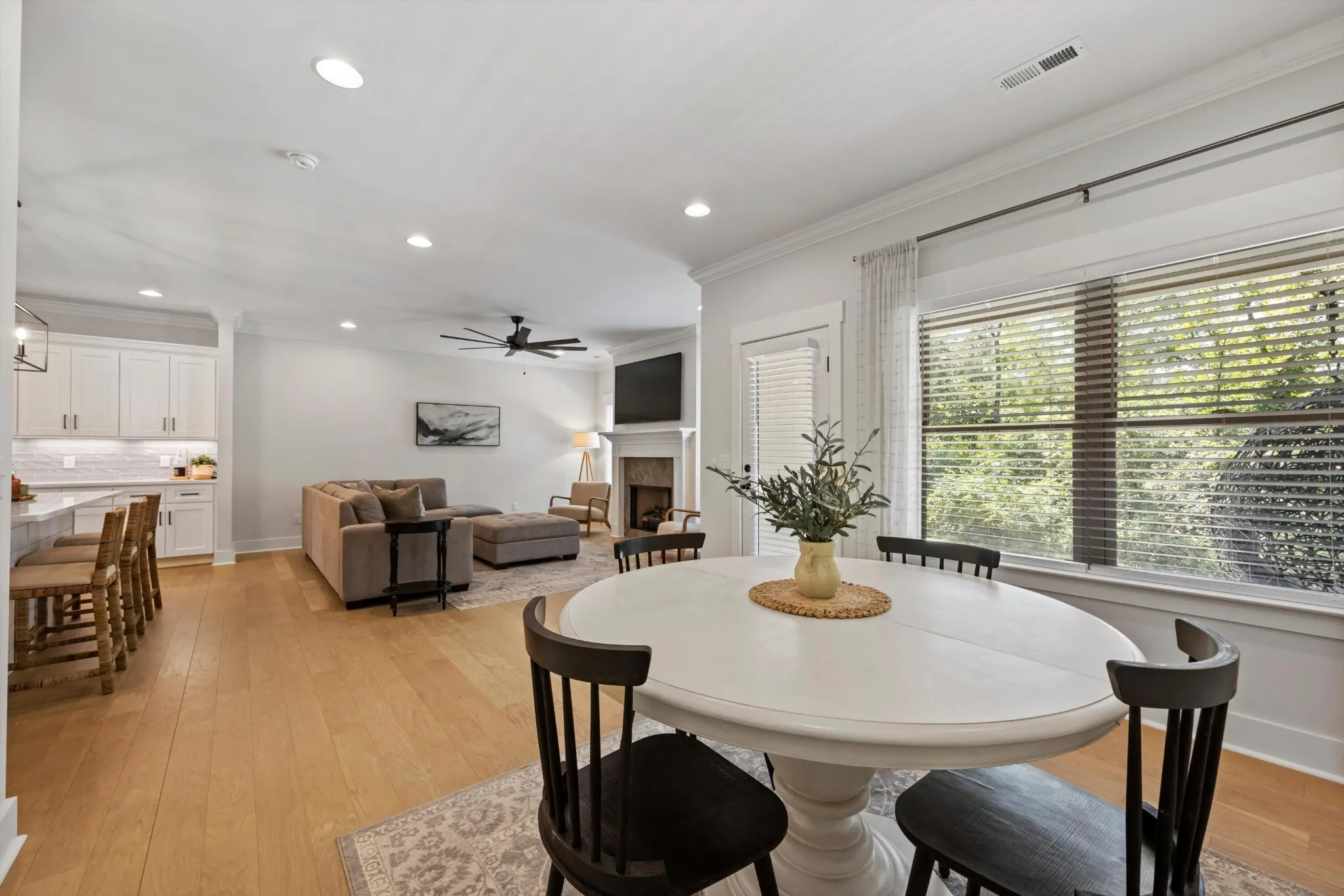 Welcome to 9638 Dutton Lane in the Barnsley Park community, where urban convenience meets a tranquil country-like setting. This townhome welcomes you with stunning curb appeal and hardwood floors that flow through the open-concept kitchen, living, and dining areas. The living room, filled with natural light from large windows, features a cozy gas log fireplace and opens to a spacious dining area with access to a private patio. The kitchen boasts granite countertops, a large island with bar seating, and a walk-in pantry for ample storage, while the main level also offers access to the garage and a half bathroom. Upstairs, the master suite is a luxurious retreat with large windows, a private balcony, double sinks, a tiled shower, a freestanding soaking tub, and a spacious walk-in closet. Two additional bedrooms with ample closet space share a beautifully designed bathroom, and the laundry room features upgraded finishes. Designed for modern living, this home offers a versatile open floor plan with lawn maintenance included in your HOA dues.