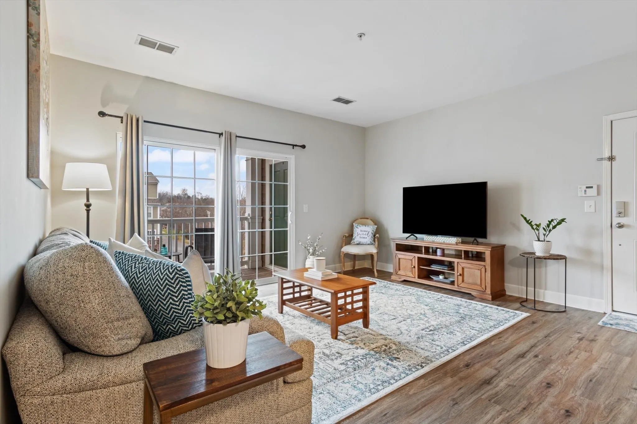 Beautifully updated 2 Bd/1Ba condo. MOVE IN READY!! Step inside to discover a bright and airy living space, complete with new hardwood floors, fresh paint throughout and large windows that flood the room with natural light. The open concept creates a seamless flow from the kitchen, dining and living spaces. Large walk-in closet in primary bedroom and closets throughout provide ample storage. With it’s prime location you’ll enjoy easy access to shopping, dining and entertainment options. Nature and walking trails in your backyard along with a private balcony and assigned parking spot with guest parking throughout. ALL appliances included! (Washer, dryer, dishwasher, disposal, microwave, refrigerator). Don’t miss your chance to call this wonderful condo your new home!