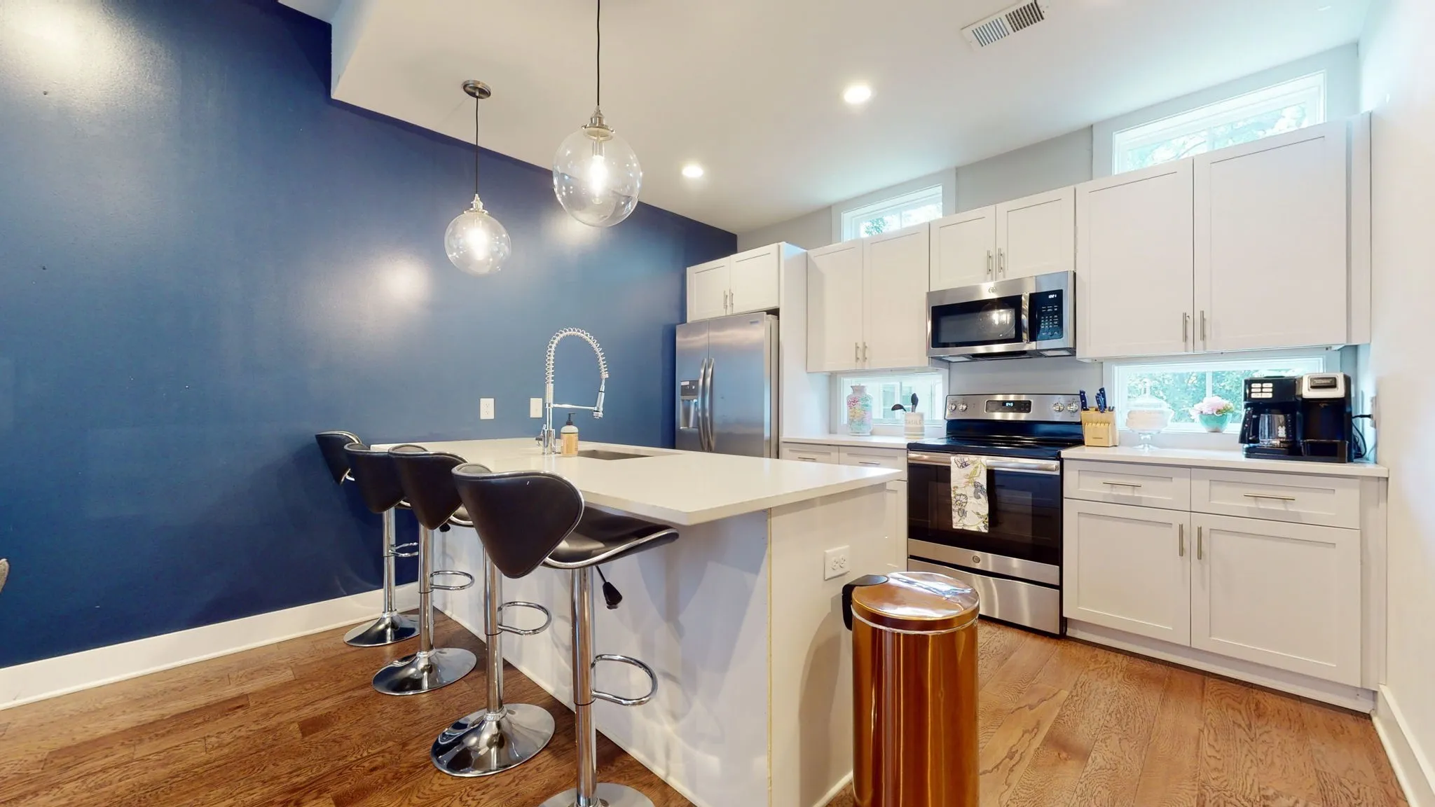 Located perfectly in the exclusive 12South area, this contemporary 3-level townhome offers contemporary elegance in one of Nashville’s most coveted areas! This home is walkable to restaurants, shops, groceries, entertainment and more! Whether you’re looking for luxury living or an investment opportunity, this home is perfect for you! Hardwoods, S/S appliances, quarts countertops. 1st Floor – 1 bed, en suite bathroom, garage. Main floor – open living space, kitchen, covered patio, laundry, and full bath. 3rd Floor – 2nd and 3rd bed with en suite bathrooms. – Too many upgrades to count! Washer/dryer included. The high-end furnishings are also available! Long-term rental or primary residence only