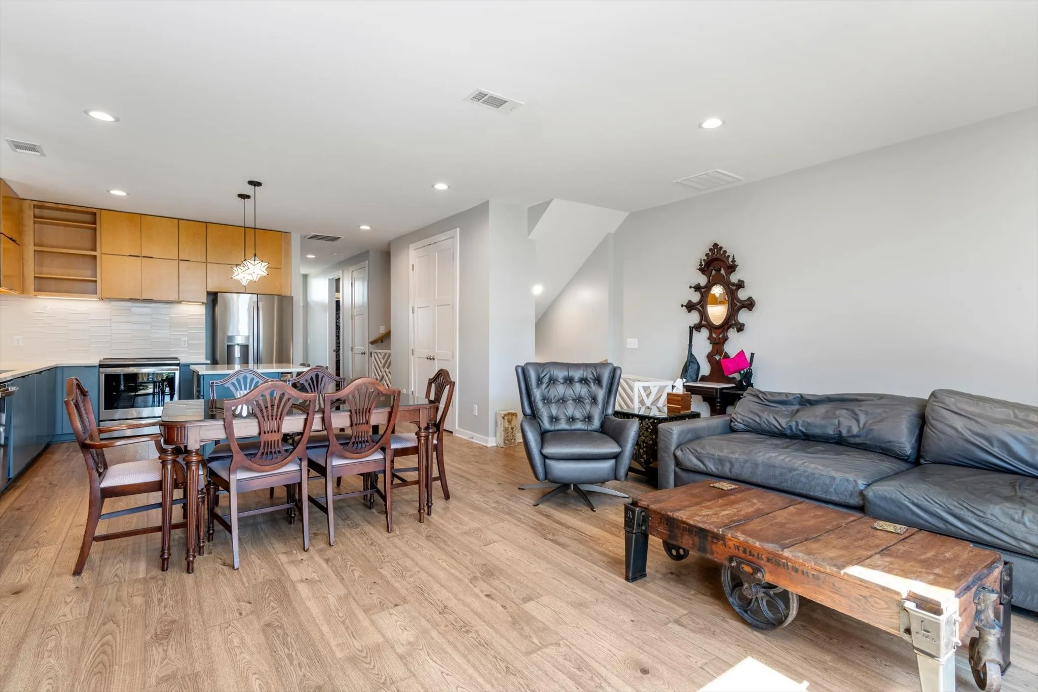 The best of everything in vibrant East Nashville. Quick access to Ellington Pkwy, chic, modern, and new, yet this home is located within a community that’s tranquil, surrounded by mature trees and perched on a hillside. This gorgeous home has a fabulous primary suite, large walk-in closet with laundry for ease of use, an en-suite bathroom with spa like shower, soaking tub, and double vanity. Outside the primary suite is a den with a wet bar, beverage fridge (that remains) and a spacious deck to enjoy outdoor relaxation or entertainment. The main floor features an open concept living area, second deck, beautiful kitchen, pantry, a second bedroom and full bathroom. On the entry floor there is a bedroom, full bath and option to have a washer/dryer. 2 car garage for convenient parking and additional visitor parking for guests. Be part of the exciting development of this community’s gathering spaces, dog park, walking trails, as well as the retail and restaurants blooming all around you!