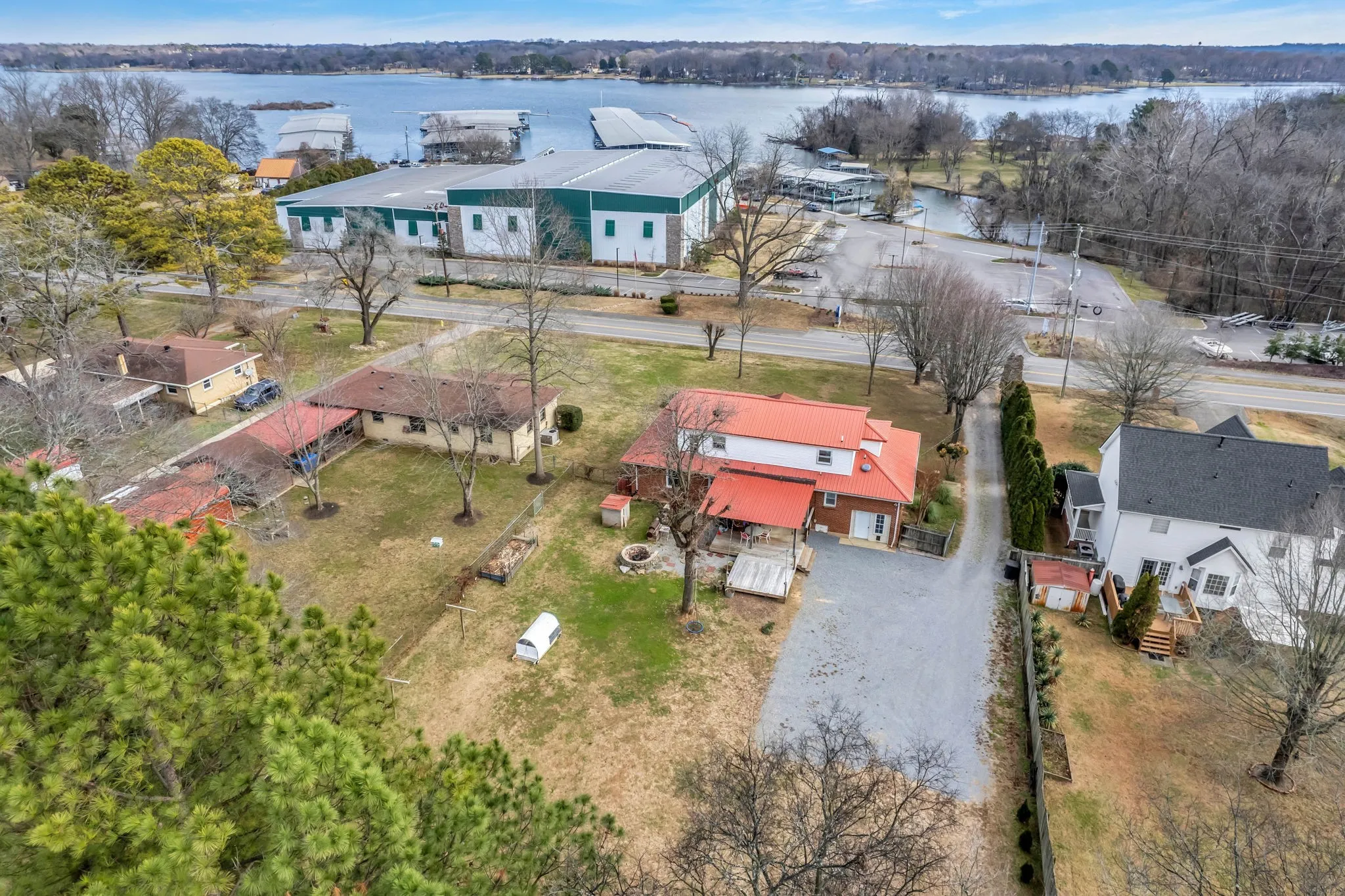 Reduced to Sell! Someone is gonna get a great deal on a sweet home! All Brick directly across from Drake’s Marina*Walking distance to Sanders Ferry Park*Spacious 1/2 Acre Lot*Mature trees*Tankless hot water heater*City water (plus a well in the backyard for lawncare needs!)*Fire Ring+Built-in BBQ Stays*3 beds+1 bath downstairs*2 beds +1 bath upstairs, affordable monthly utilities+No HOA Dues (yay!)* Lots of Storage*Fireplace in Living Room* Lrg Covered deck in backyard*Big Laundry Rm + Food Pantry*Your Boat will Like this house with a marina literally across the street!