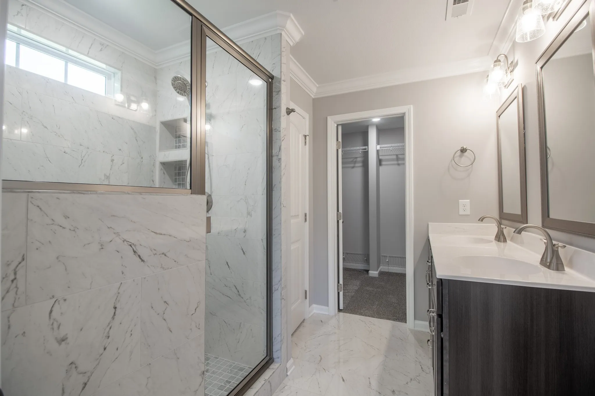 "LongDescription" => "EXAMPLE>>>Primary Bathroom with Polished Tile, Crown Molding, a Double Vanity, Tile Shower, Walk-in Closet & a Toilet Room!"