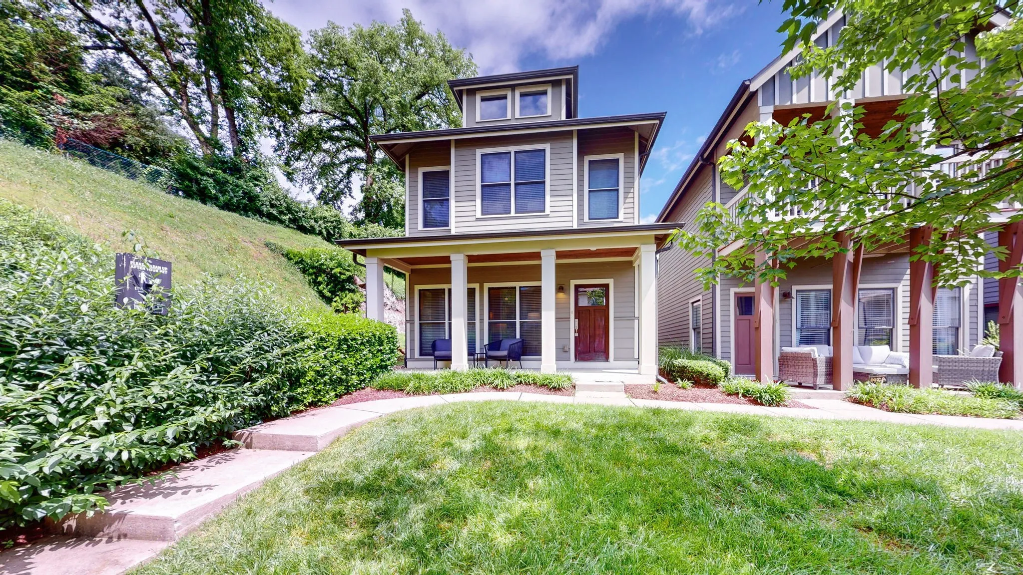 Stunning End Home with gorgeous front porch and private side views! Walkable to EVERYTHING. Kroger just steps away, five guys, Sinema, ML Rose, the list goes on! 3 miles to Broadway, 1 mile to 12 South District. Beautifully maintained with fresh paint throughout the entire home . TWO ensuites . Roof replaced in 2022. Ample parking, hardwoods, granite, real hardwood cabinets, European bath fixtures! Up to 1% of purchase price toward closing costs with use of preferred lender.